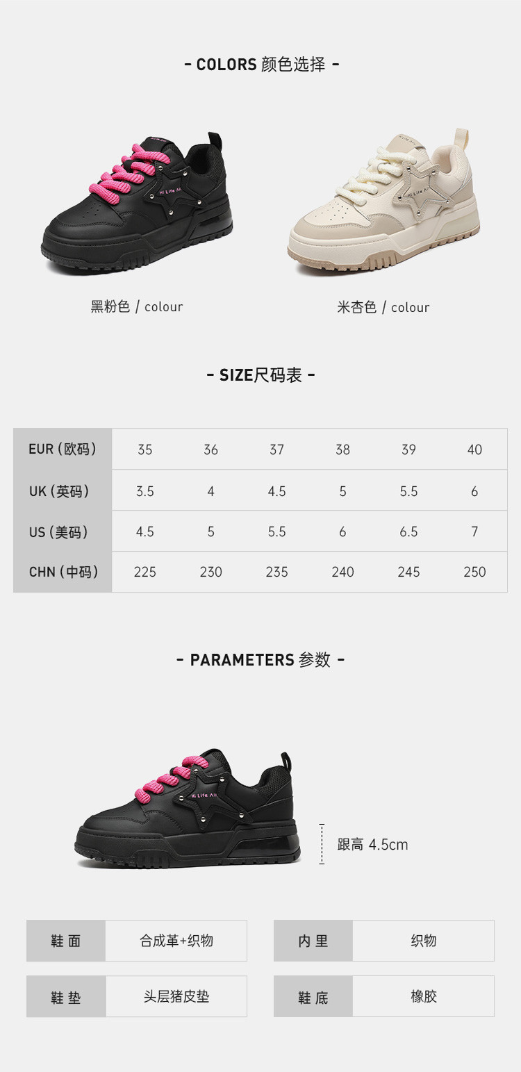 商品名称:板鞋女休闲鞋女鞋休闲鞋女鞋子女学生百搭厚底鞋星星鞋 626191