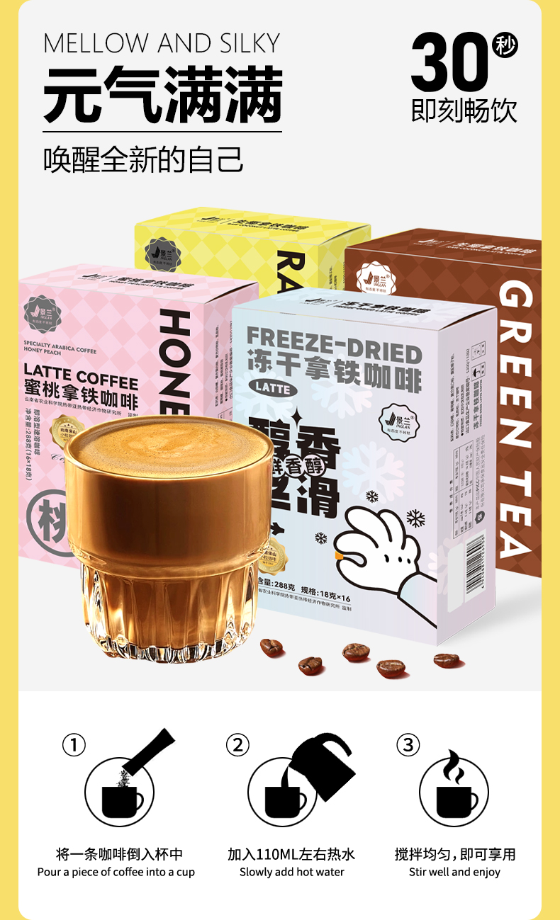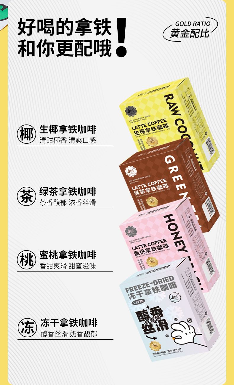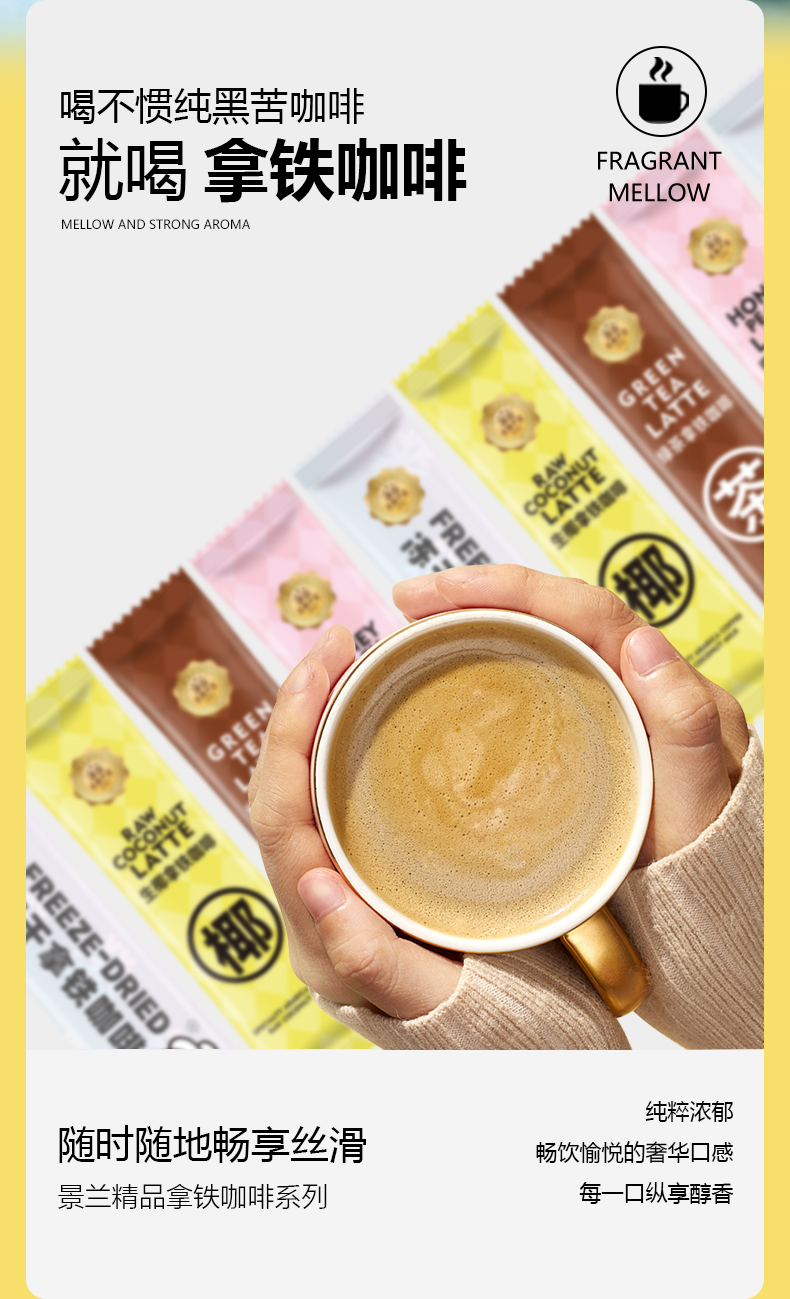 商品名称:景兰生椰拿铁咖啡288G*1盒云南小粒三合一速溶咖啡