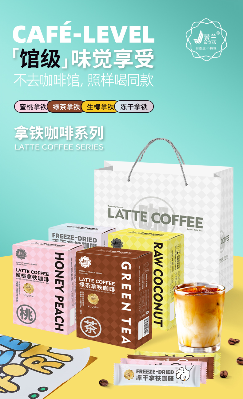 商品名称:(带礼品袋)景兰生椰拿铁咖啡288G/盒*4盒云南小粒三合一速溶咖啡