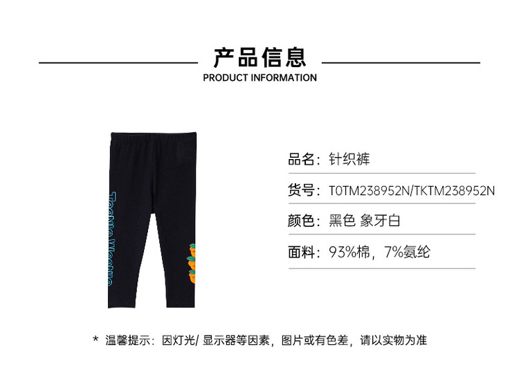 商品名称:小熊童装女童宝宝春季印花针织打底裤 741441