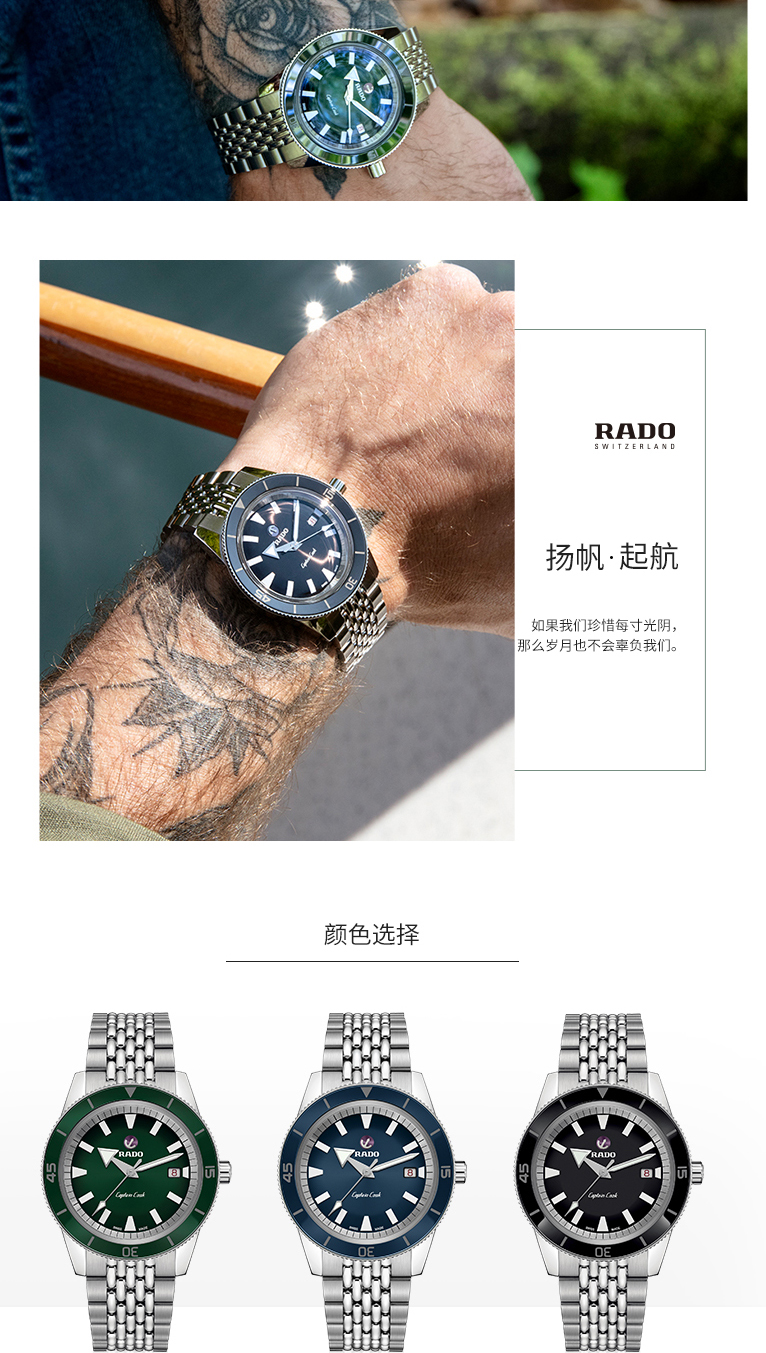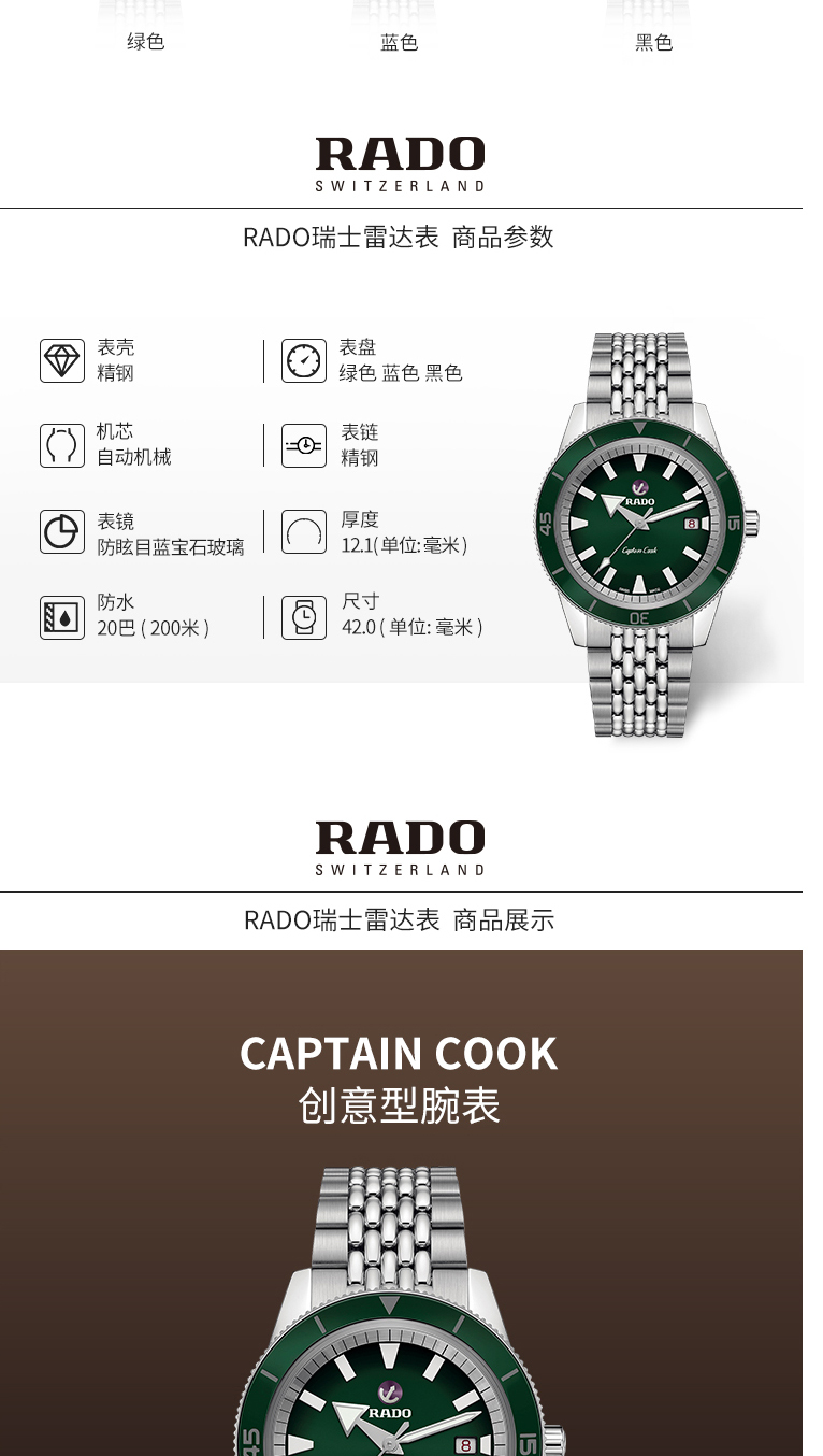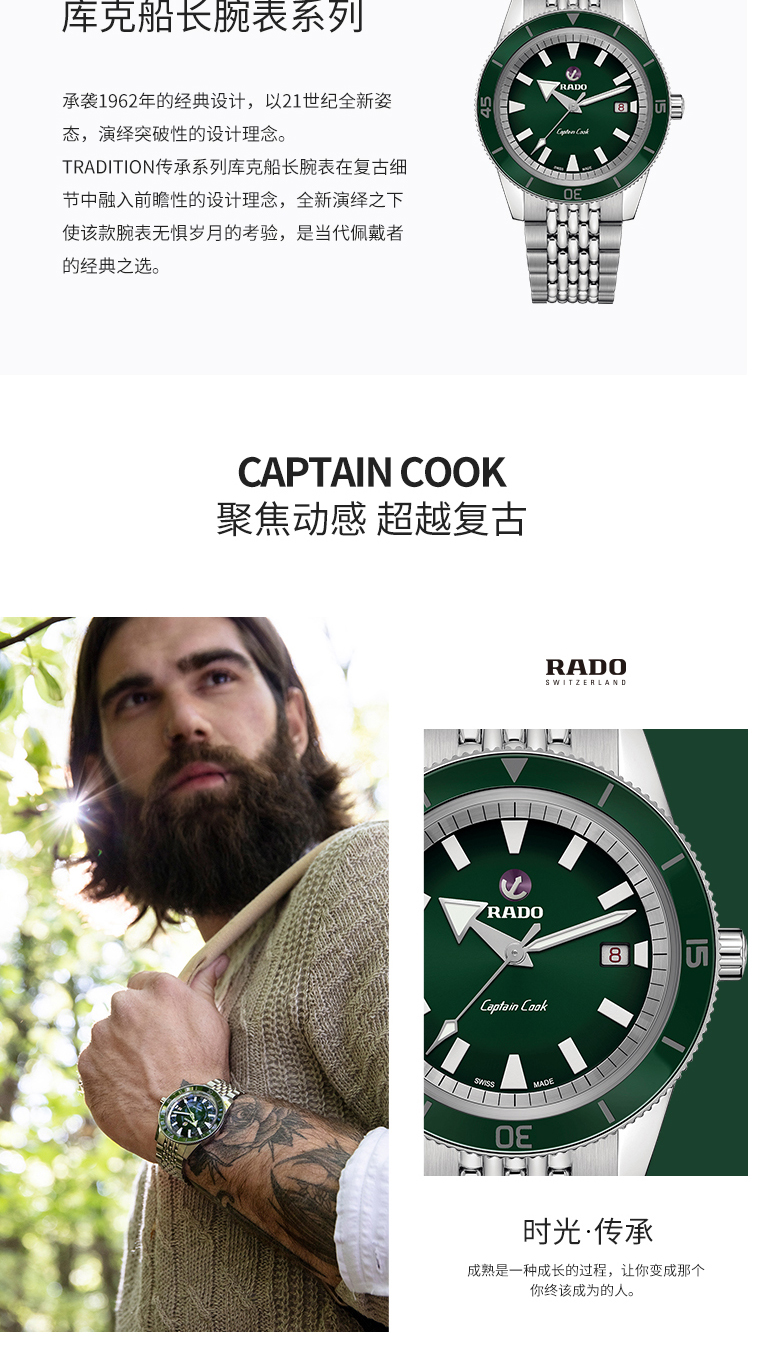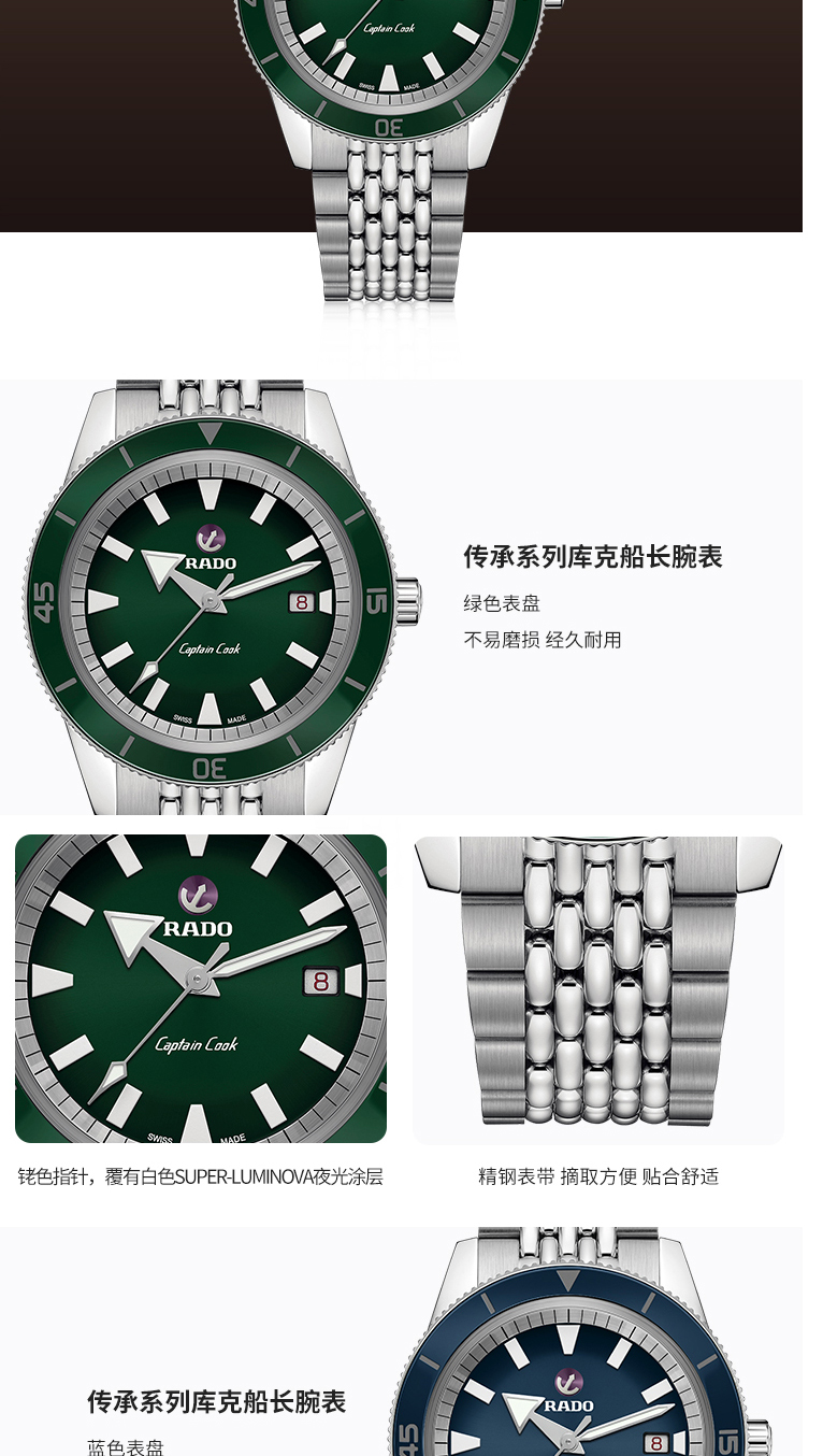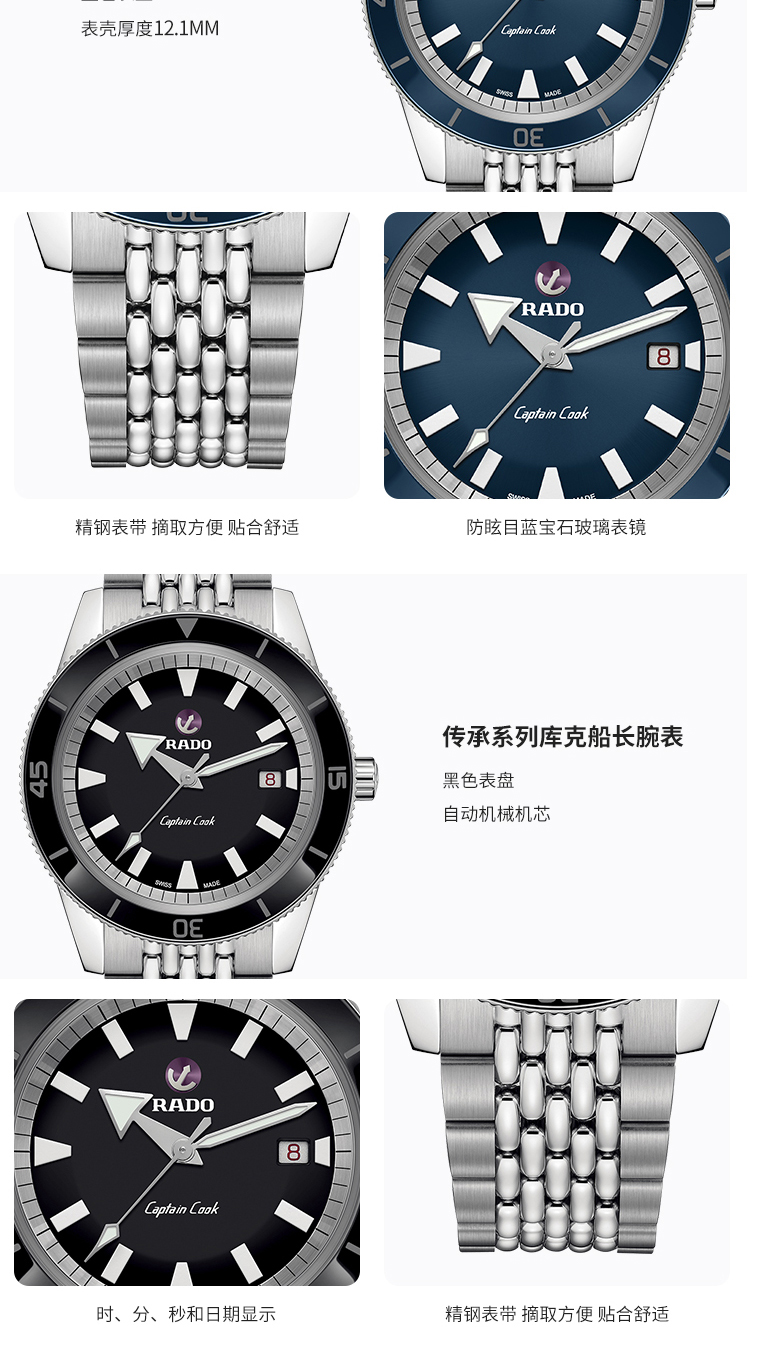 商品名称:RADO雷达 传承系列库克船长自动机械钢带男士腕表(42mm) R32505313