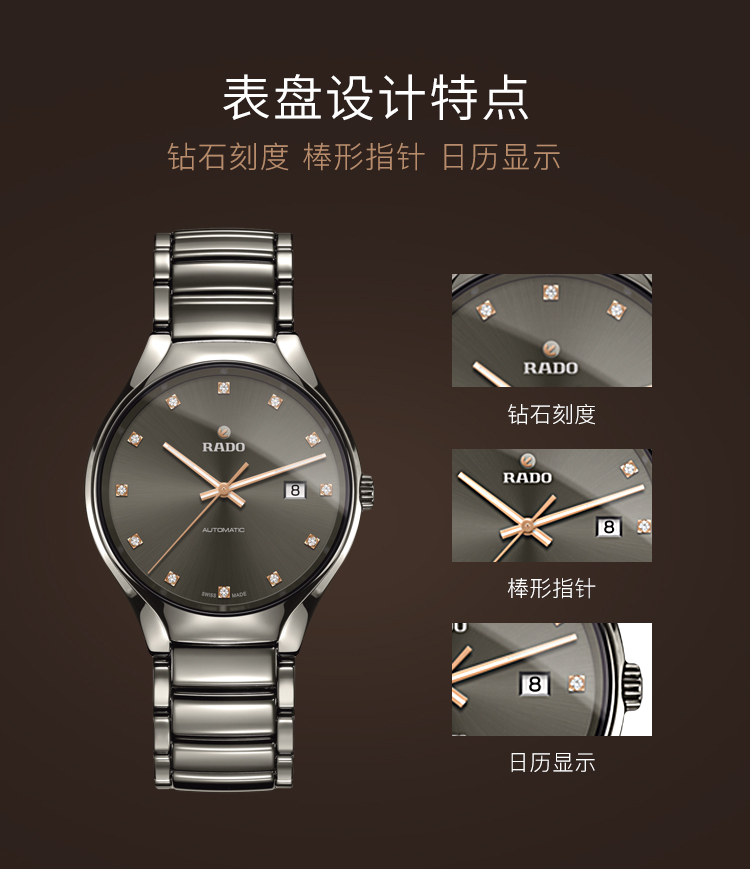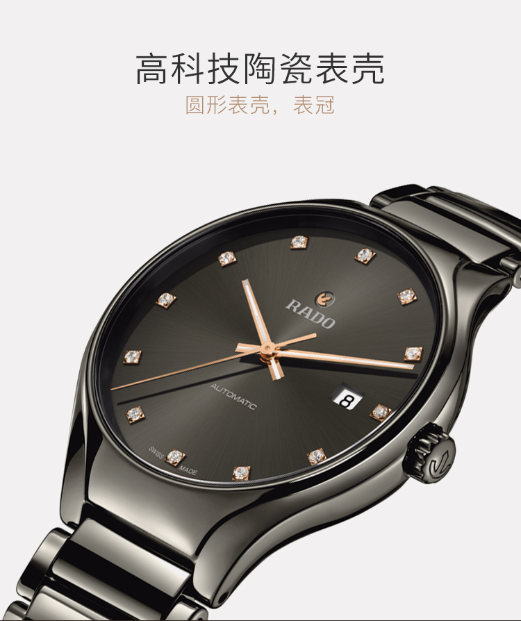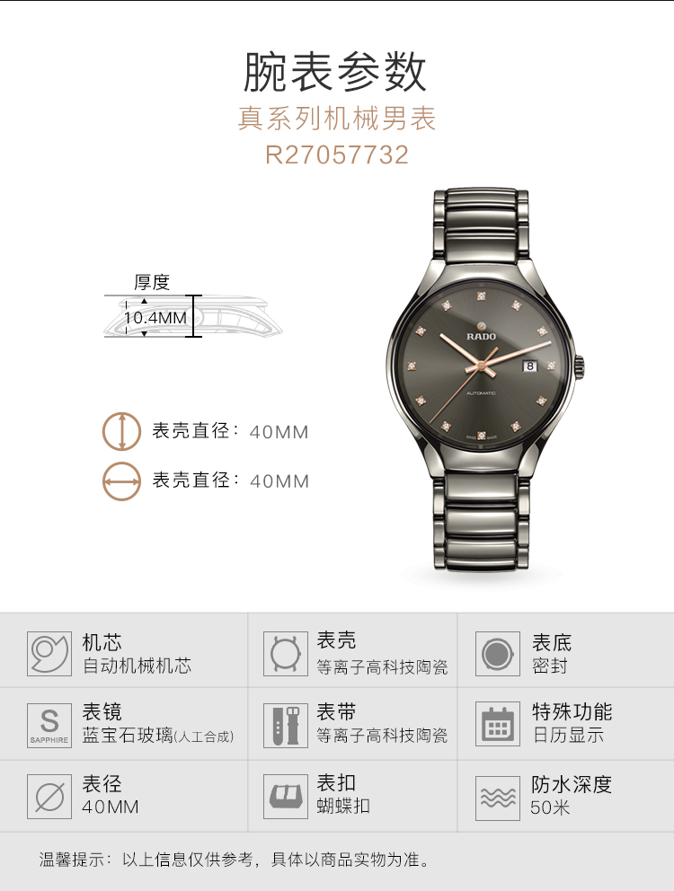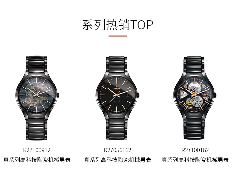 商品名称:RADO雷达 真系列男士等离子高科技陶瓷表带情侣机械钻表 R27057732