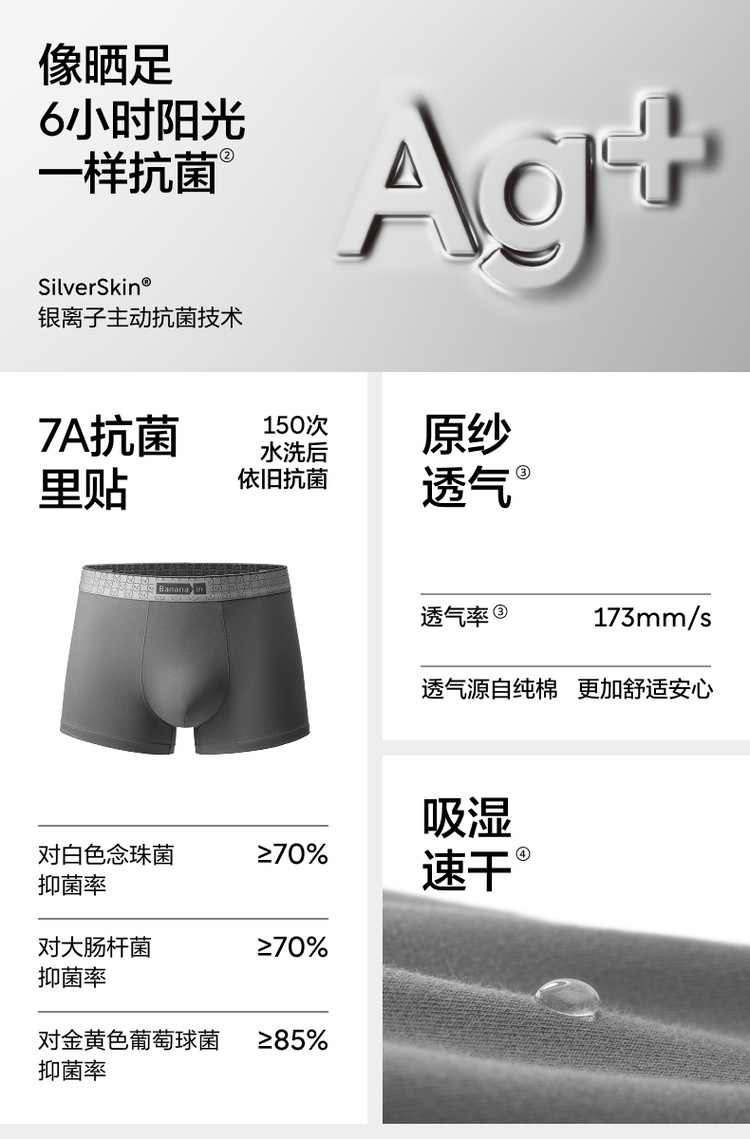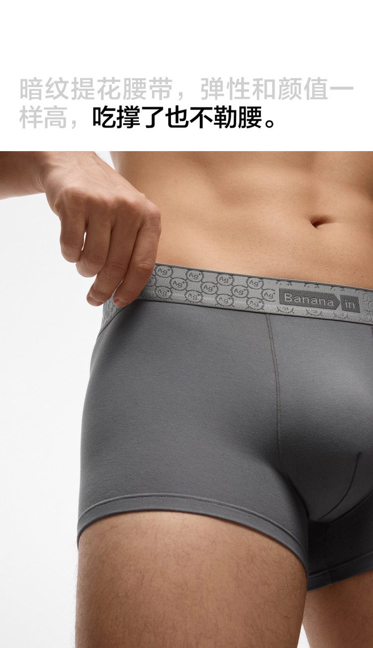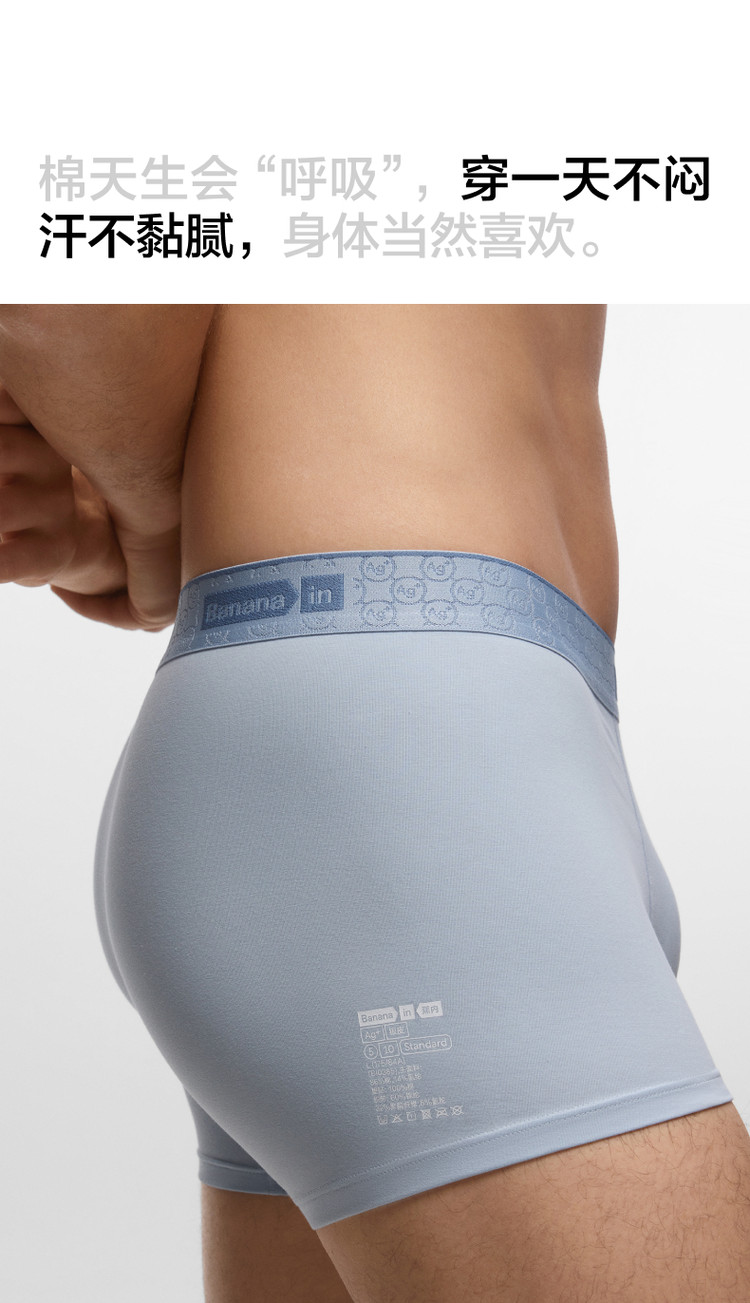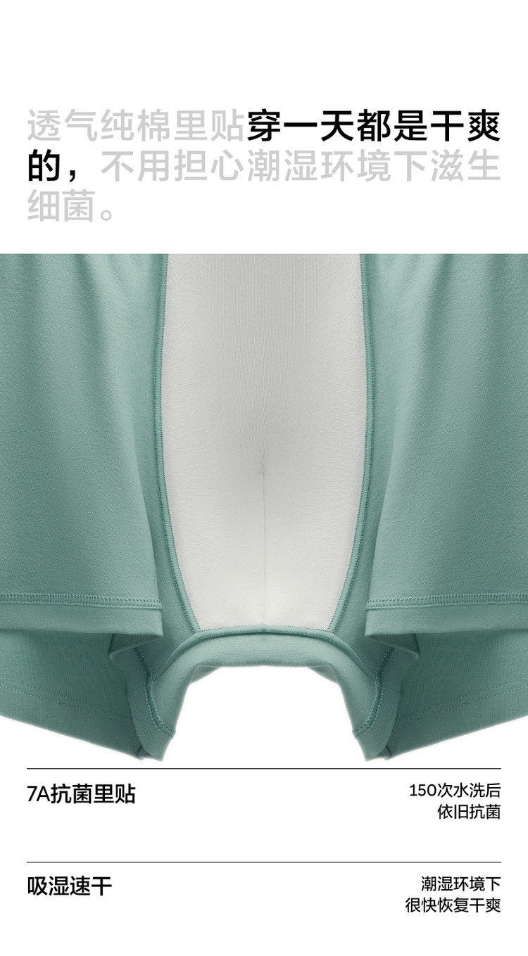 商品名称:510S男士棉感7A抗菌吸汗透气舒适简约四角裤平角内裤3件装 333317