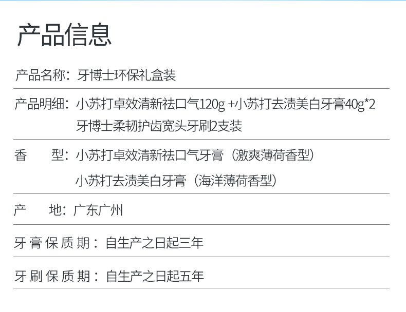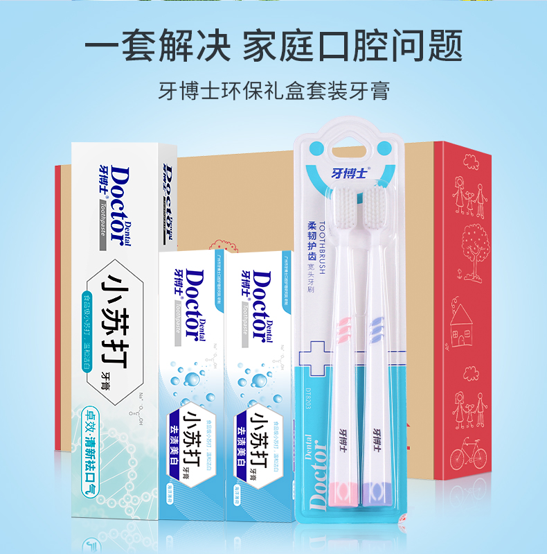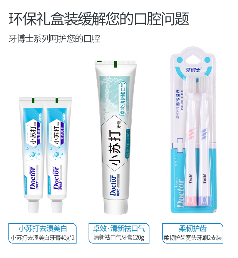 商品名称:牙博士 小苏打牙膏清火清新口气洁白牙齿减轻牙渍120g 小苏打牙膏套装【环保套】