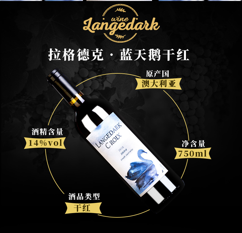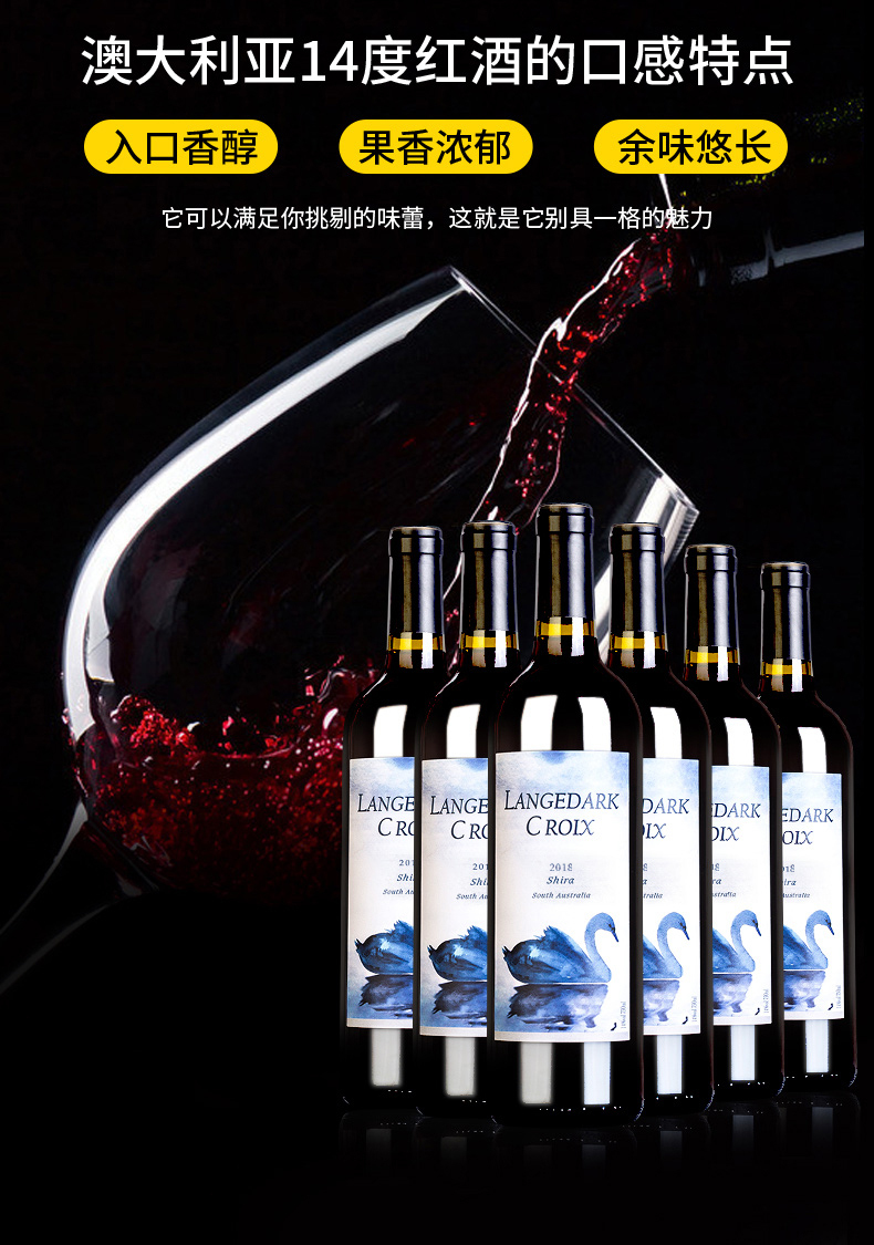 商品名称:拉格德克澳大利亚进口葡萄酒·蓝天鹅红酒 750ml*6瓶