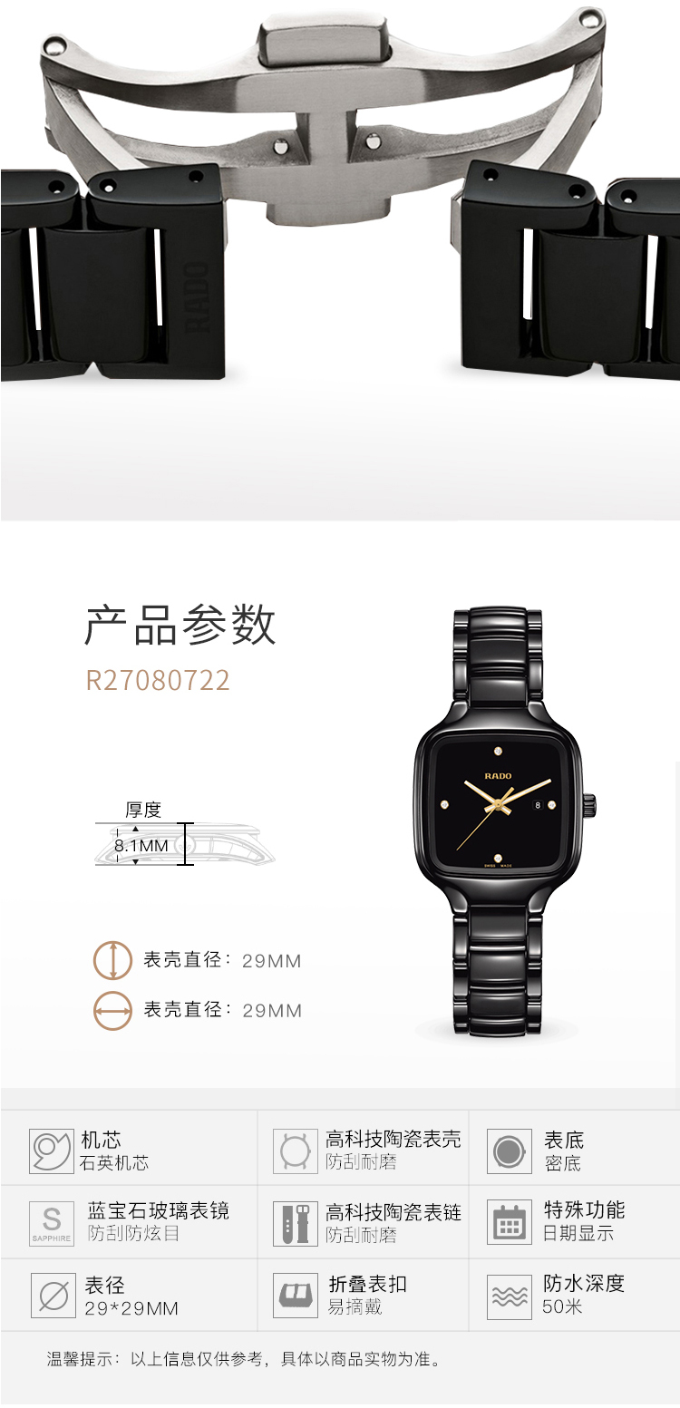 商品名称:RADO雷达 真我系列机械镶钻女士手表 R27080722