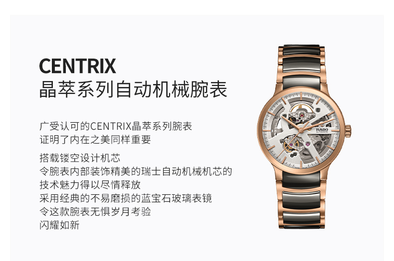 商品名称:RADO雷达 晶萃系列时来运转镂空机械男士女士手表 R30181104