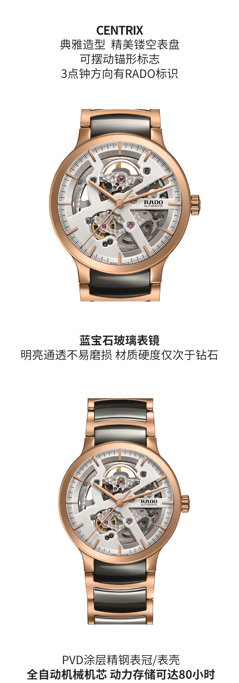 RADO雷达 晶萃系列时来运转镂空机械男士女士手表 R30181104