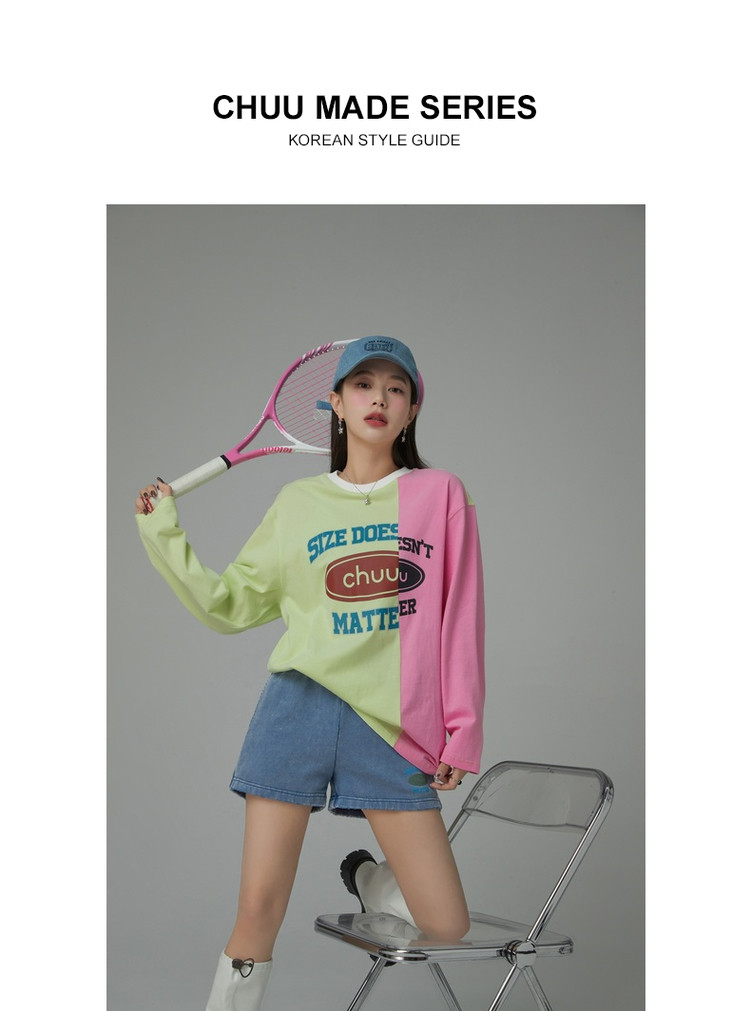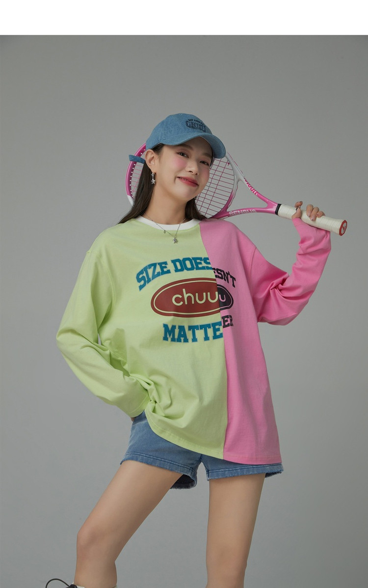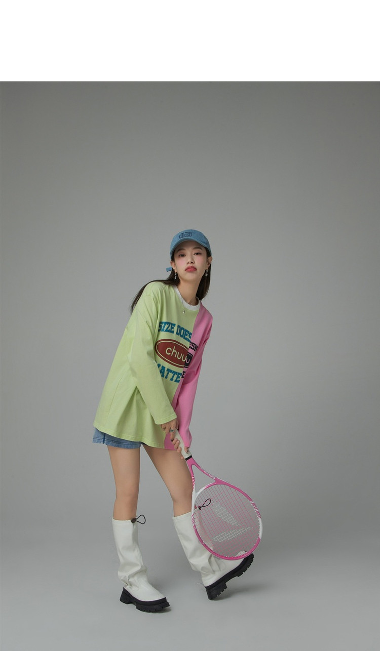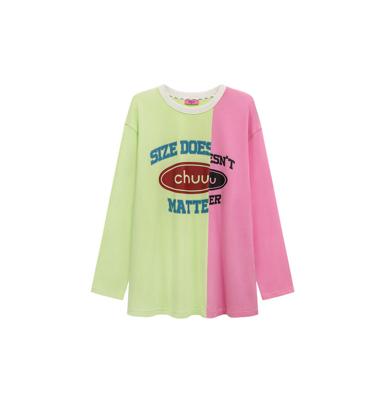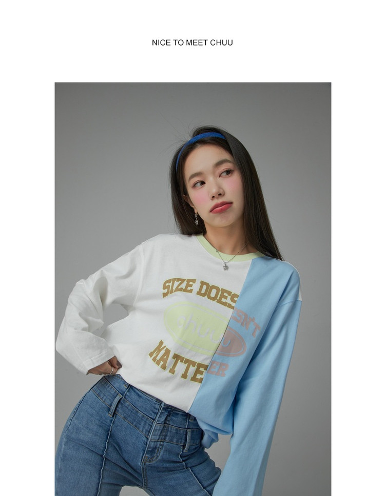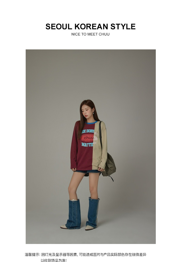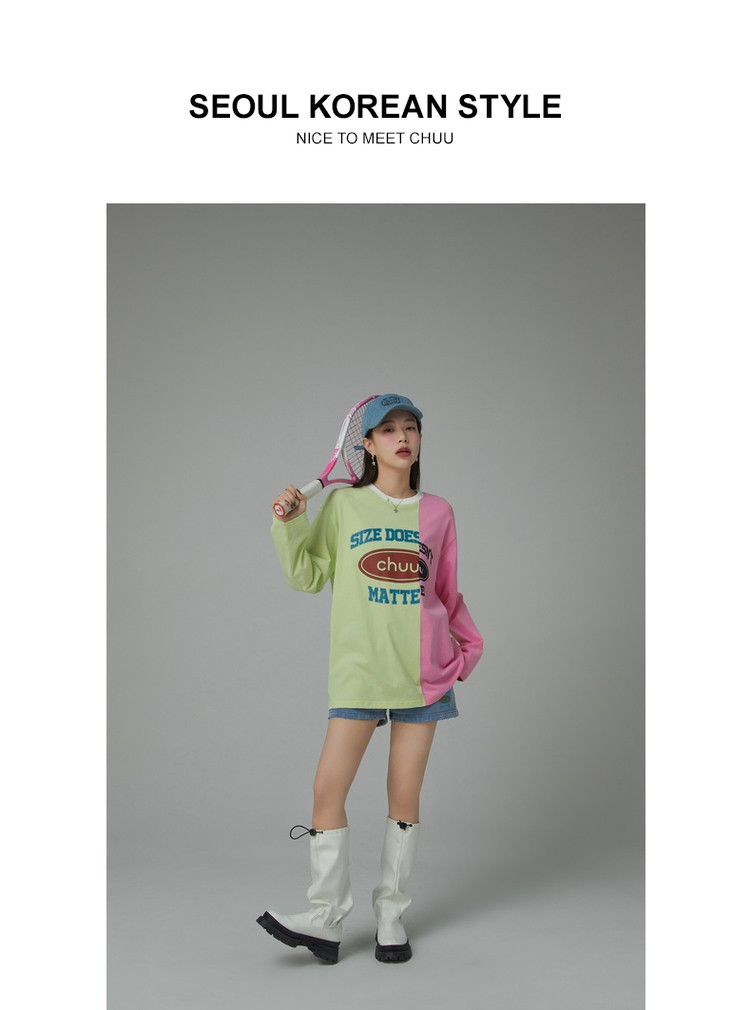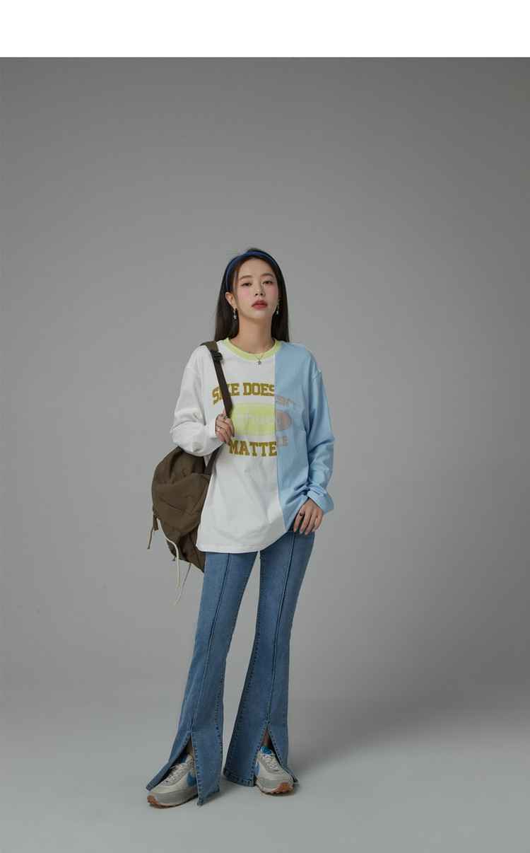 商品名称:假两件拼接T恤女士春秋圆领宽松字母撞色长袖上衣 016147