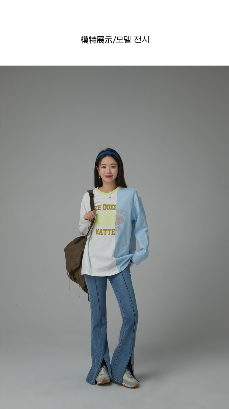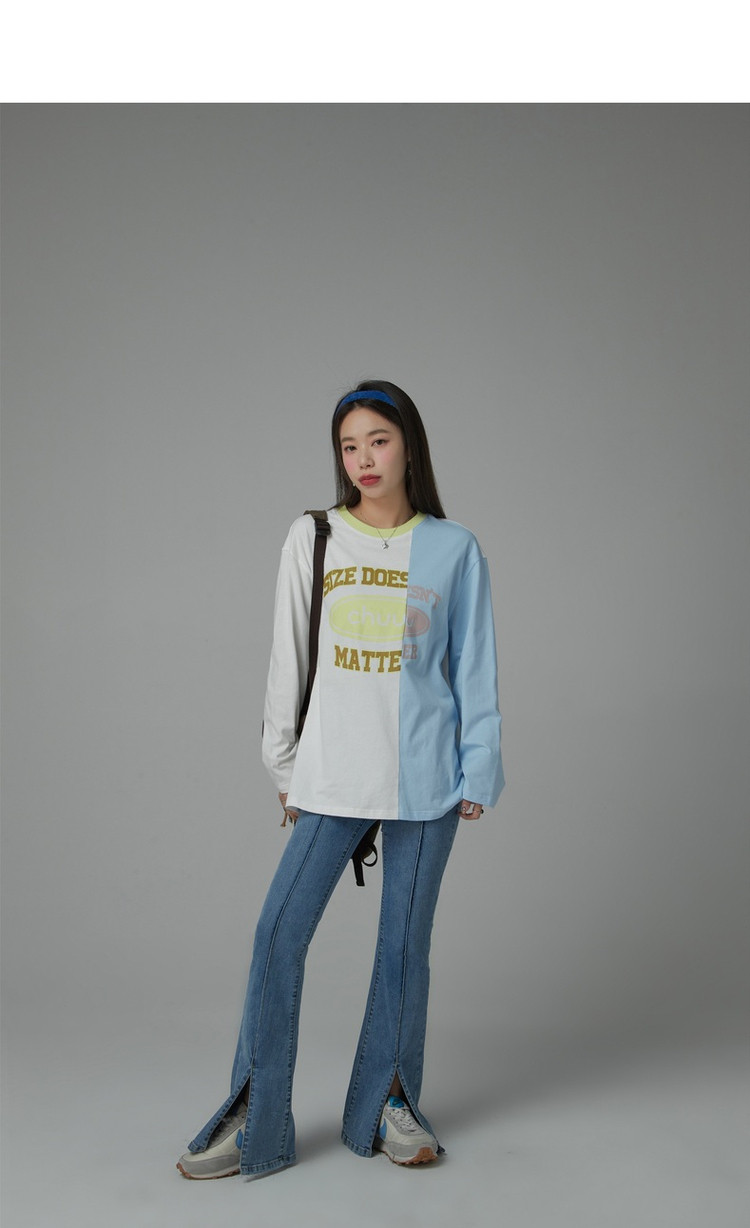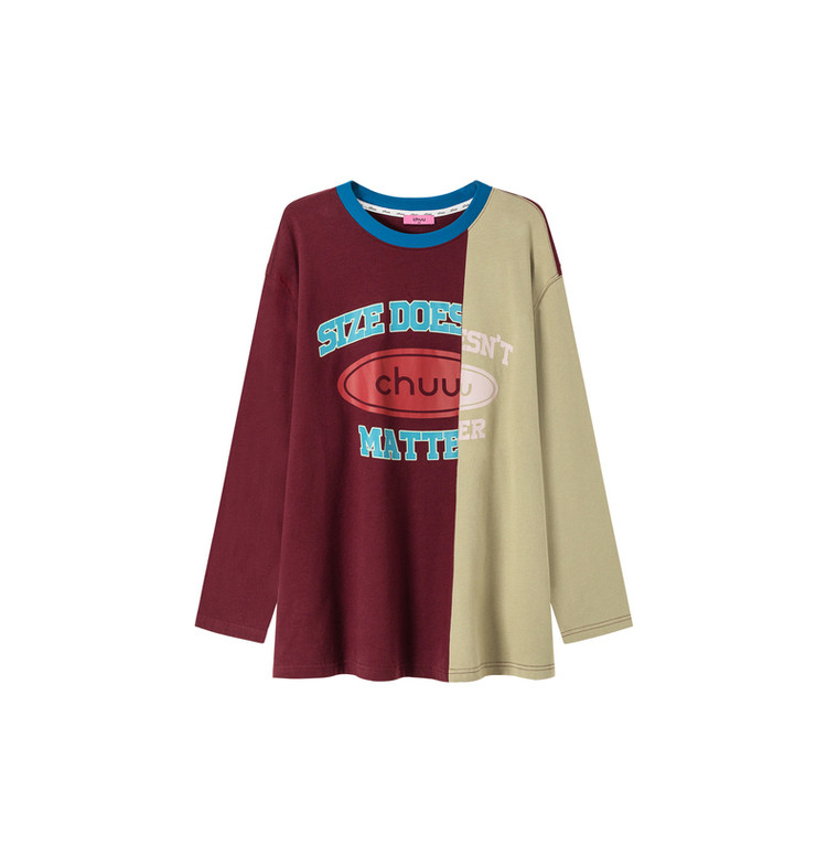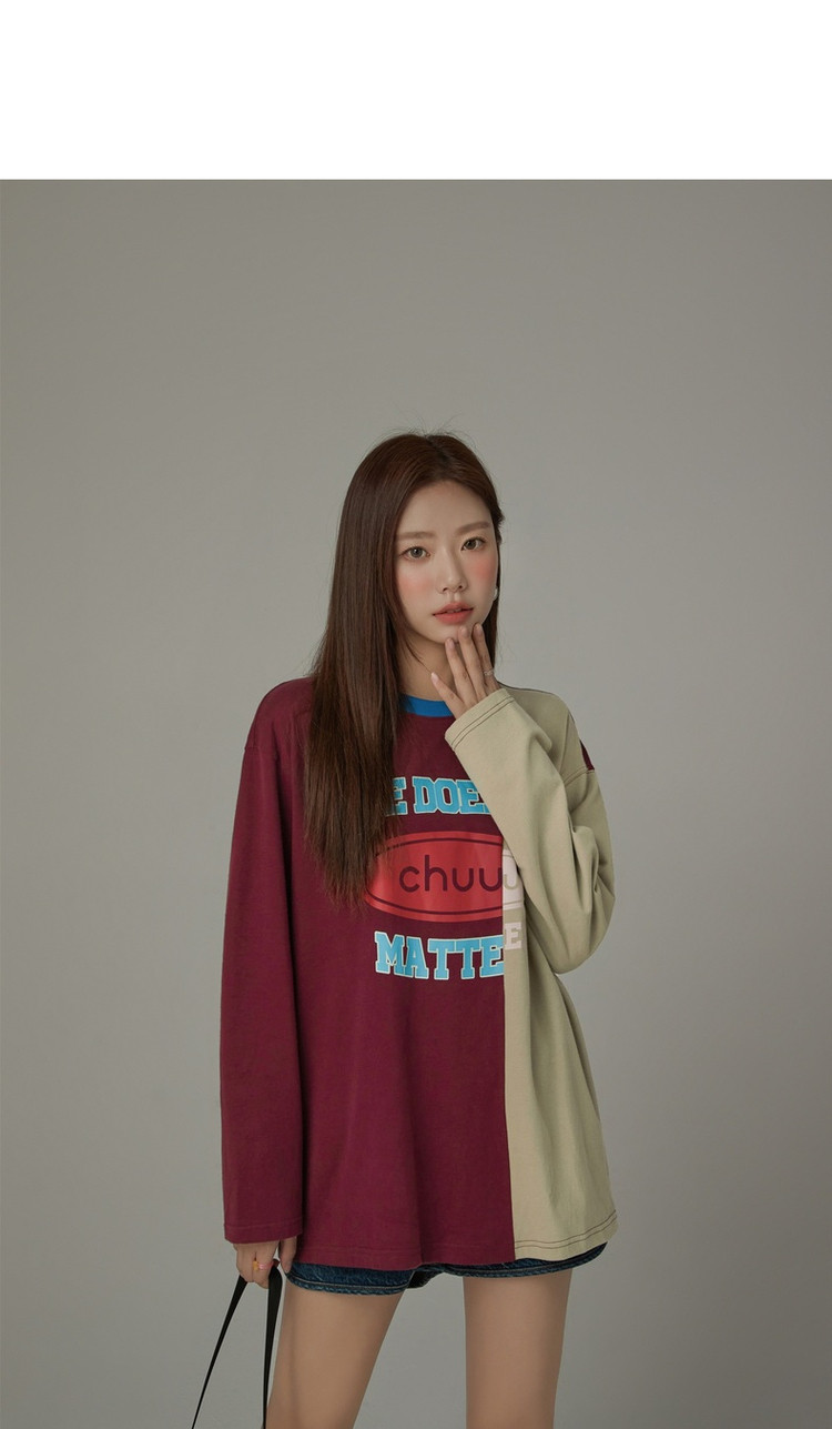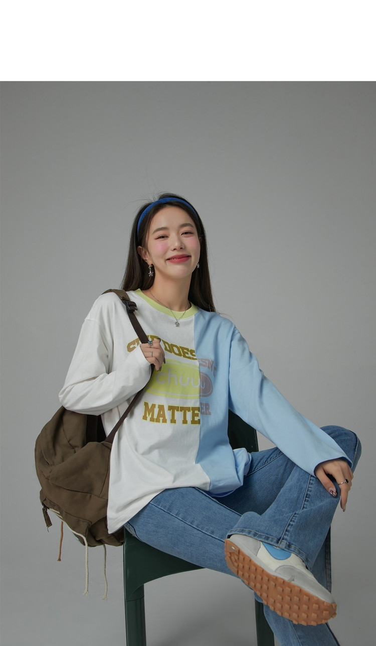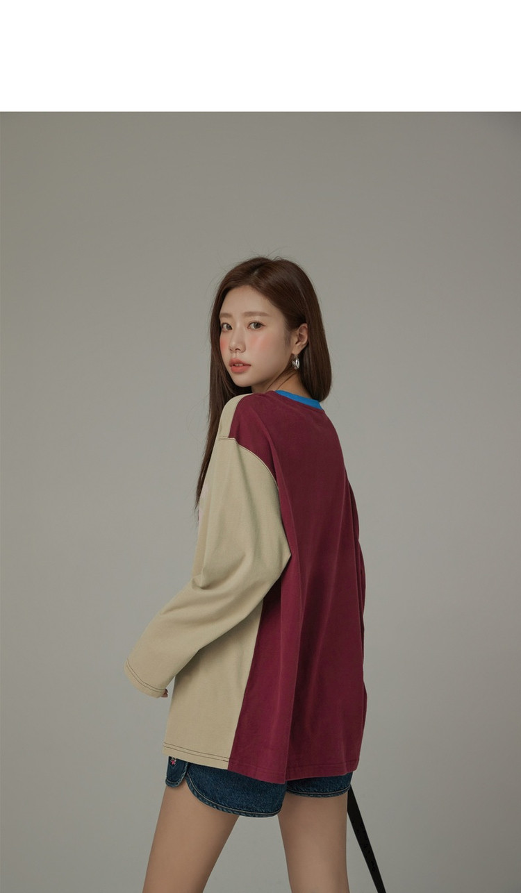 商品名称:假两件拼接T恤女士春秋圆领宽松字母撞色长袖上衣 016147