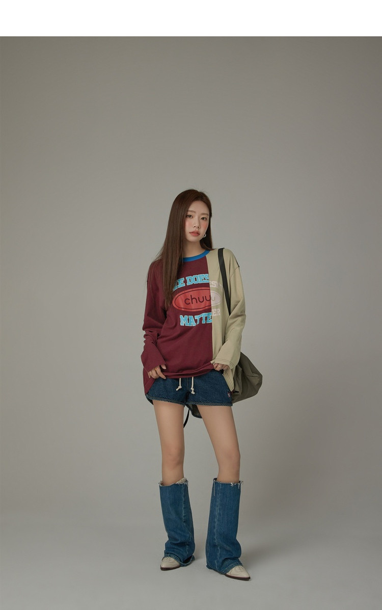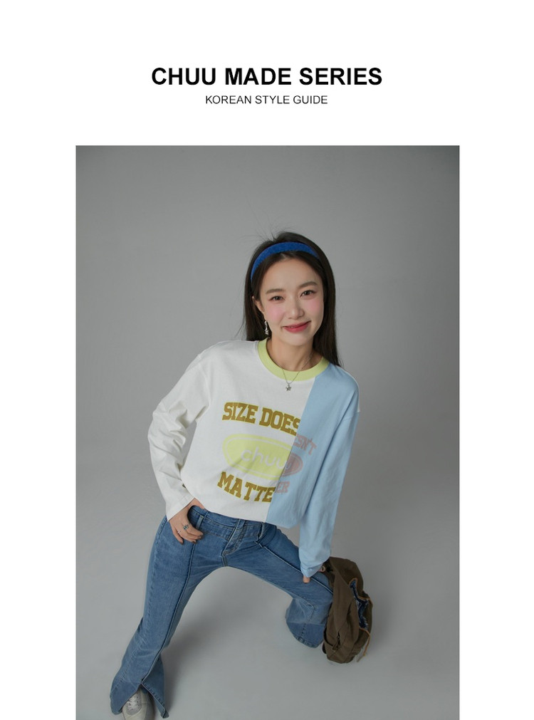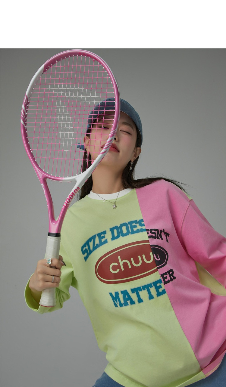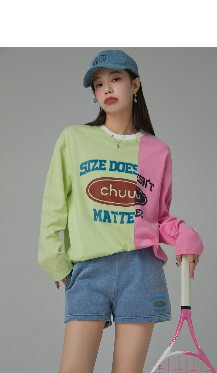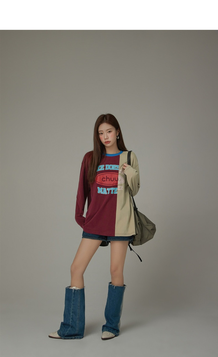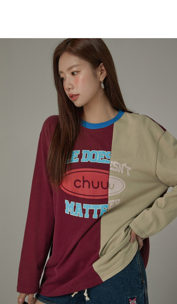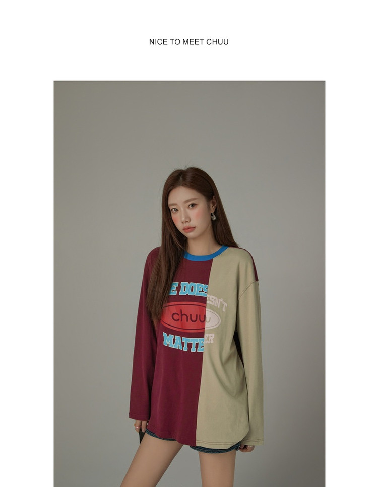 商品名称:假两件拼接T恤女士春秋圆领宽松字母撞色长袖上衣 016147
