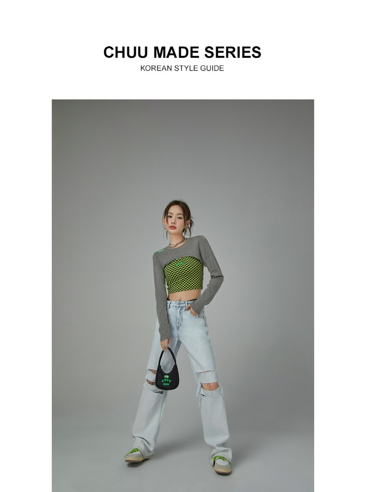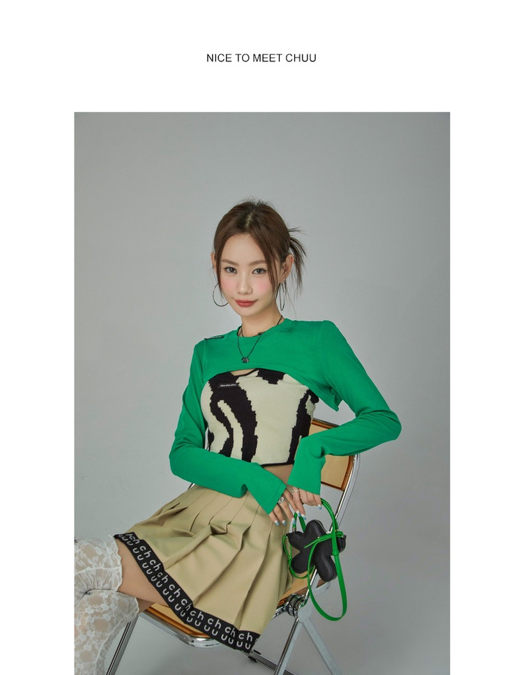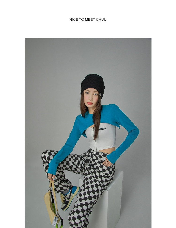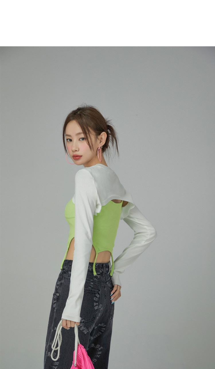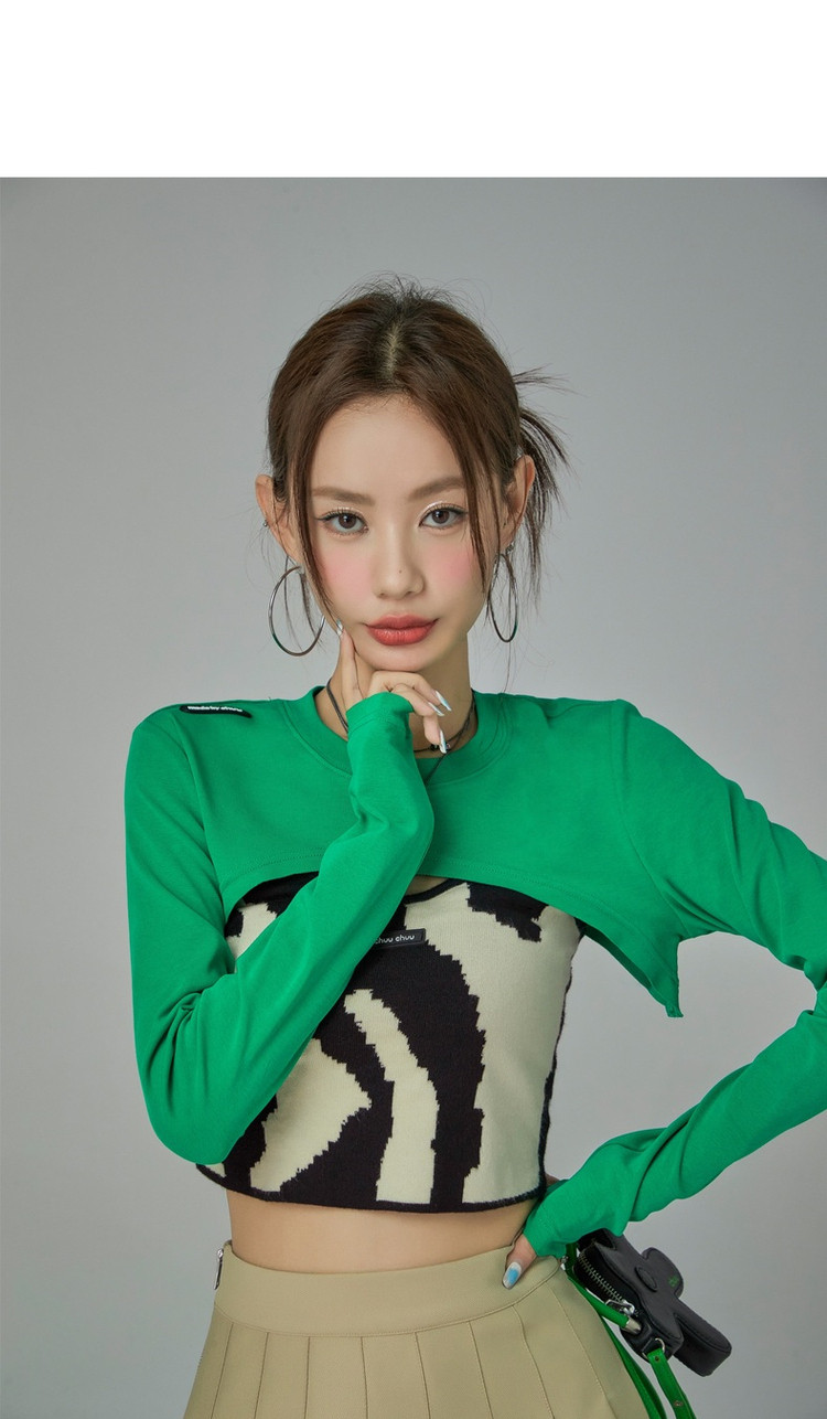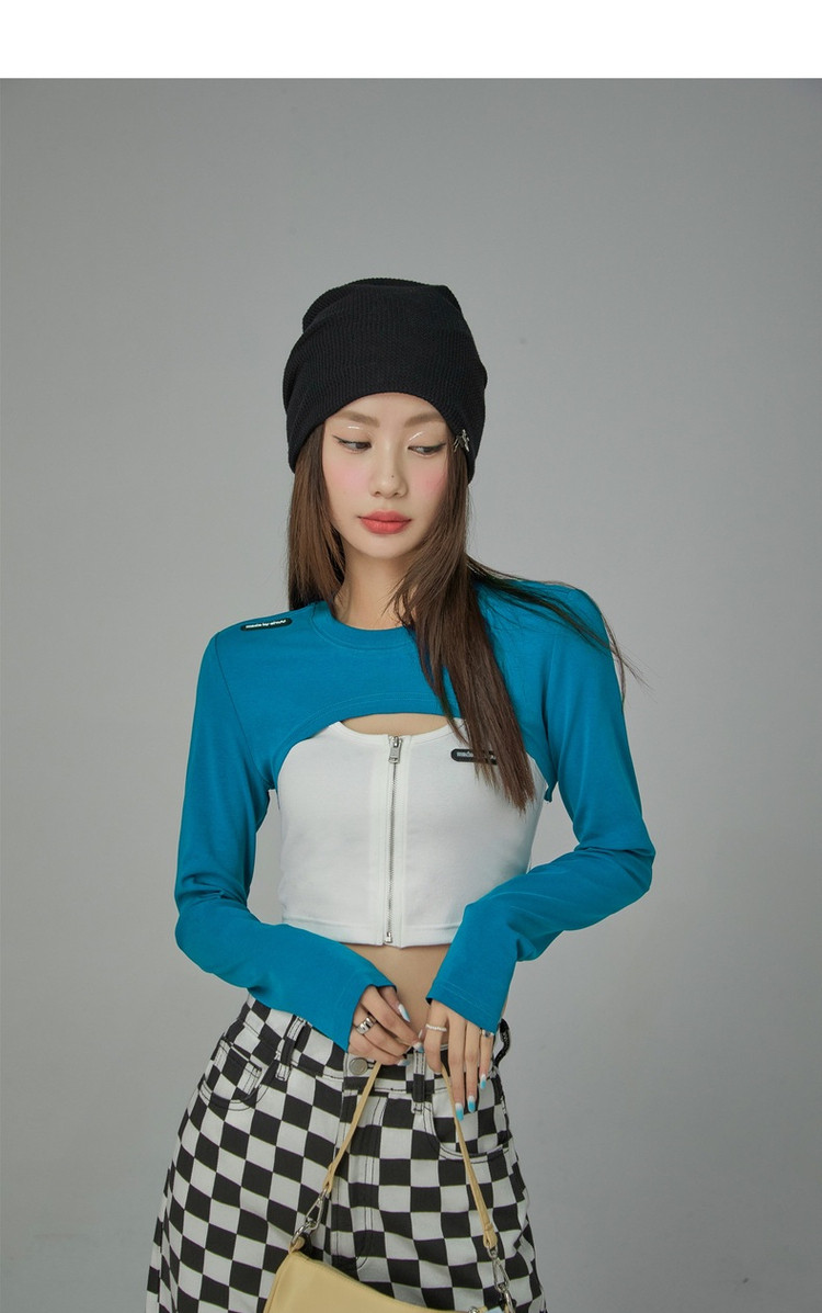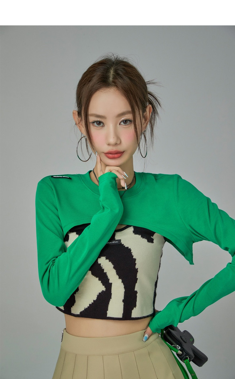个性设计纯色T恤女春秋甜辣短款外穿长袖上衣 126291