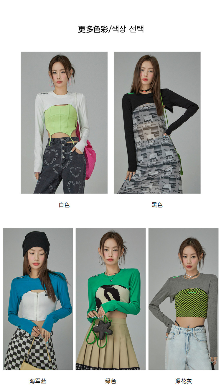 商品名称:个性设计纯色T恤女春秋甜辣短款外穿长袖上衣 126291