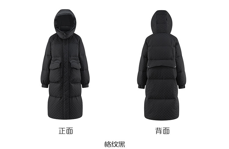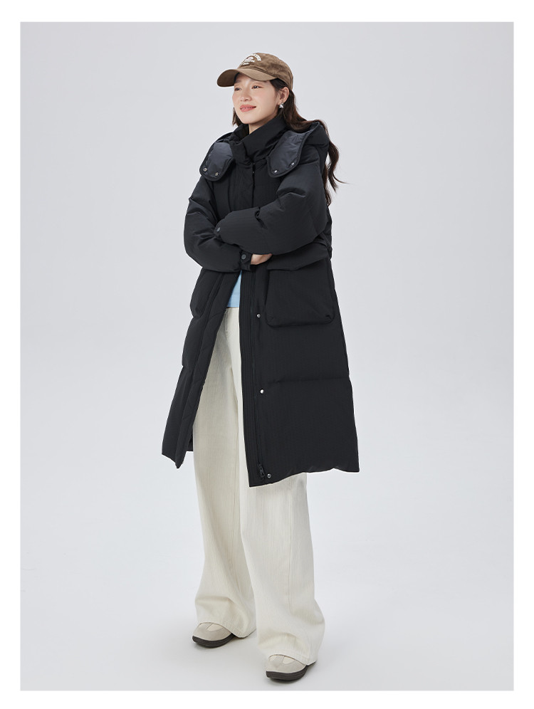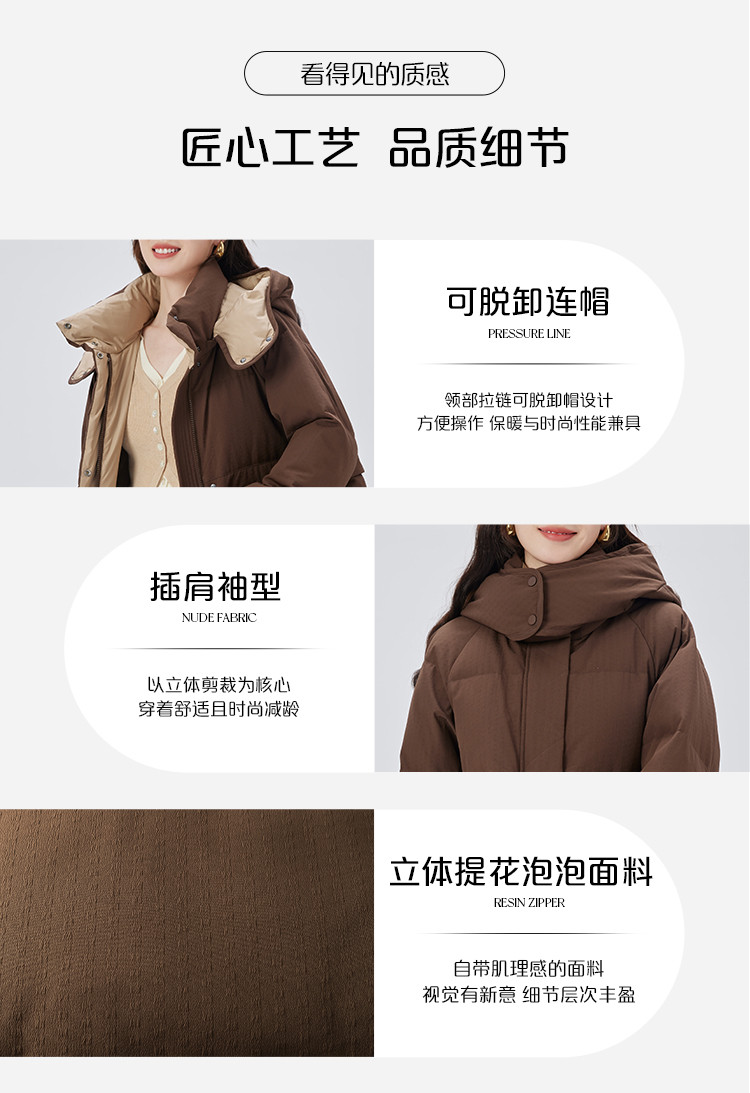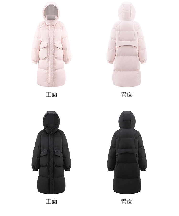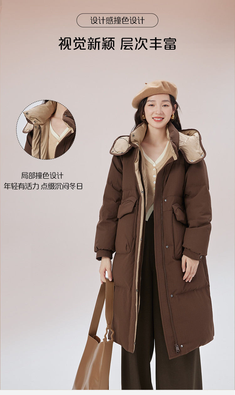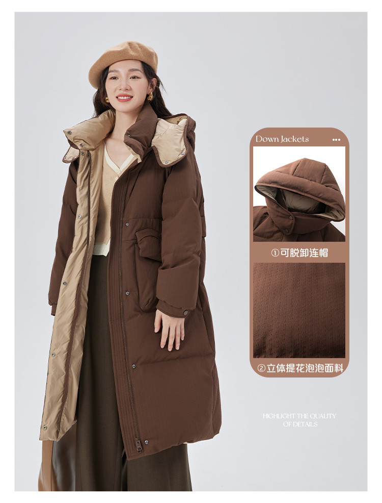 商品名称:时尚撞色鸭绒羽绒服女可脱卸连帽长款外套女 889750