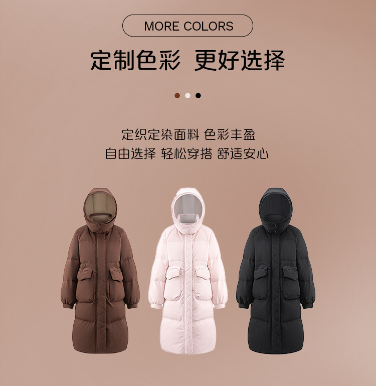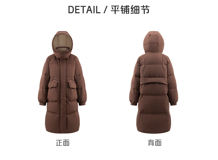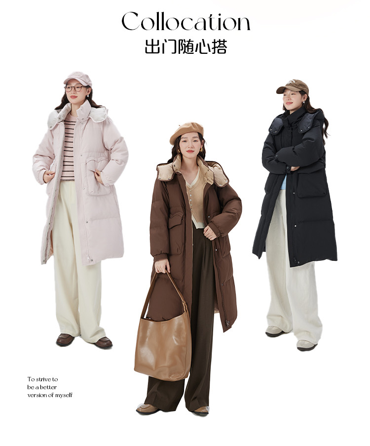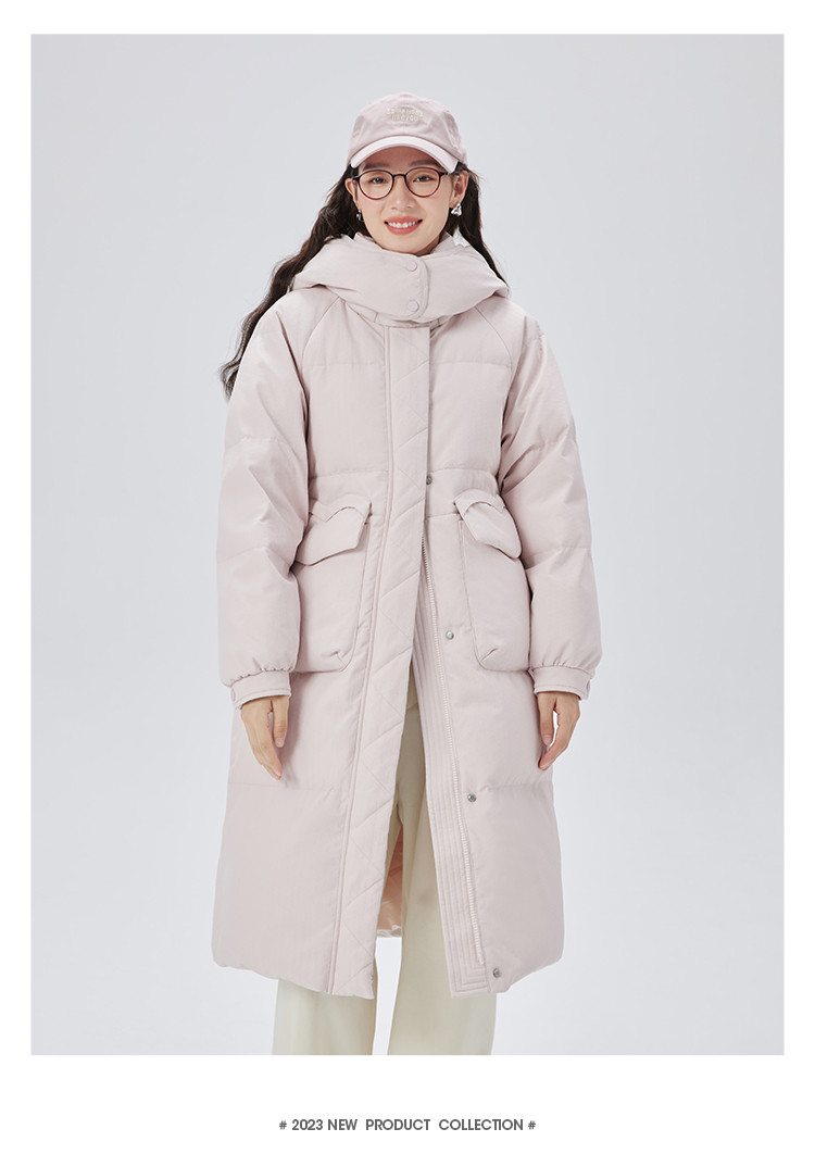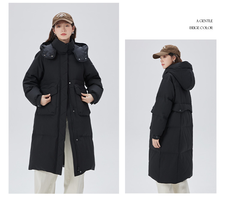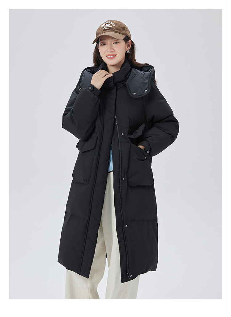 商品名称:时尚撞色鸭绒羽绒服女可脱卸连帽长款外套女 889750