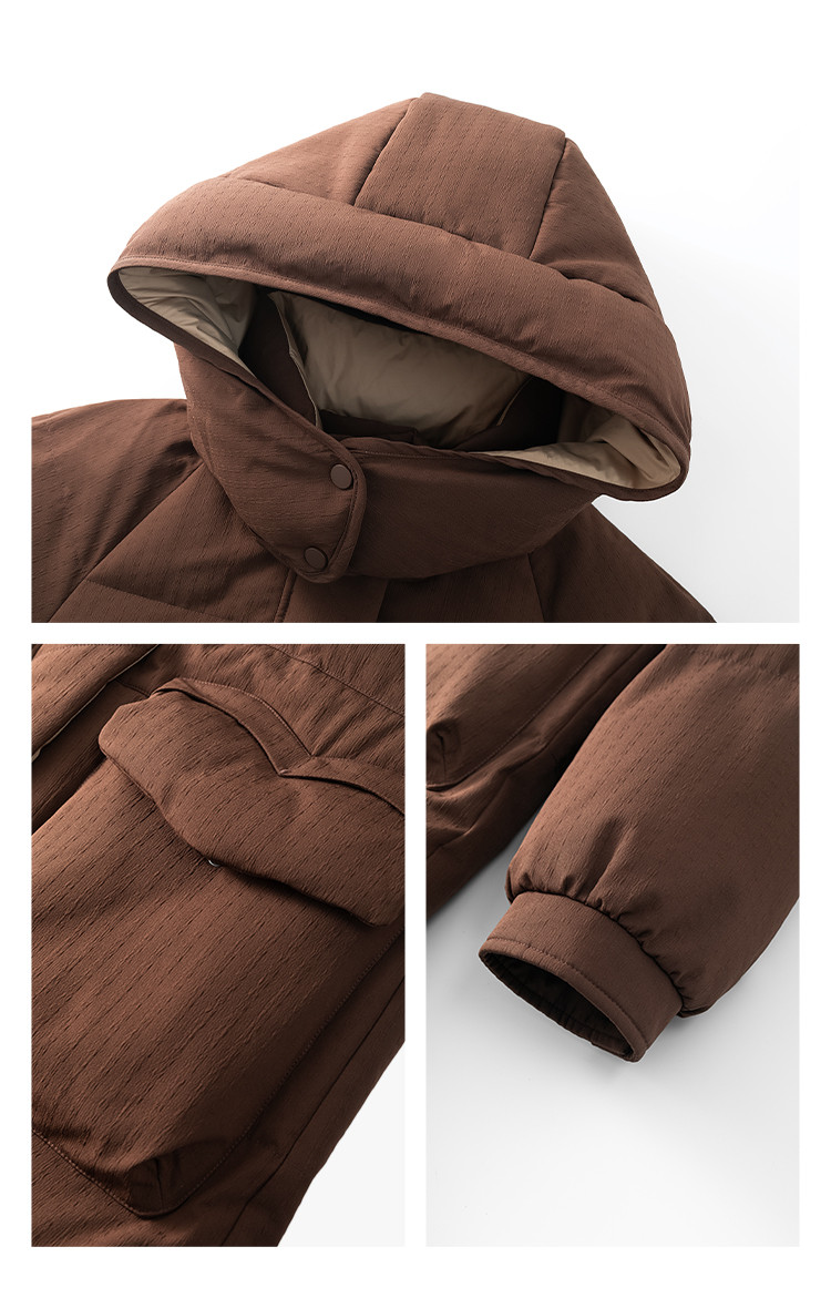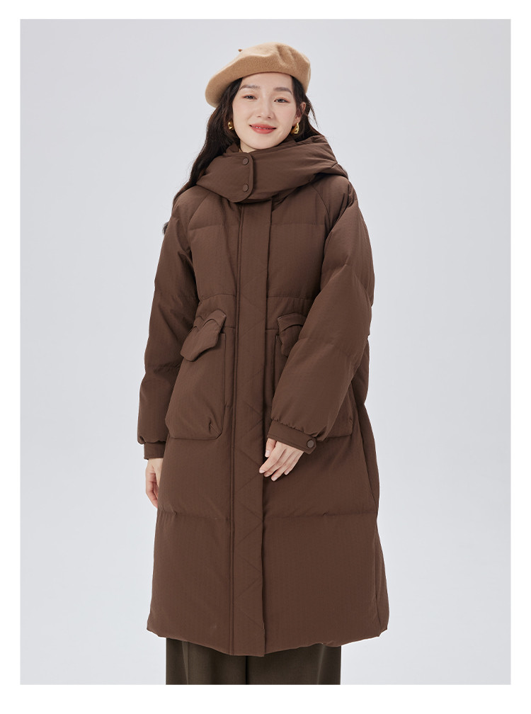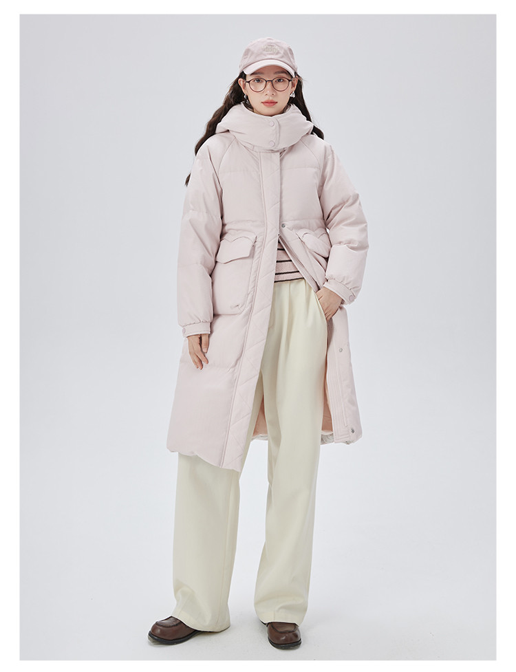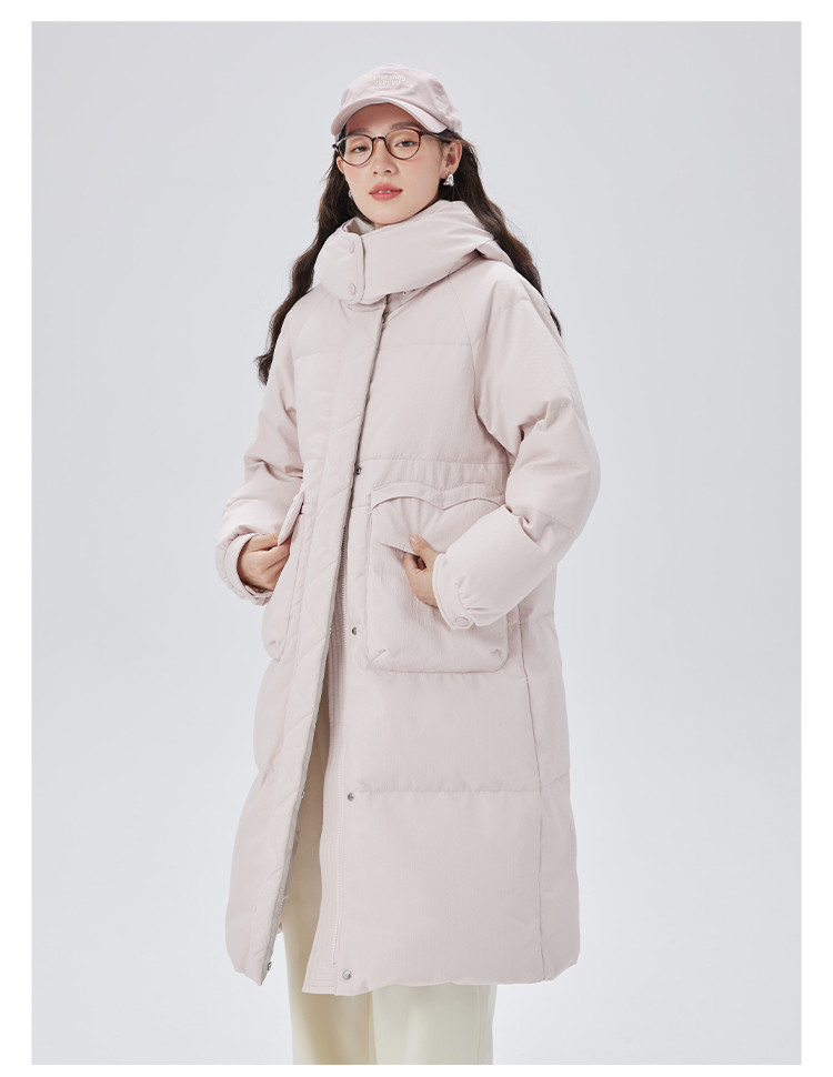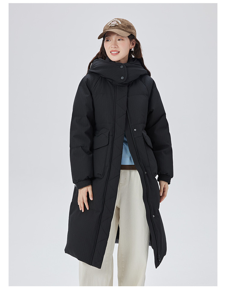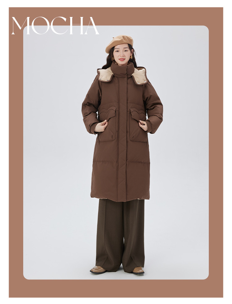 商品名称:时尚撞色鸭绒羽绒服女可脱卸连帽长款外套女 889750