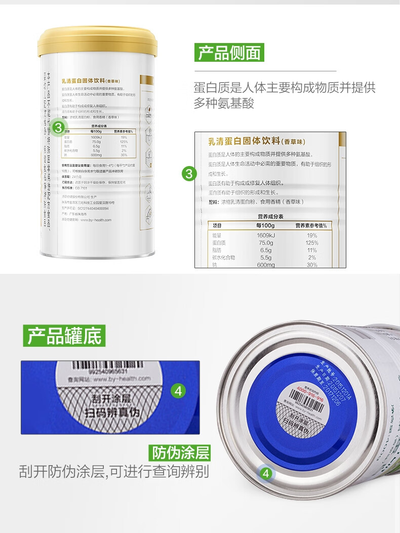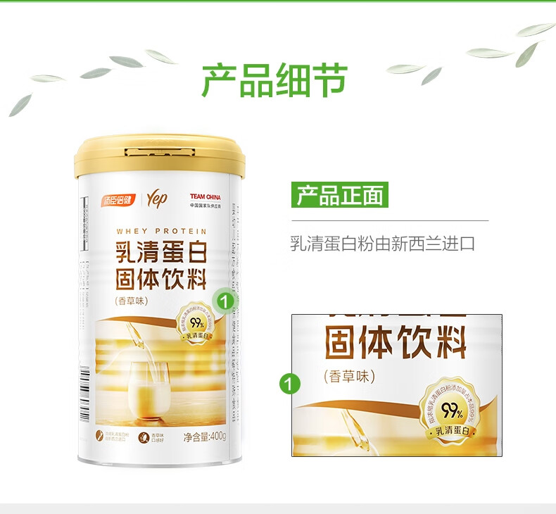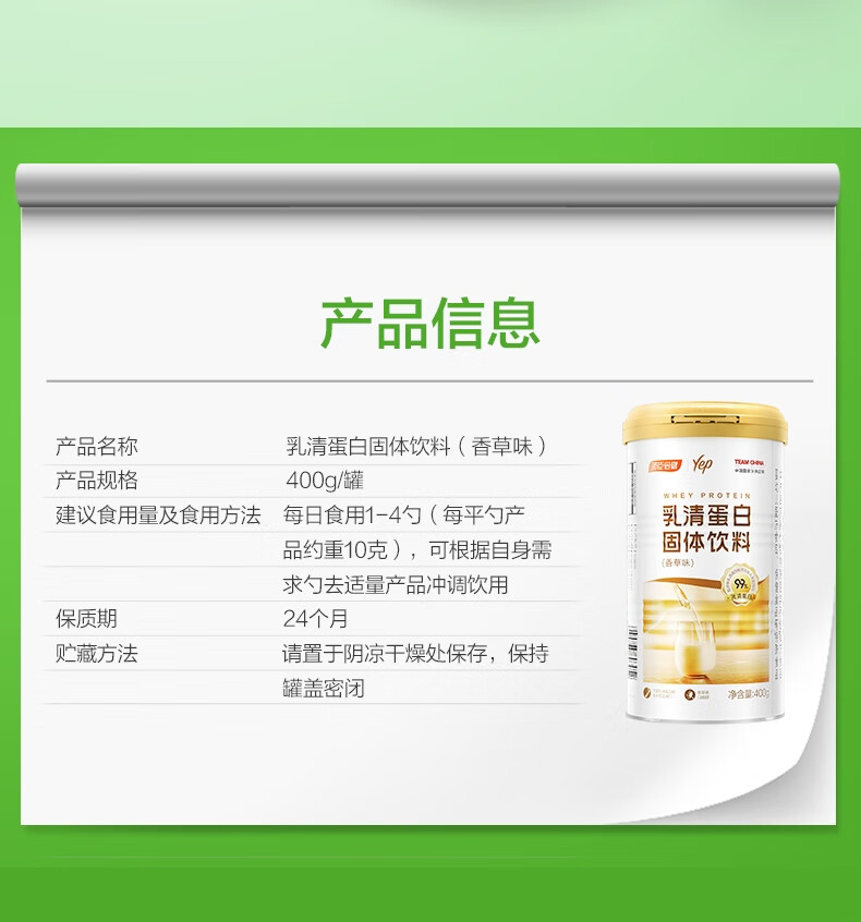 商品名称:汤臣倍健乳清蛋白固体饮料(香草味)(400g/高盖)蛋白粉男女蛋白质粉 运动健身可食用