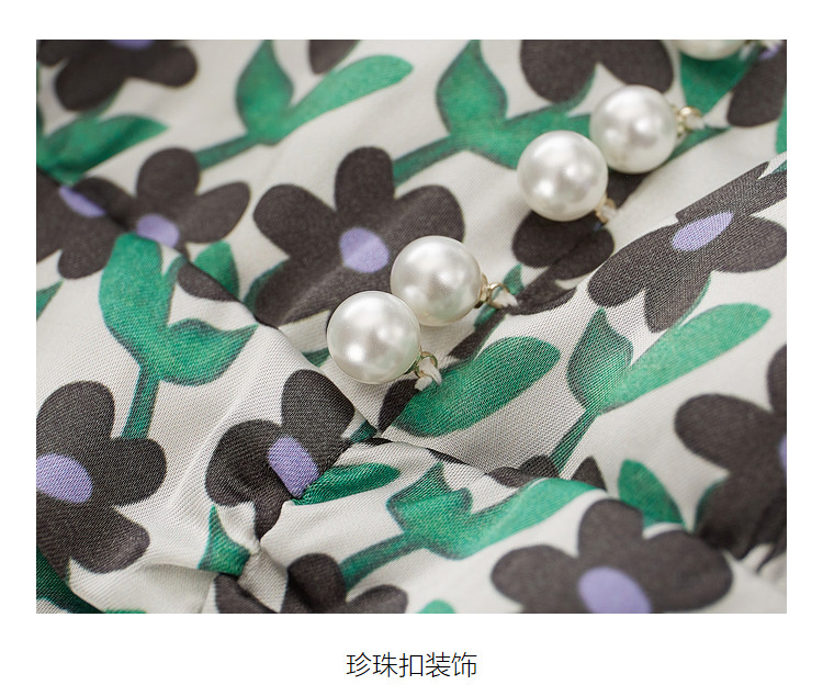 地素夏秋季满底印花珍珠扣装饰花布连衣裙女 813067