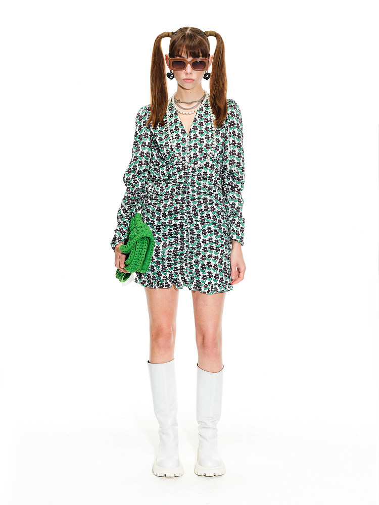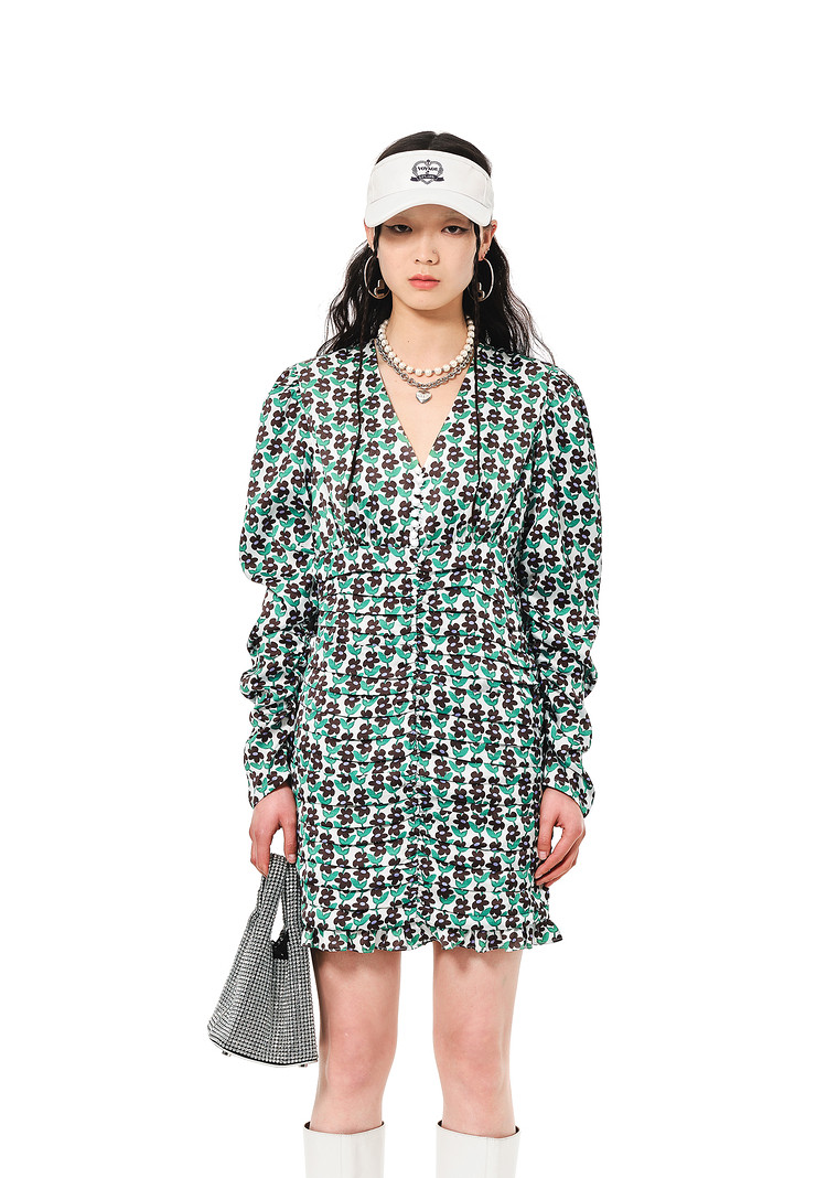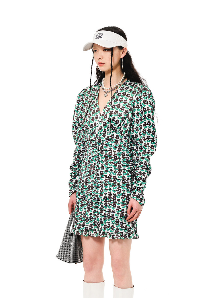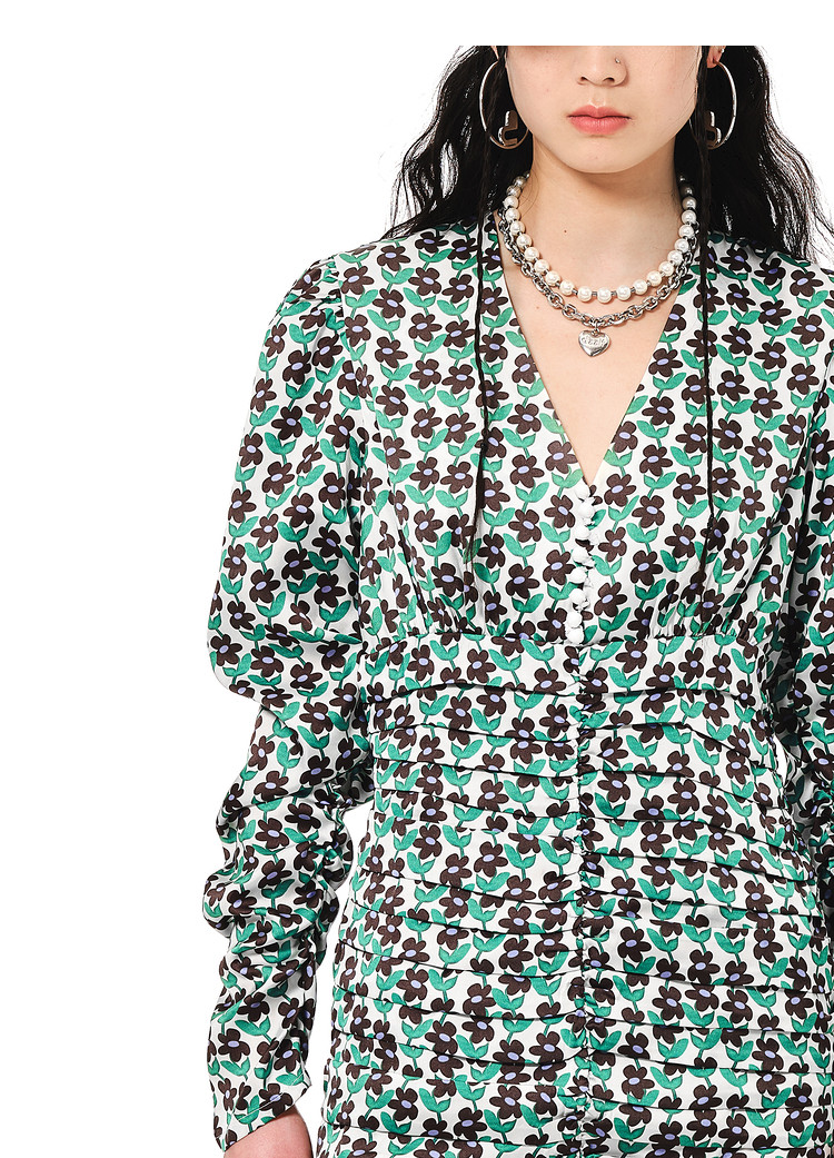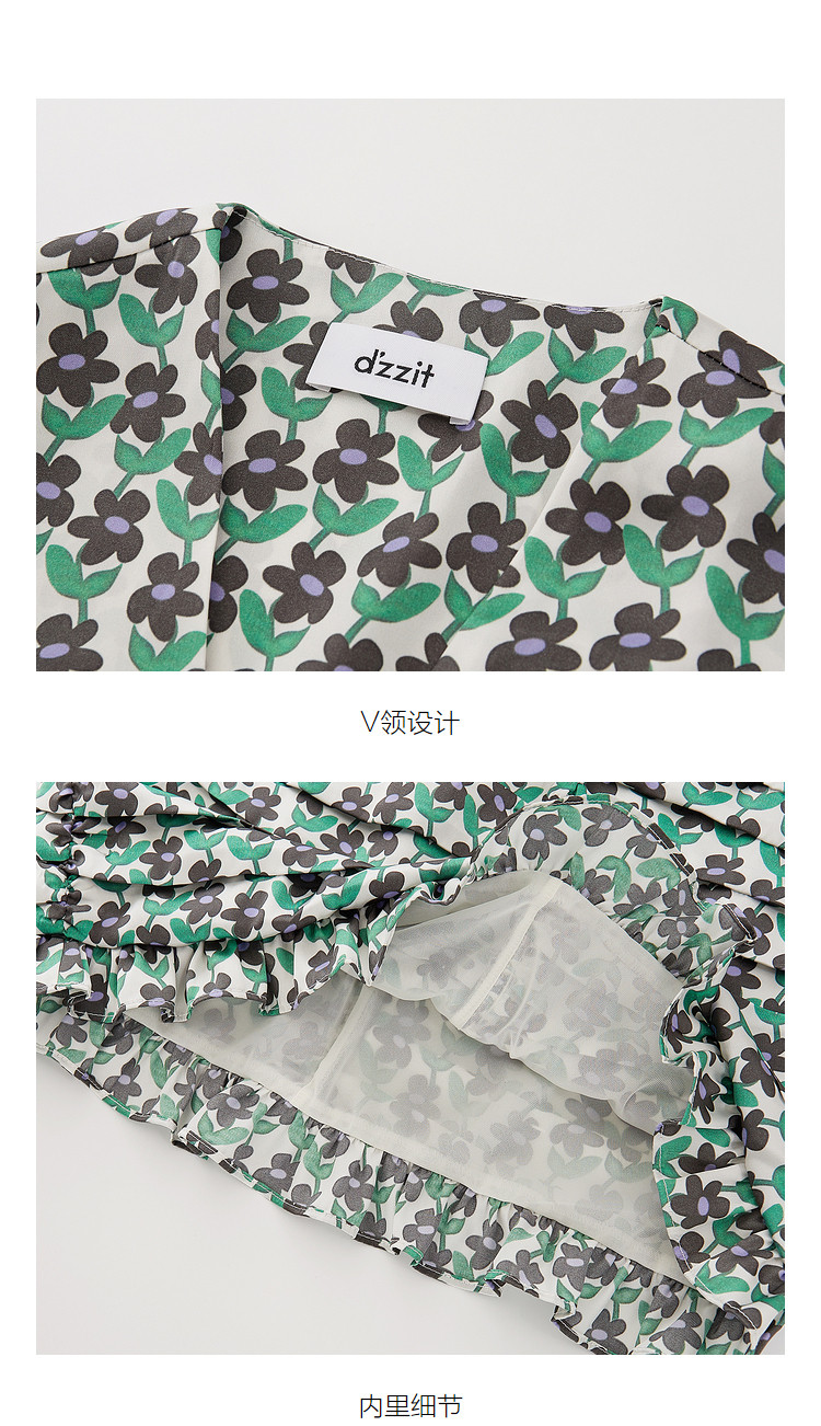 商品名称:地素夏秋季满底印花珍珠扣装饰花布连衣裙女 813067