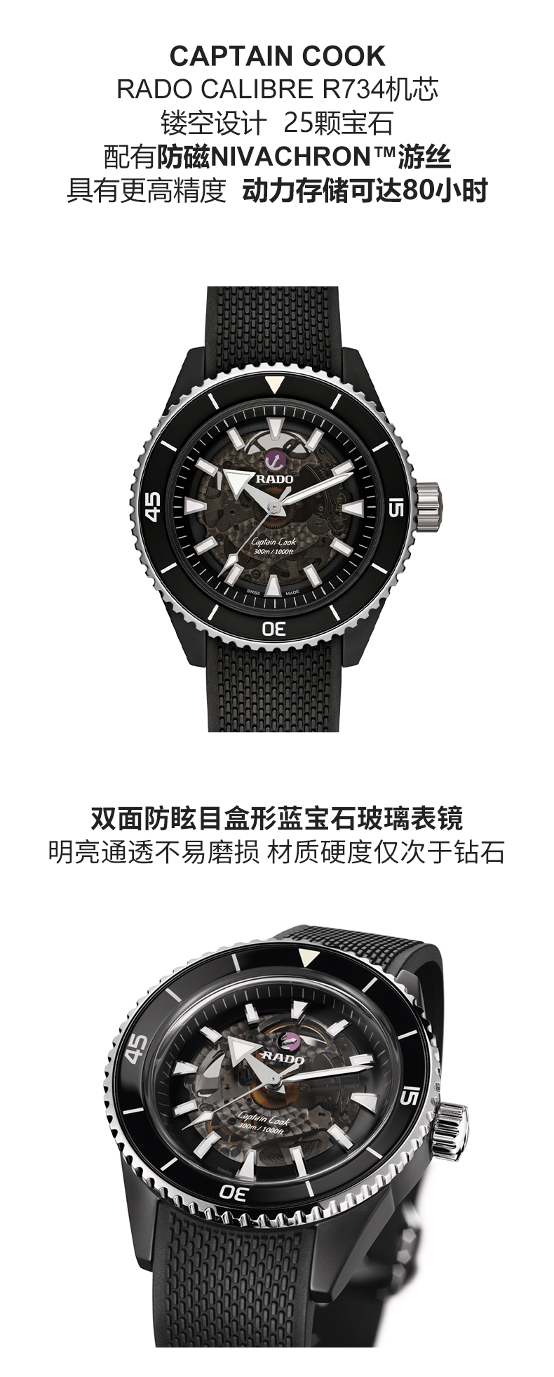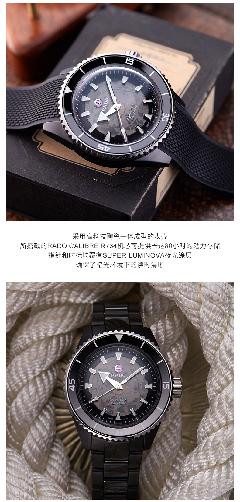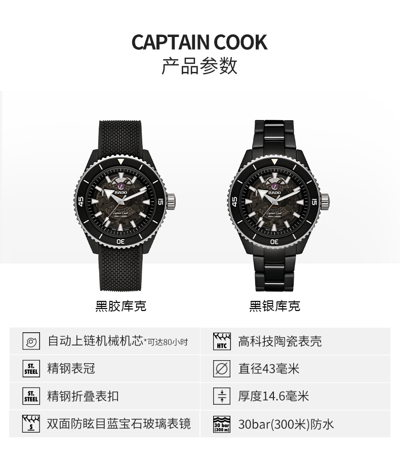 商品名称:RADO雷达 库克船长系列黑银库克陶瓷机械手表男士腕表 R32127152