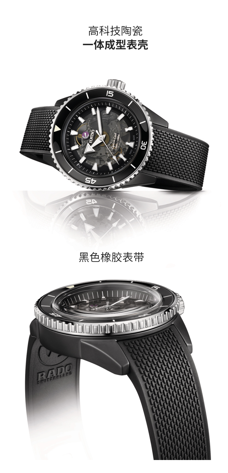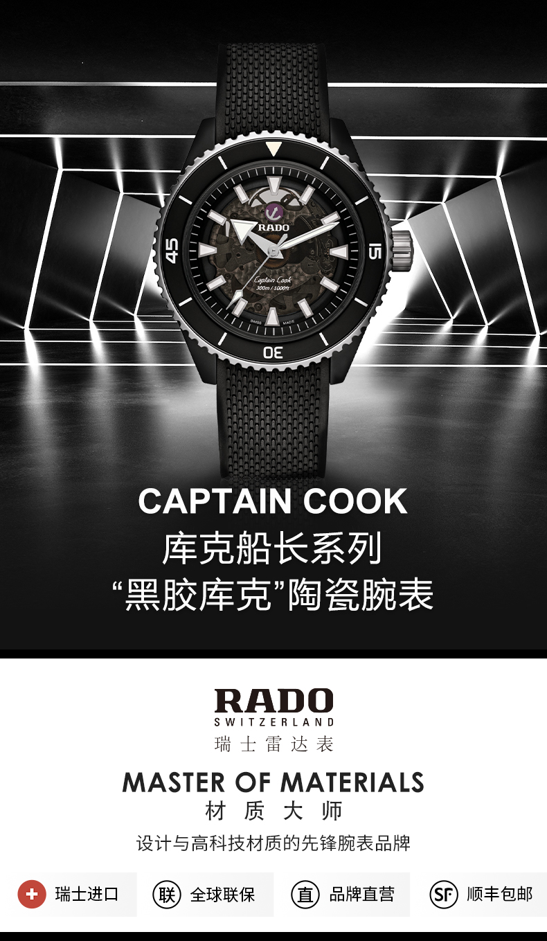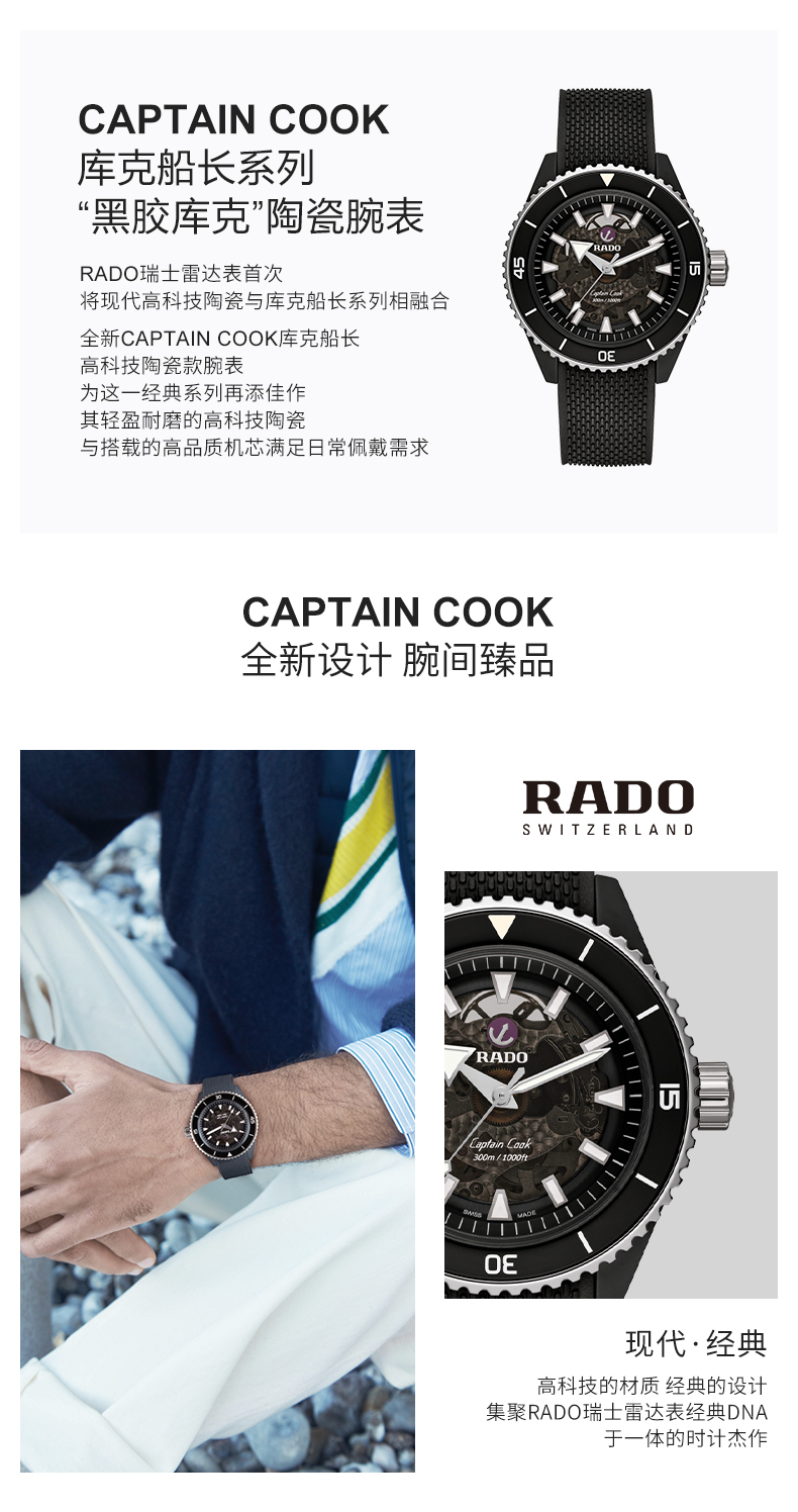 商品名称:RADO雷达 库克船长系列黑银库克陶瓷机械手表男士腕表 R32127152