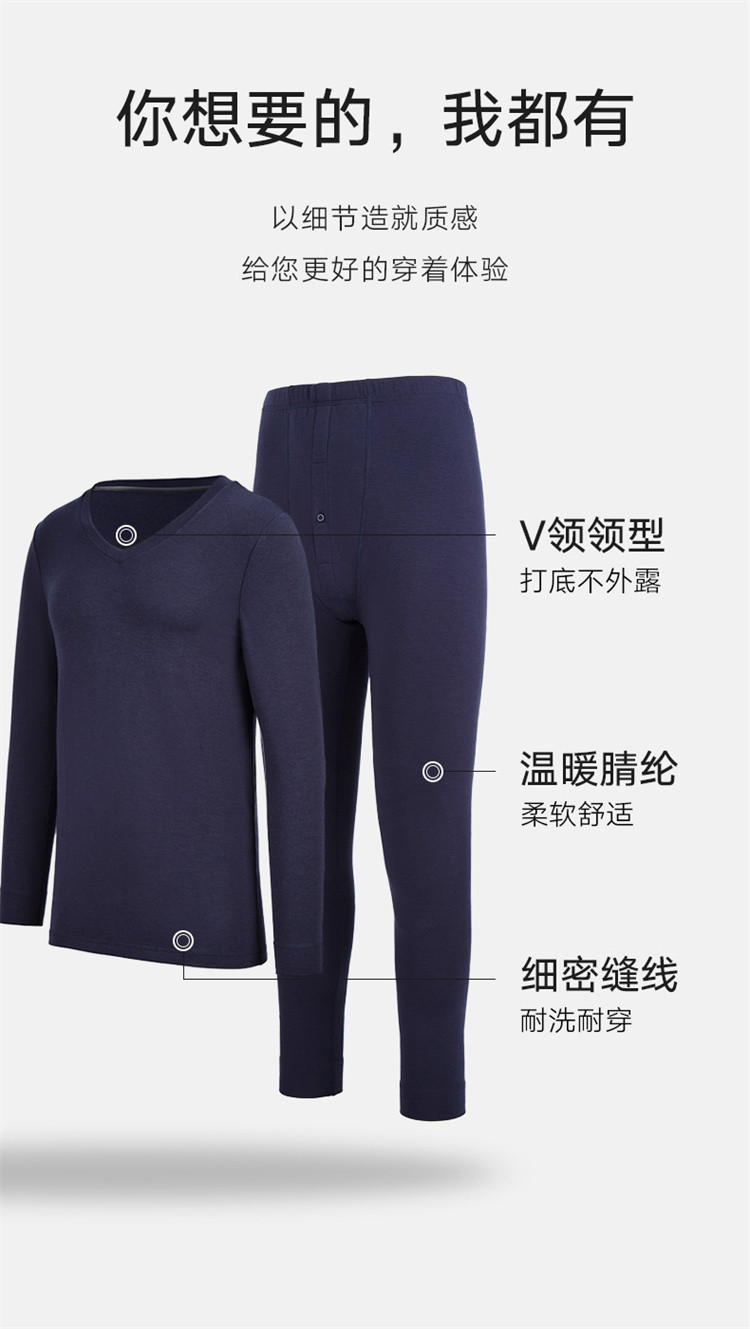 商品名称:【V领倍暖暖衣套装】高弹柔软舒适男秋衣秋裤套装男保护暖衣打底 429211