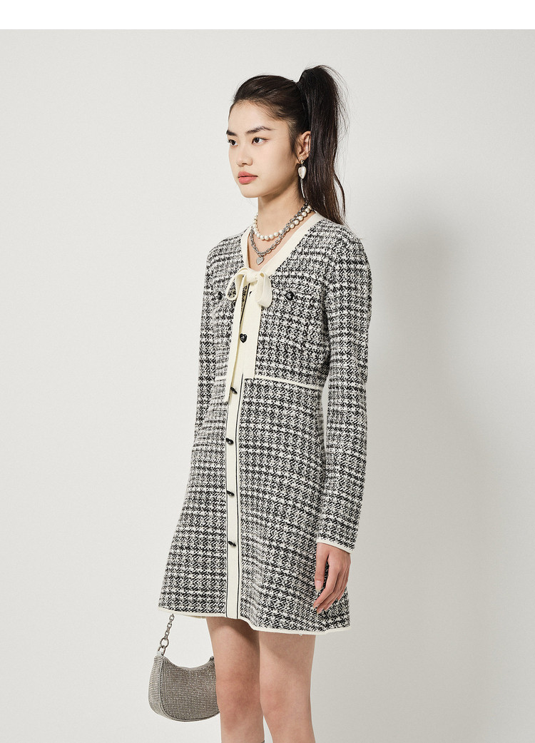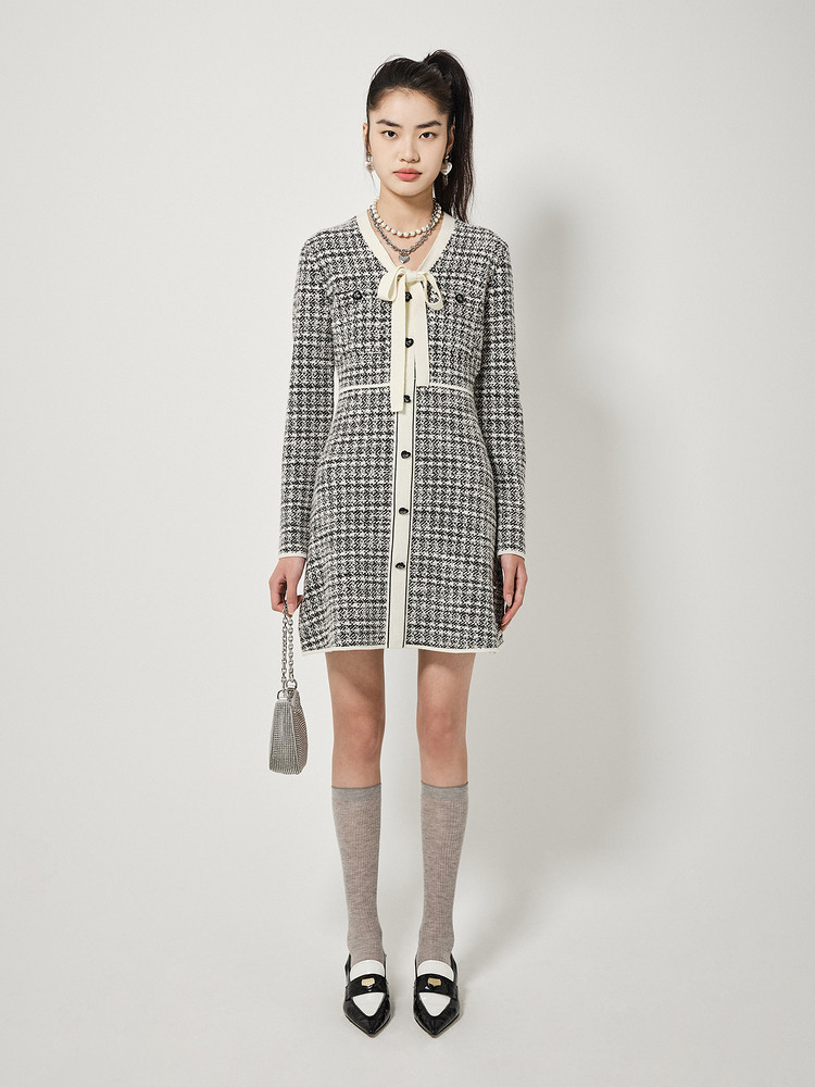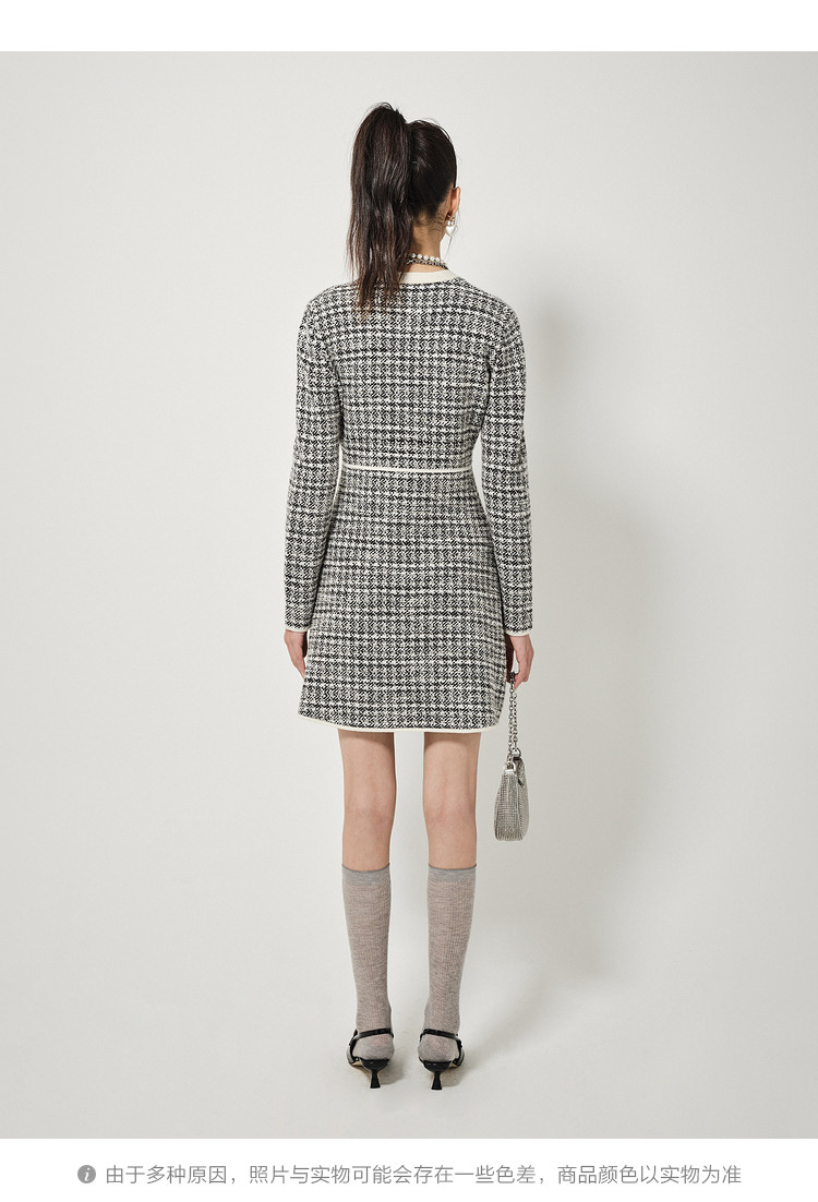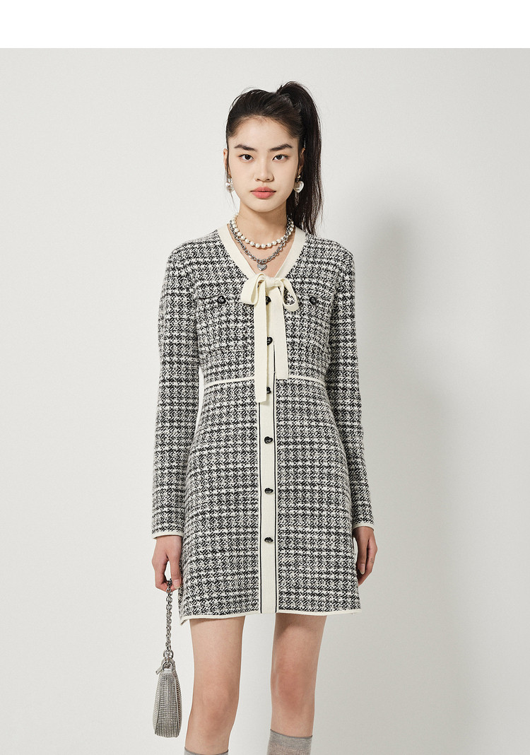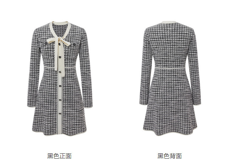 商品名称:地素长袖针织连衣裙春秋季领口系带修身短裙女 086795