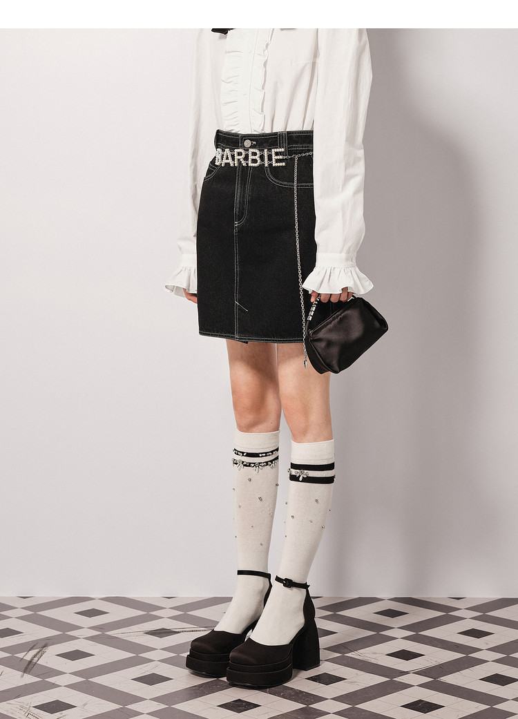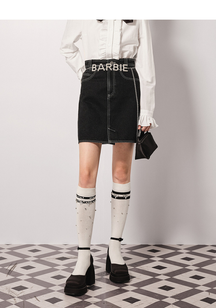 商品名称:地素半裙 春秋专柜 牛仔半裙明线装饰A字短裙女 889739