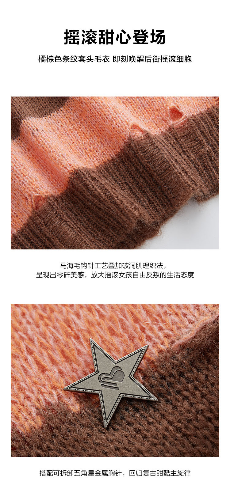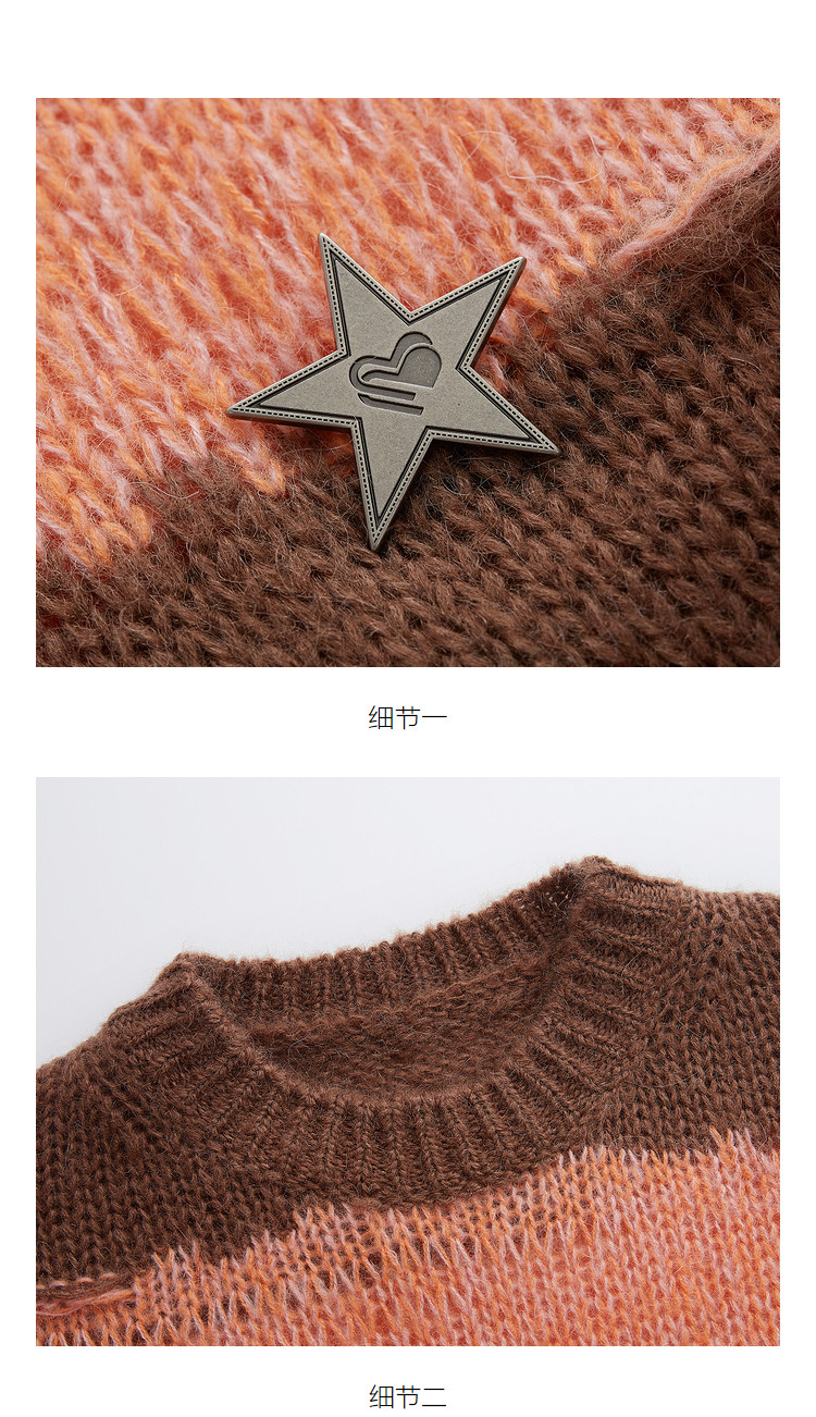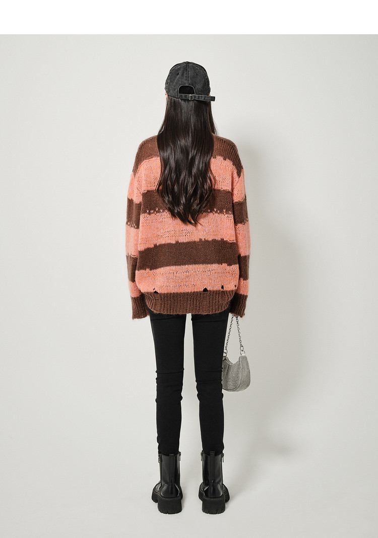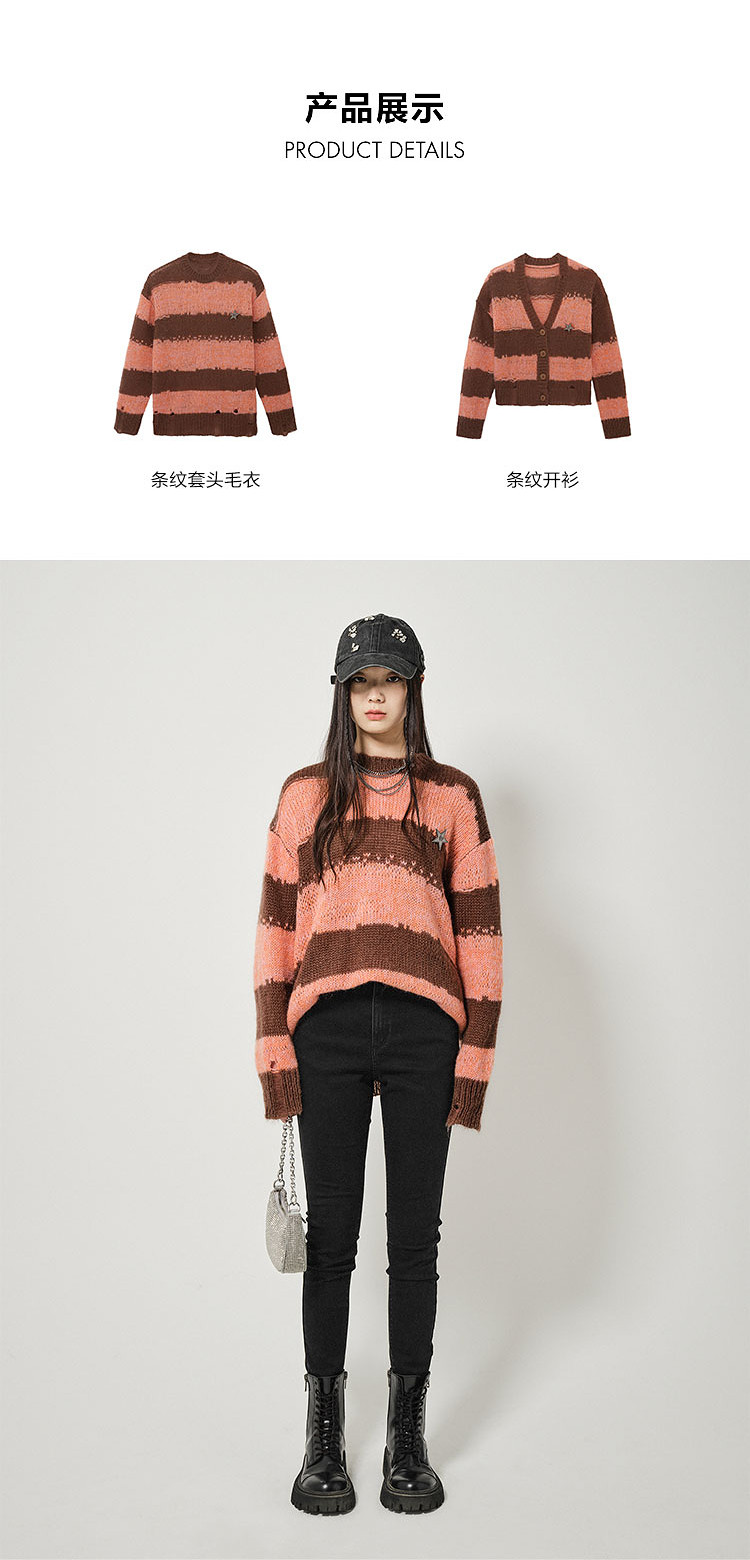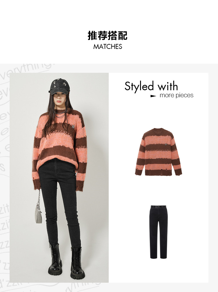 商品名称:地素条纹套头毛衣春秋季慵懒金属胸针装饰长袖上衣女 811915