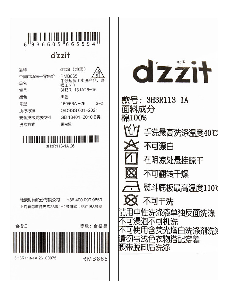 商品名称:地素高腰牛仔裤中裤夏秋季潮流阔腿裤女 501323