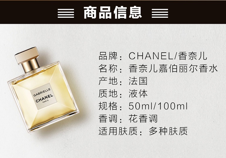 商品名称:Chanel/香奈儿 嘉柏丽尔浓香水 35ml/50ml/100ml