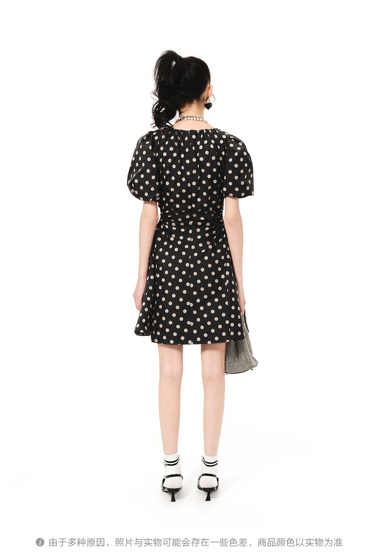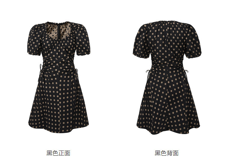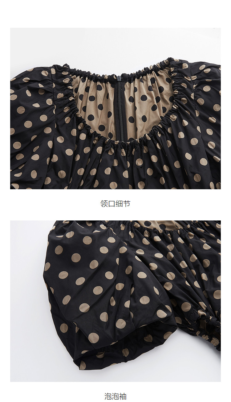 商品名称:地素连衣裙夏秋季专柜波点腰间镂空泡泡袖复古裙女 008907