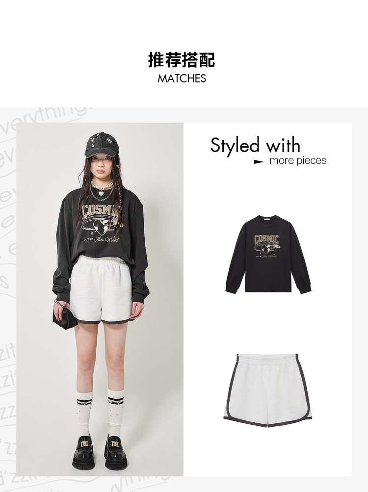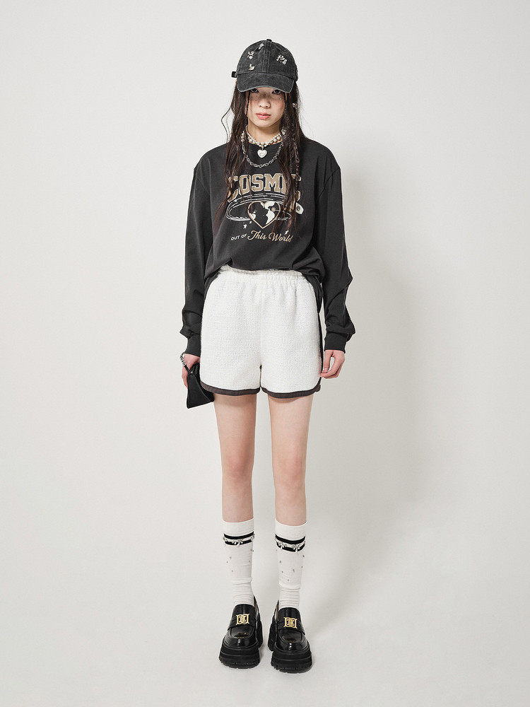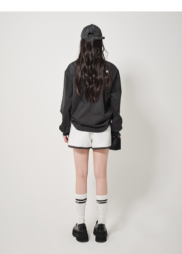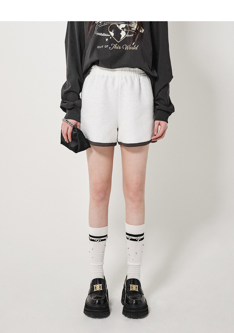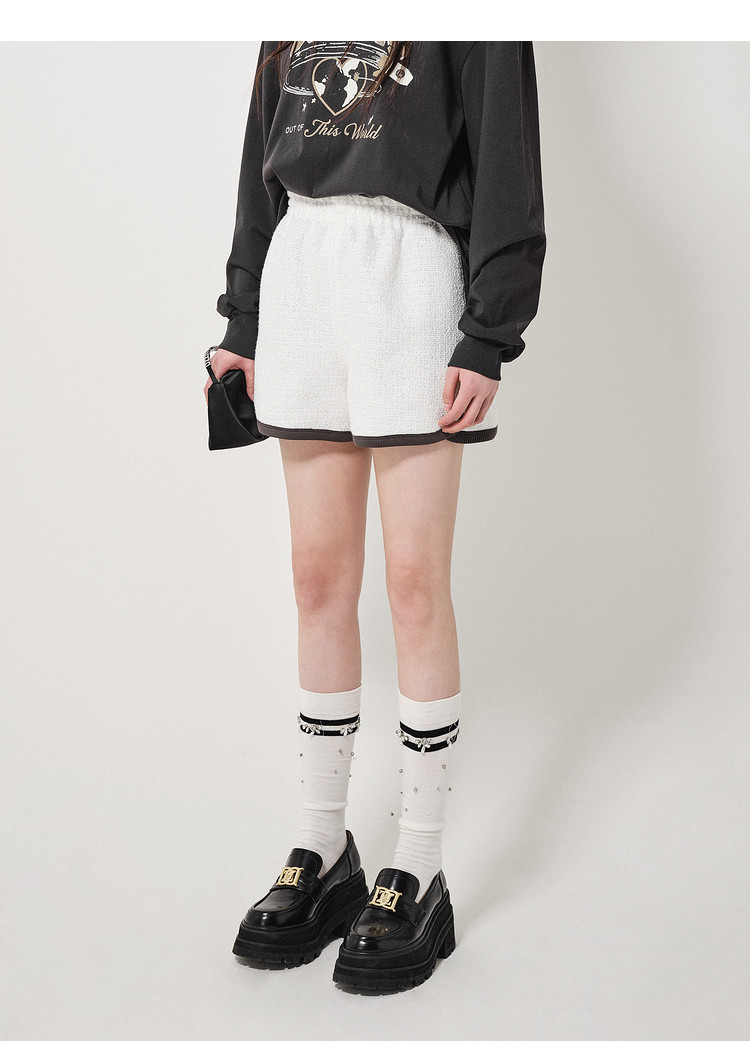地素休闲裤春秋季专柜粗花呢运动风撞色短裤 471947