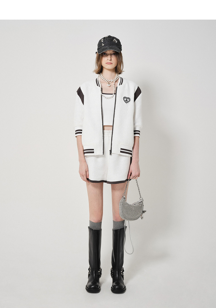 商品名称:地素休闲裤春秋季专柜粗花呢运动风撞色短裤 471947