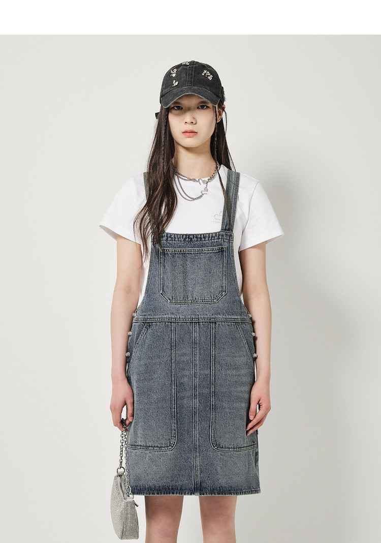 商品名称:地素连衣裙春秋减龄复古牛仔背带裙女 955787