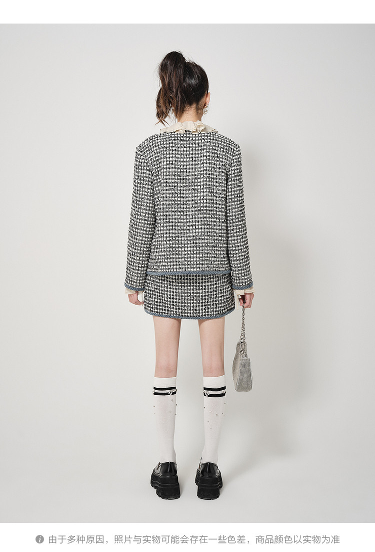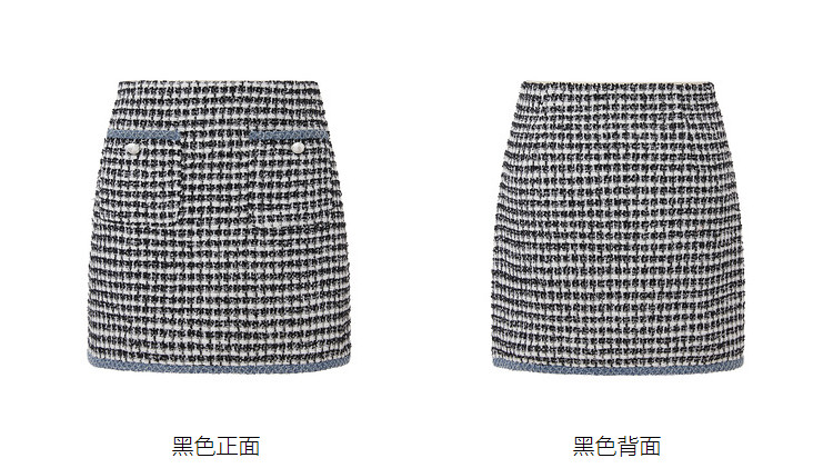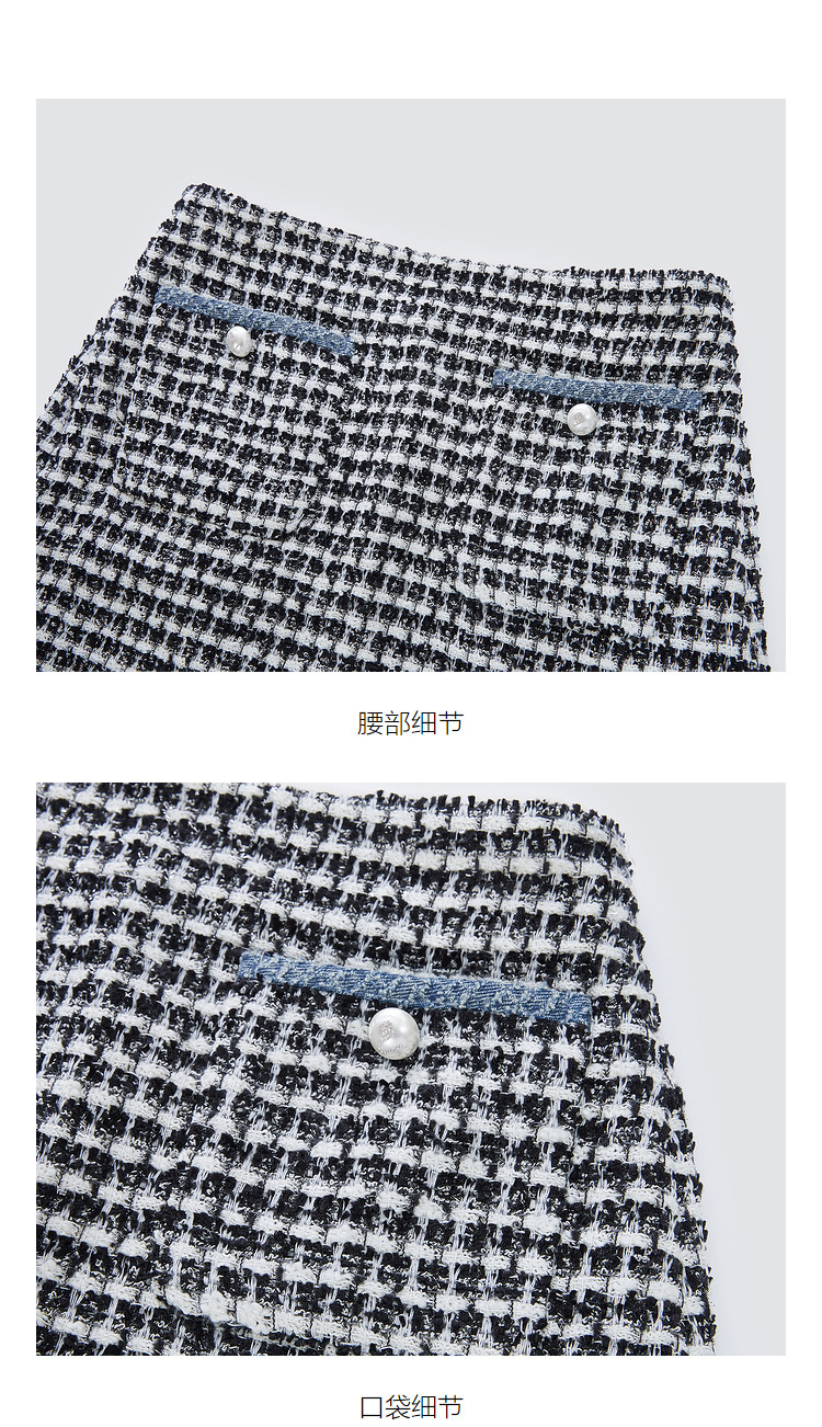 商品名称:地素黑白格粗花呢半裙秋小香风口袋设计短裙女 980811