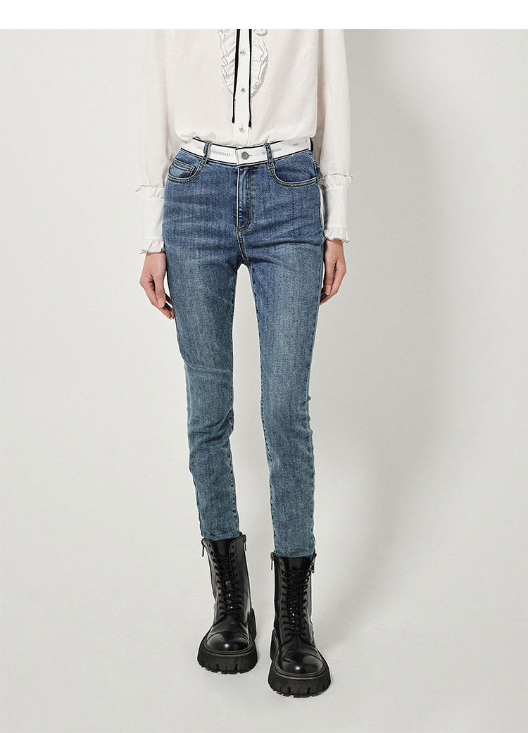 商品名称:地素牛仔小脚裤秋复古水洗高腰修身长裤女(尺码偏小) 050059