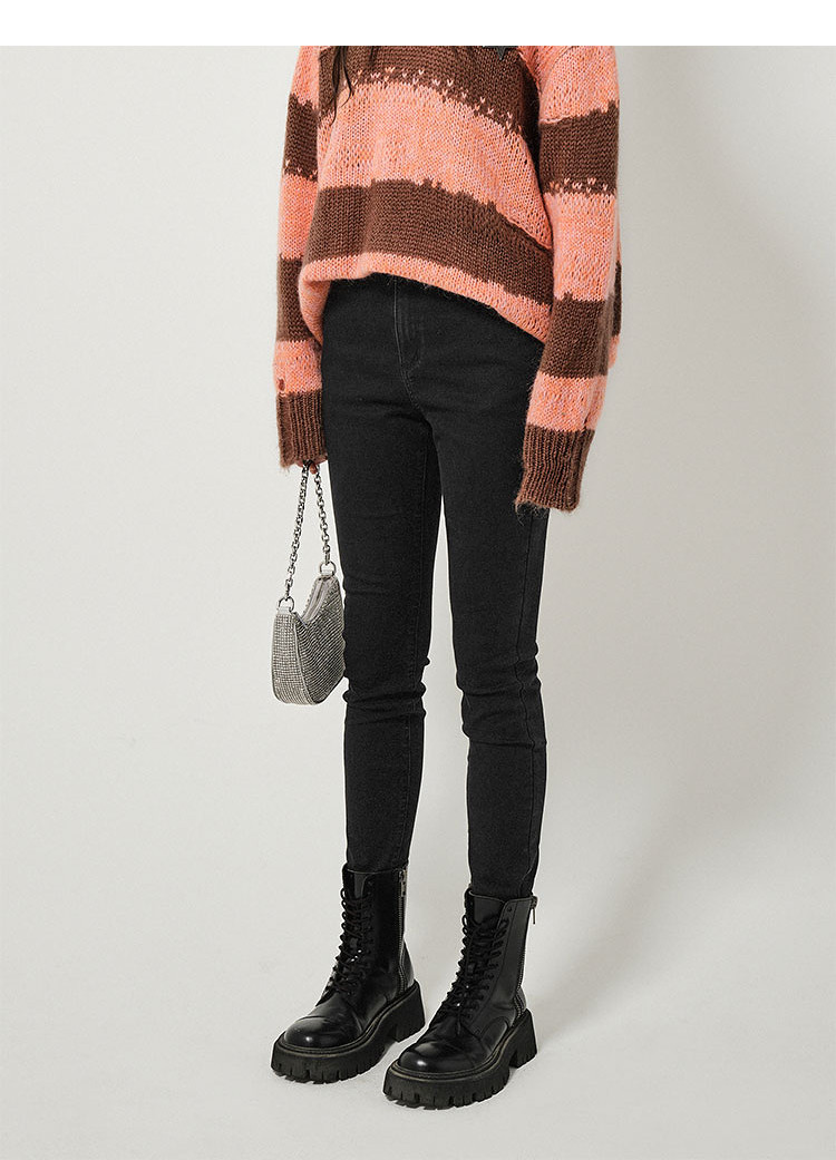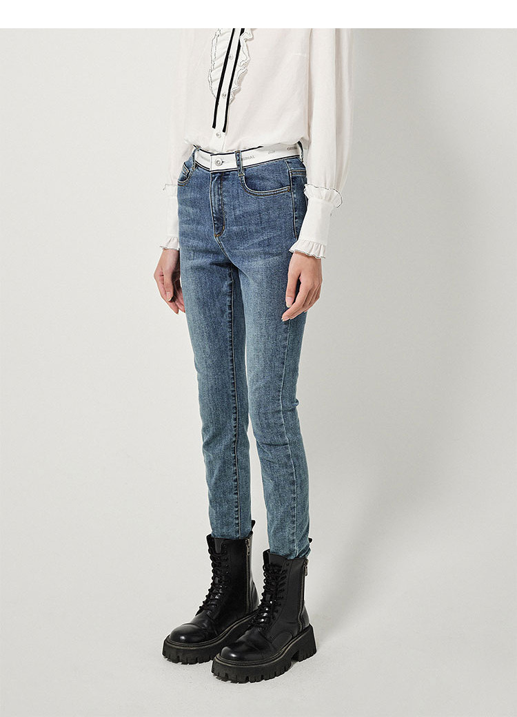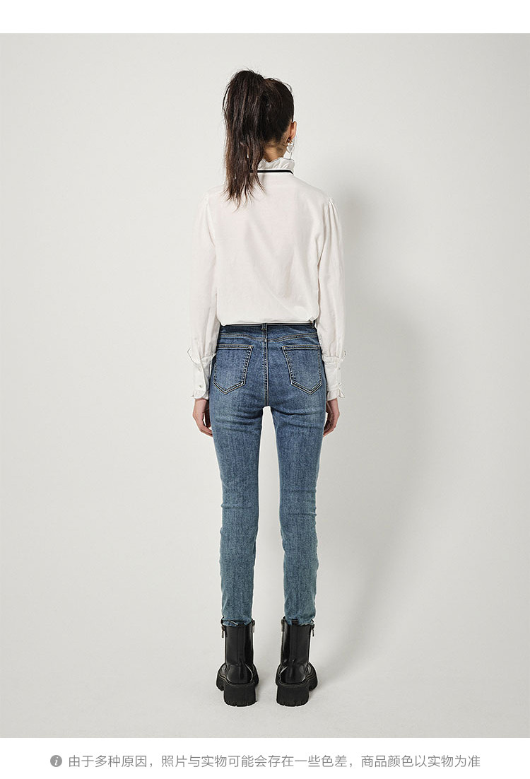 地素牛仔小脚裤秋复古水洗高腰修身长裤女(尺码偏小) 050059