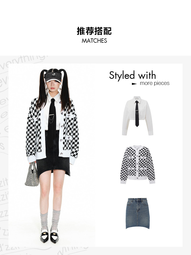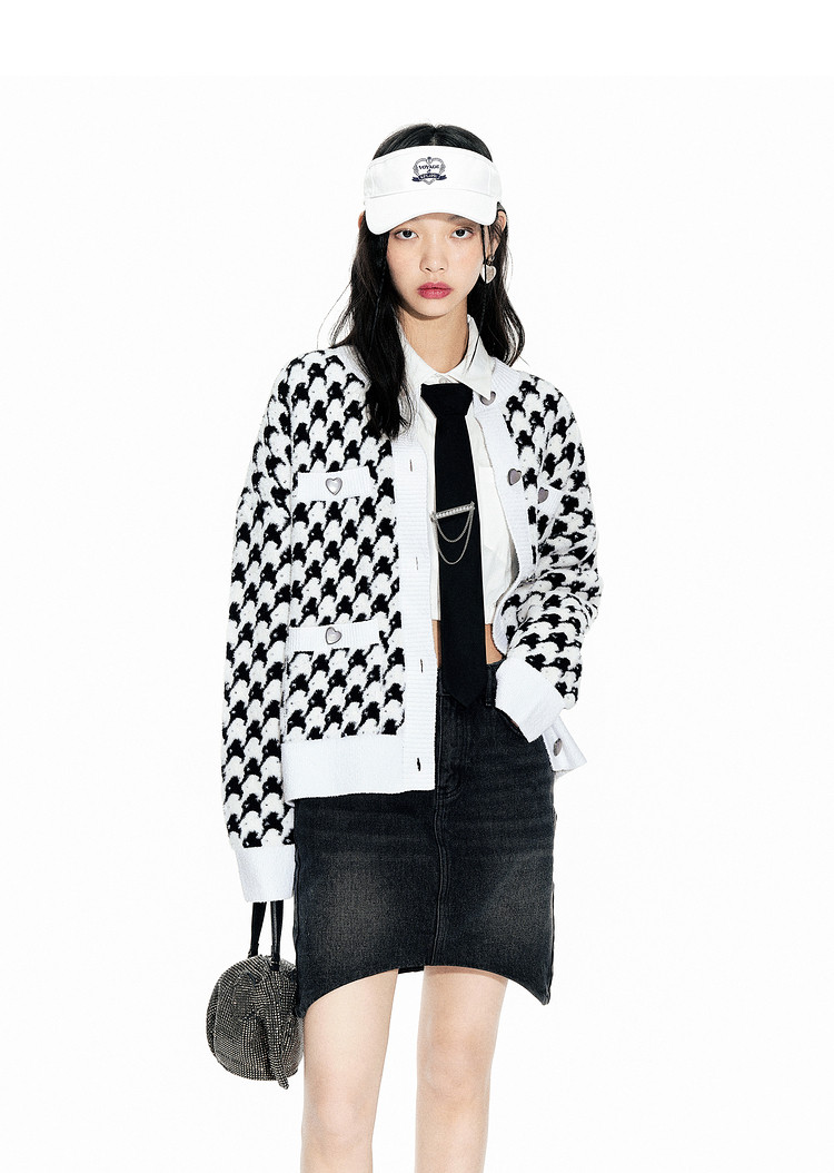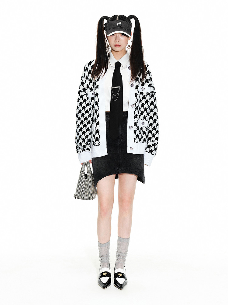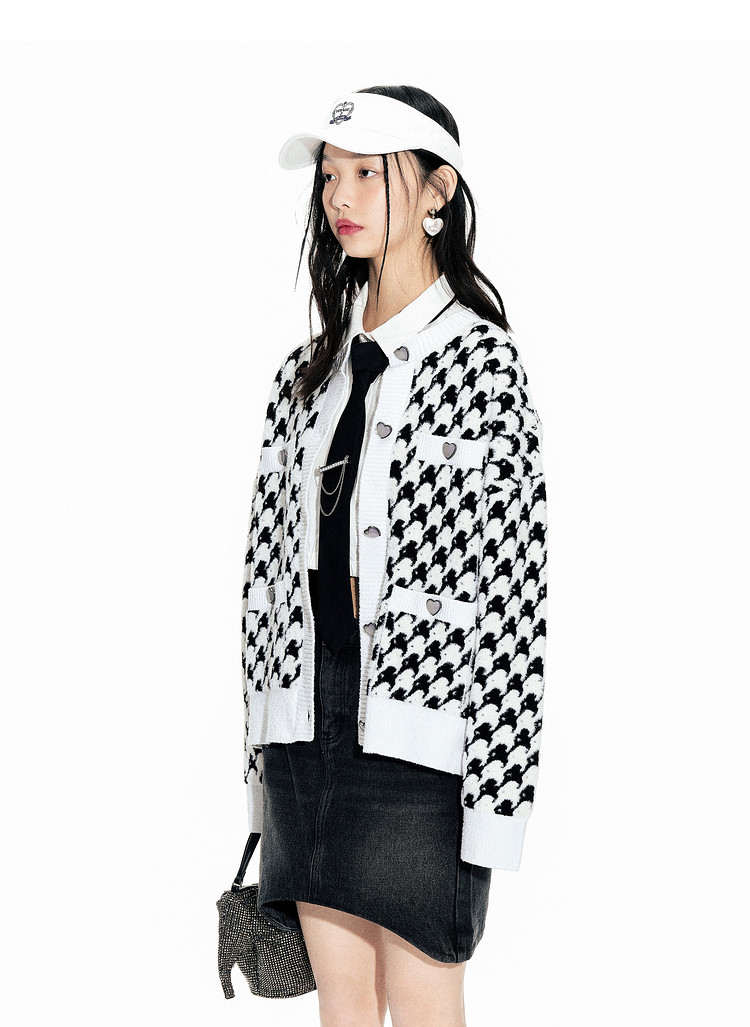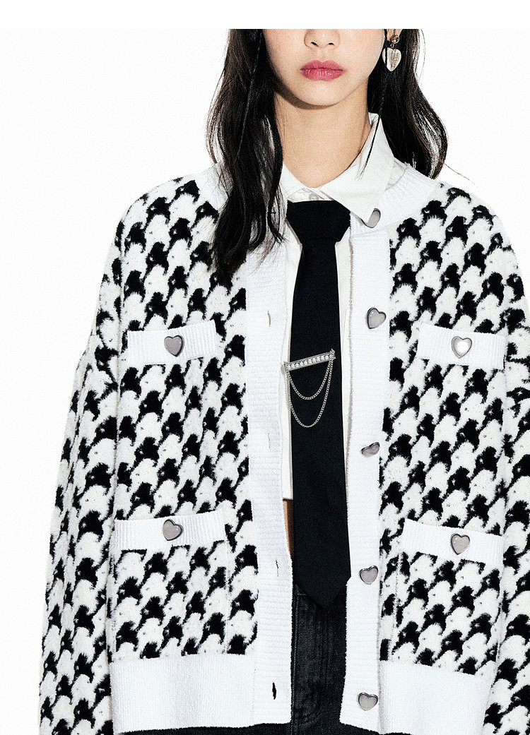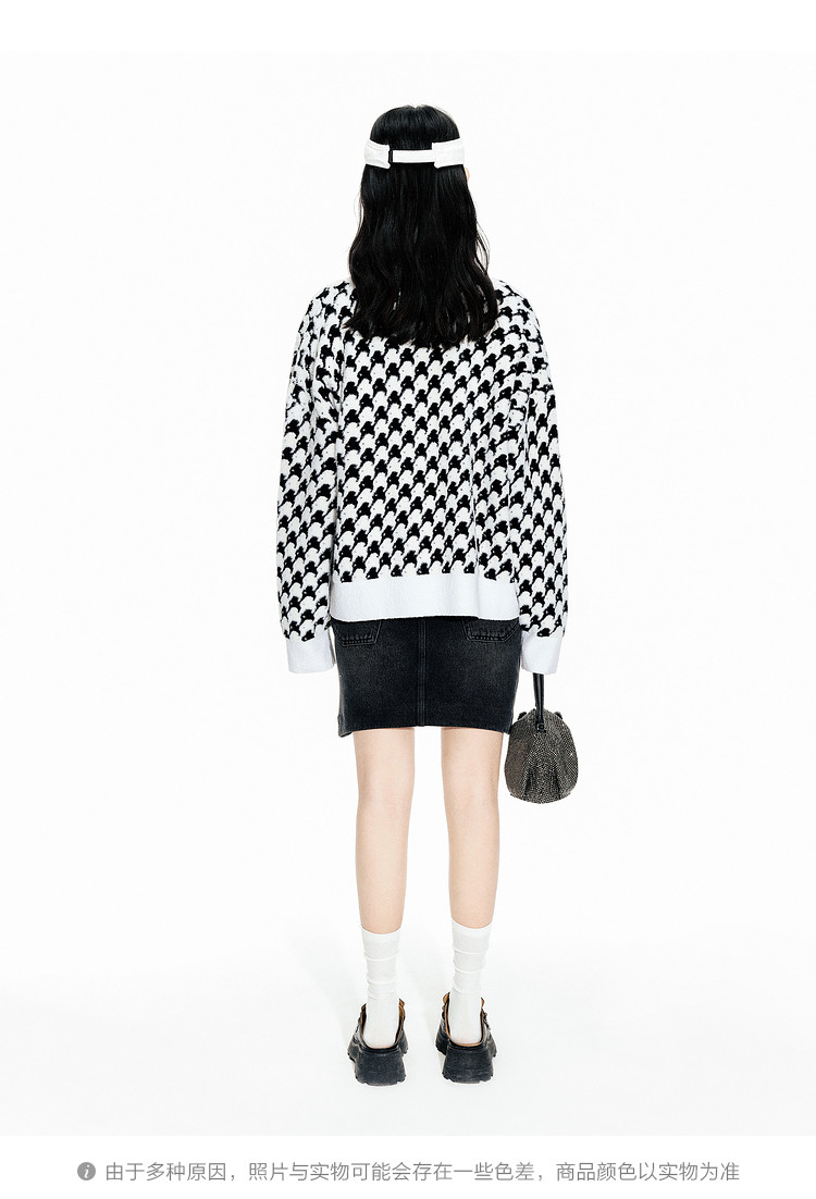 地素 春秋季 复古手工爱心纽扣撞色毛衣开衫女 837131