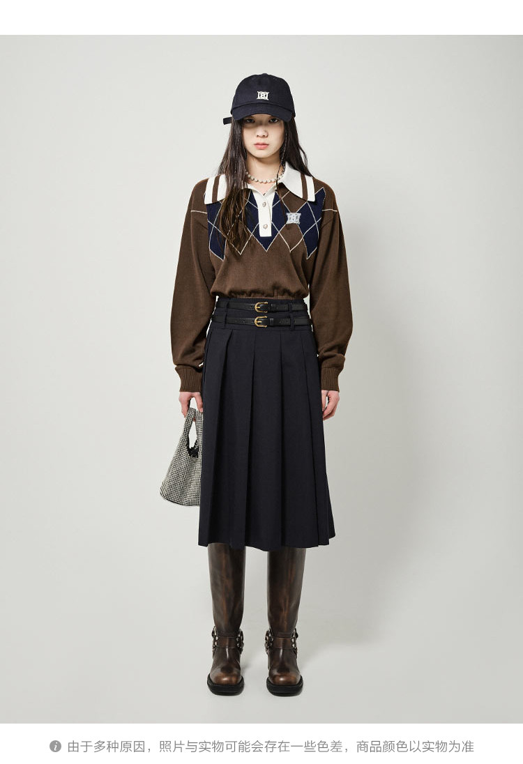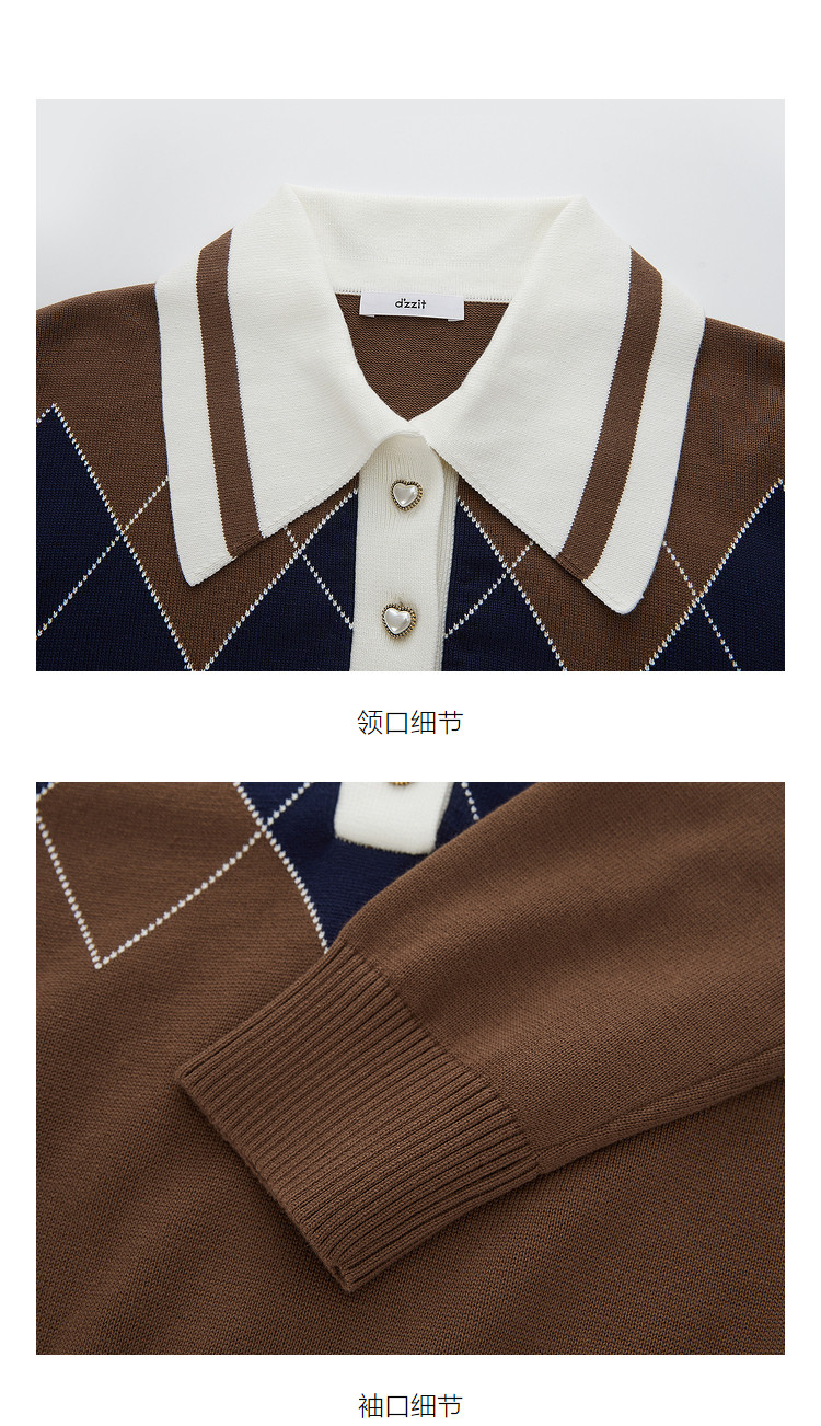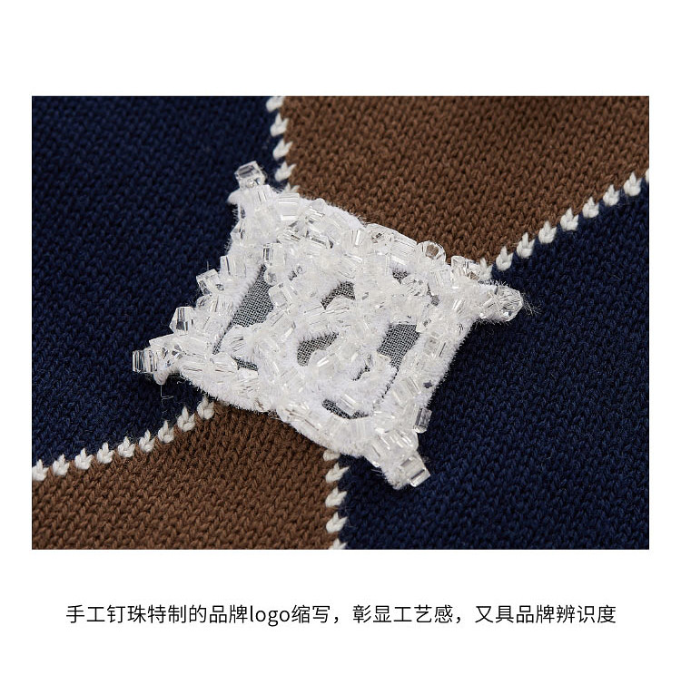商品名称:地素长袖针织衫春秋专柜复古学院风钉珠设计菱格上衣女 034059