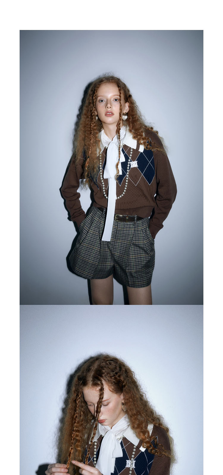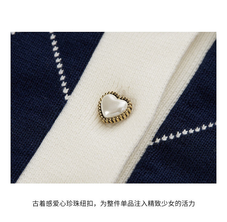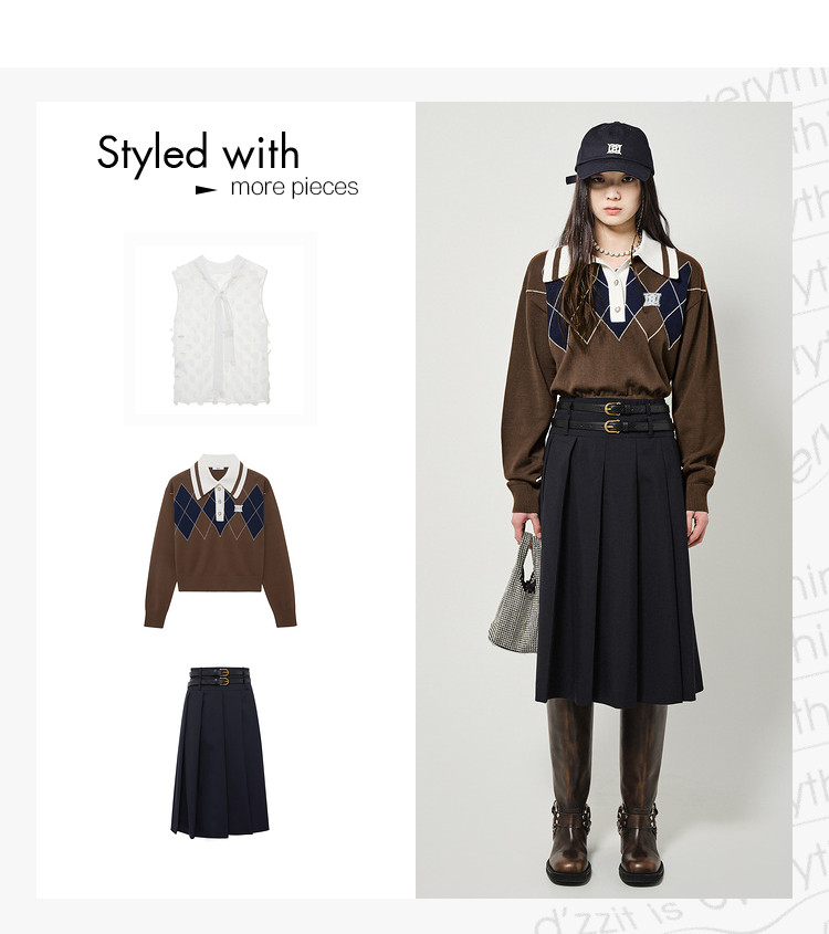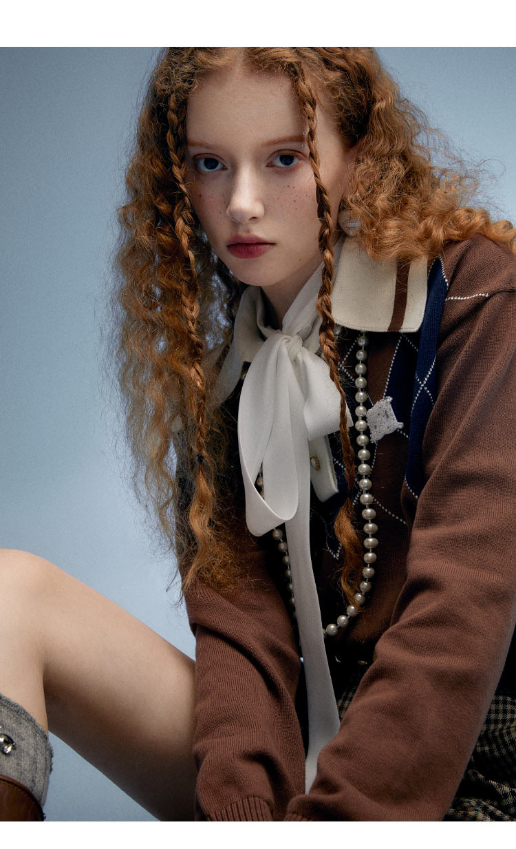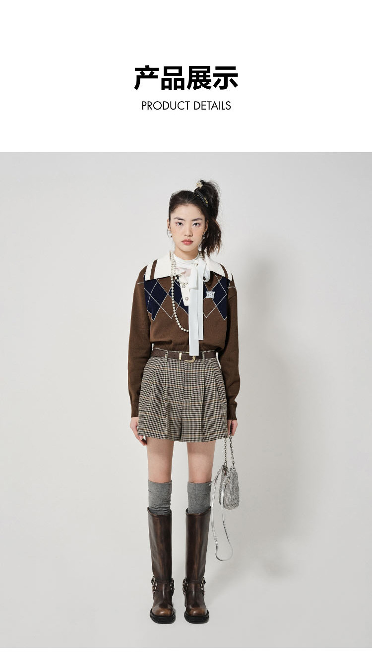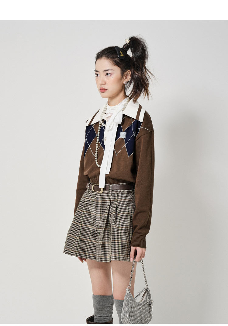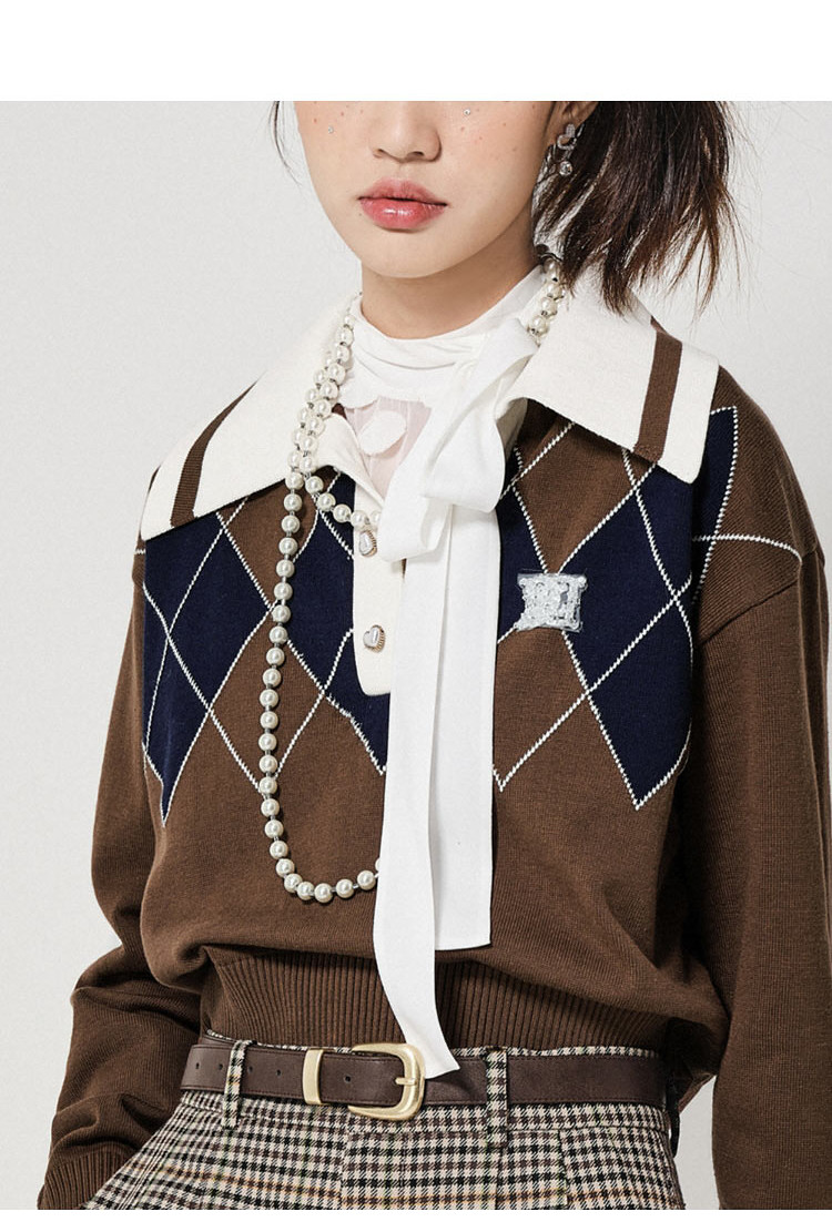 地素长袖针织衫春秋专柜复古学院风钉珠设计菱格上衣女 034059