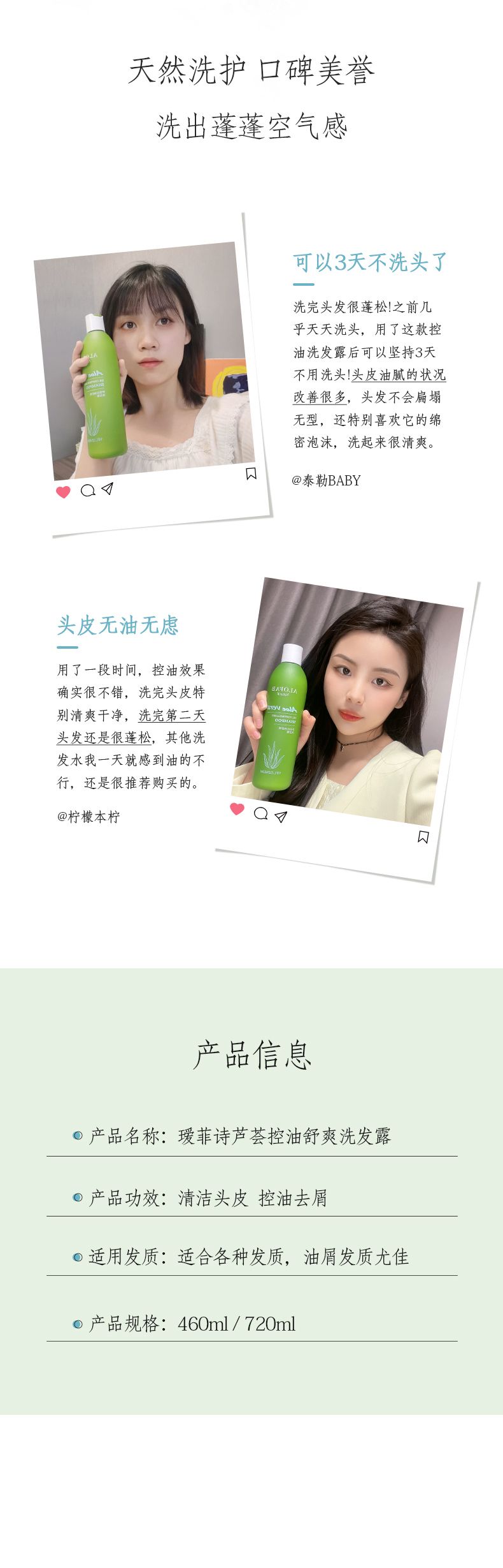 商品名称:瑷菲诗 芦荟控油舒爽洗发露 460ml 修护头皮控油去屑