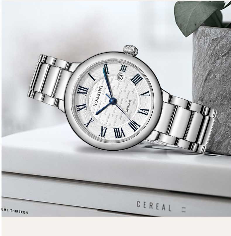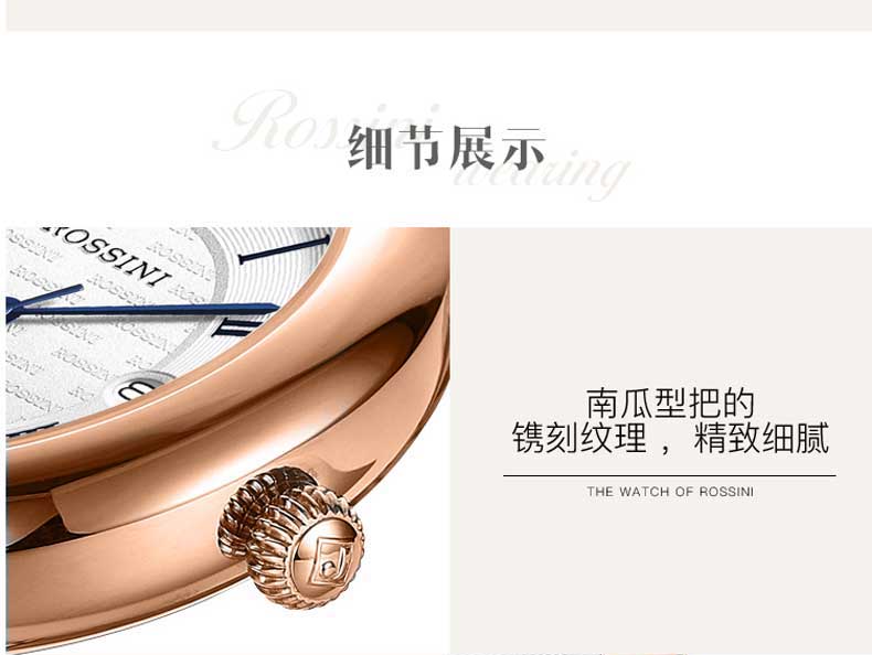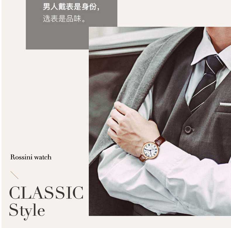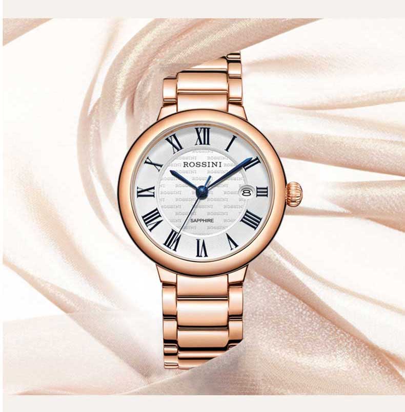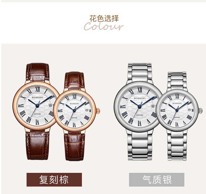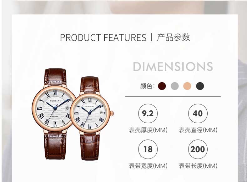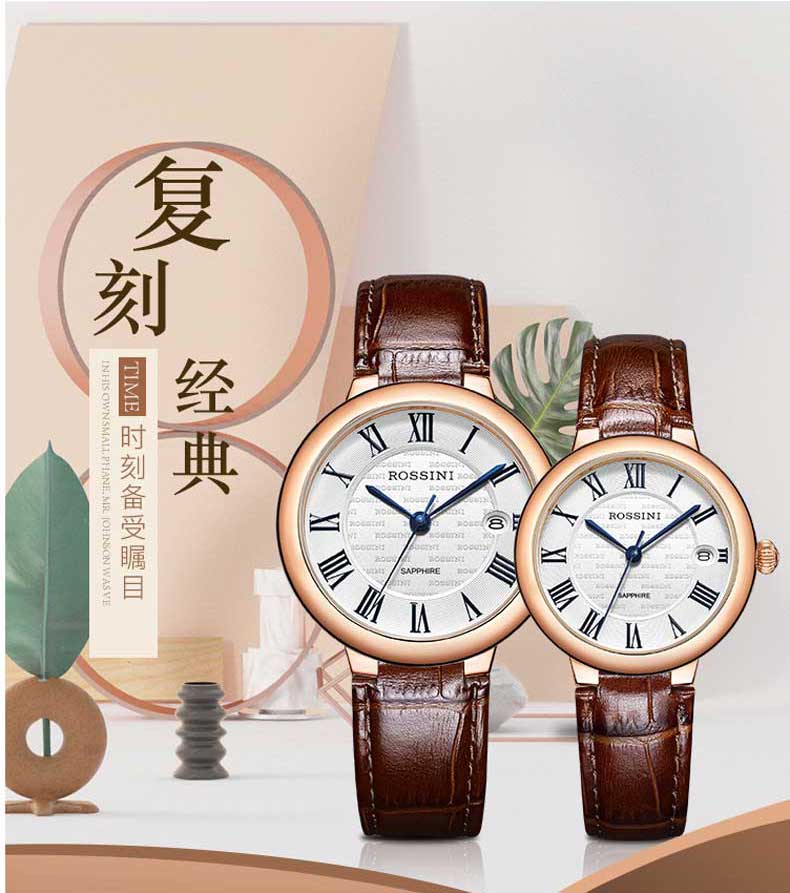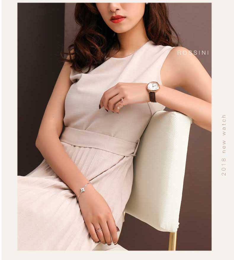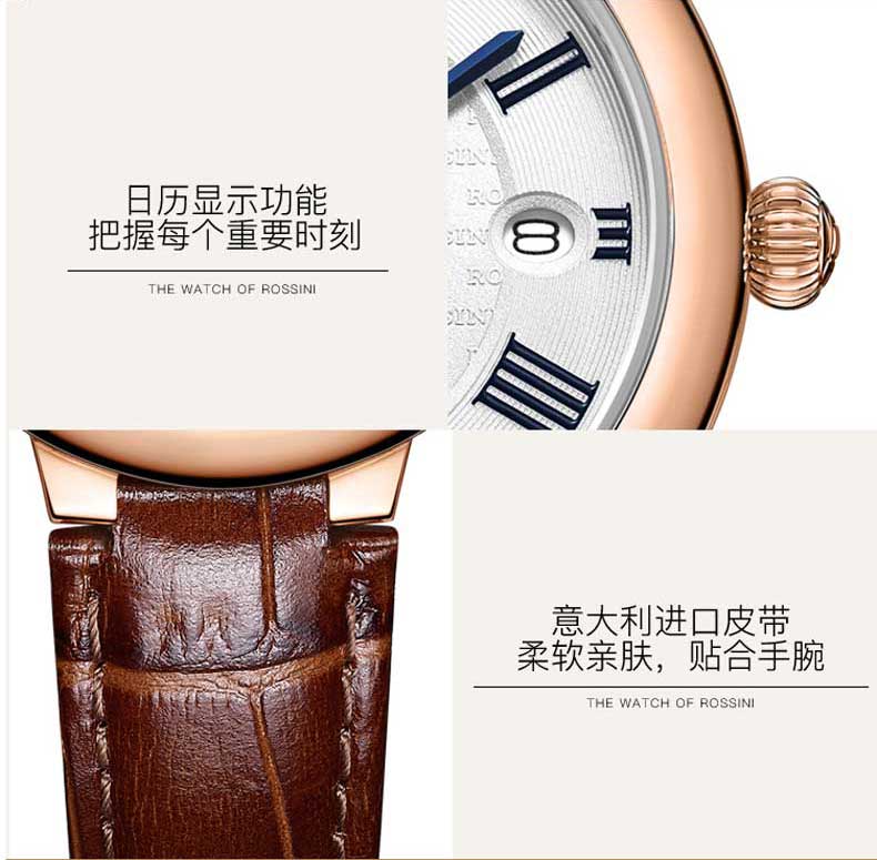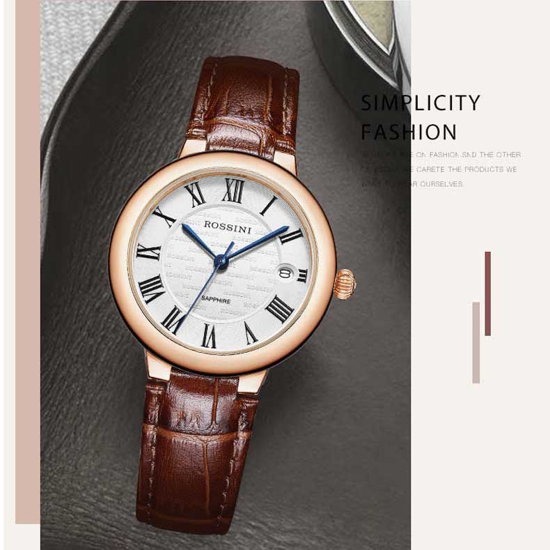 商品名称:Rossini罗西尼 雅尊商务系列 复古简约罗马刻度日历石英女士手表 棕皮女表5806G01D