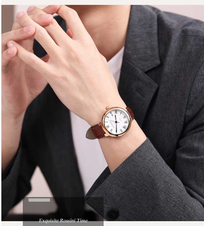 Rossini罗西尼 雅尊商务系列 复古简约罗马刻度日历石英女士手表 棕皮女表5806G01D