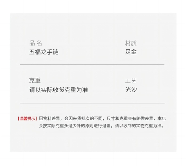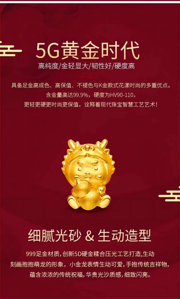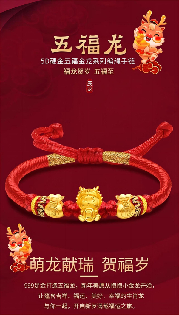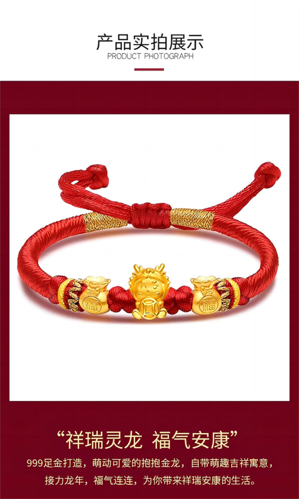 商品名称:佐禧佑福黄金足金999生肖龙手链转运珠本命年红绳龙年新年礼物