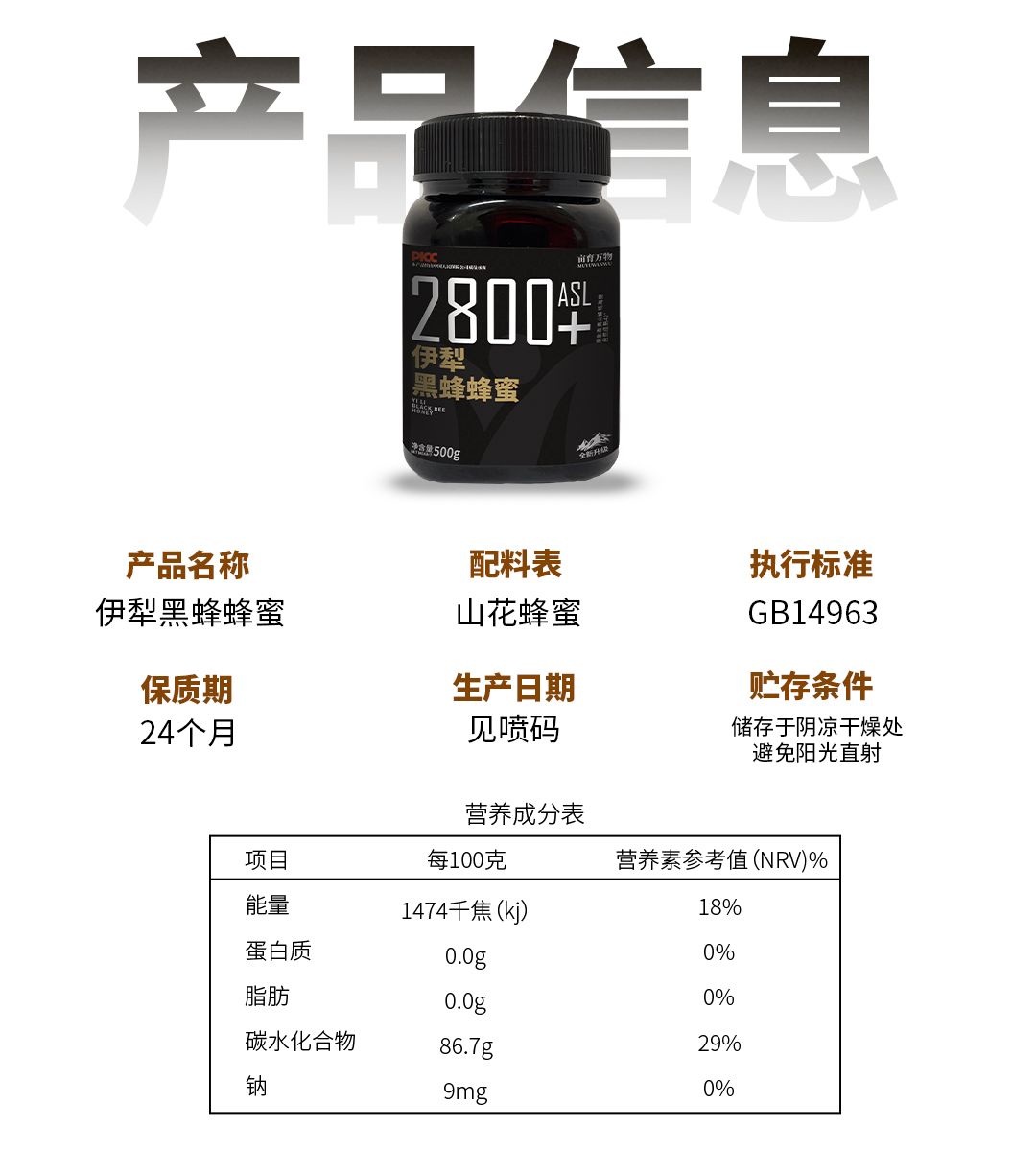 商品名称:亩育万物新疆伊犁黑蜂蜜