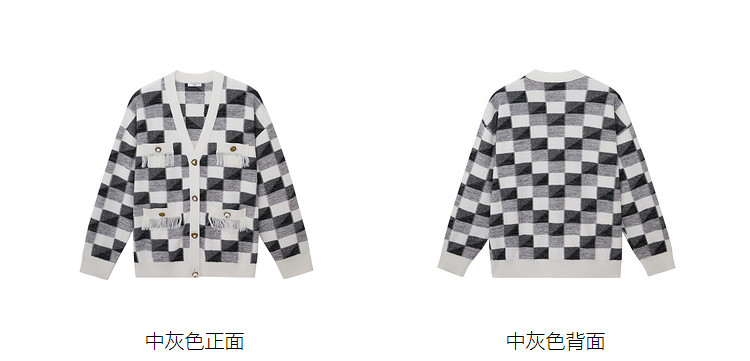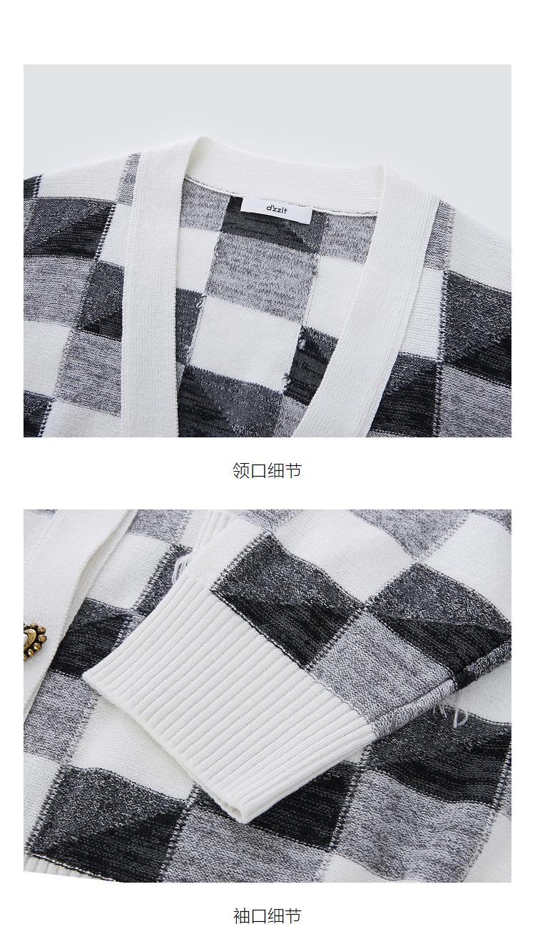 商品名称:地素针织衫春秋专柜黑白格纹流苏边设计宽松外套女 079115