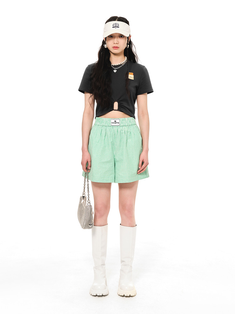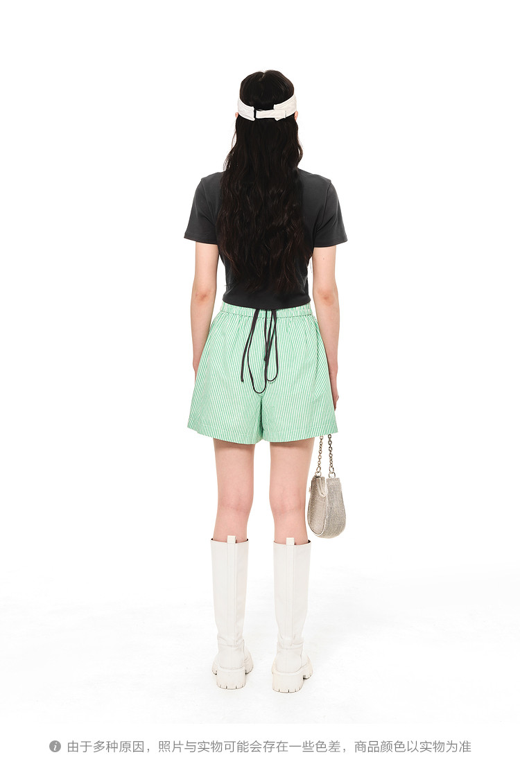 地素夏秋季专柜法式休闲条纹织唛清新时尚短裤女 954059