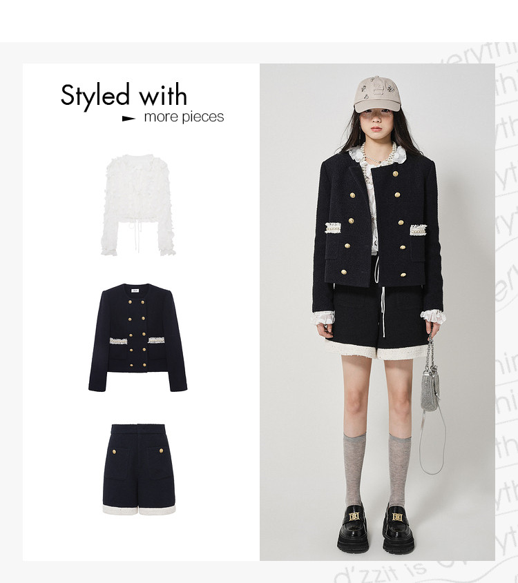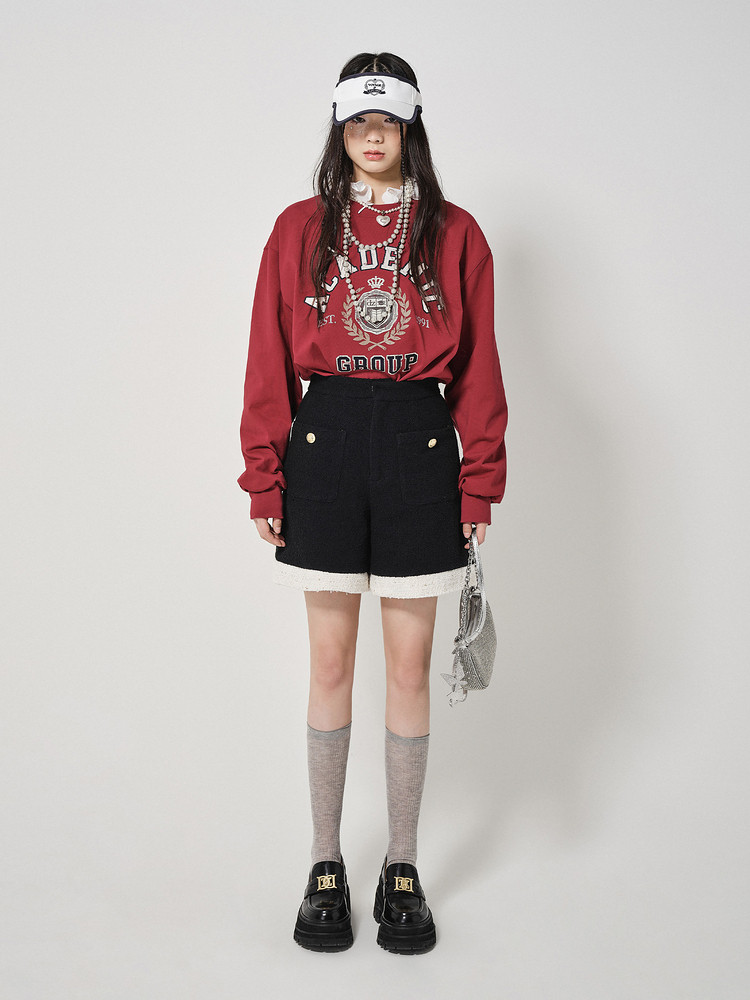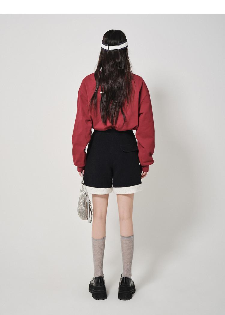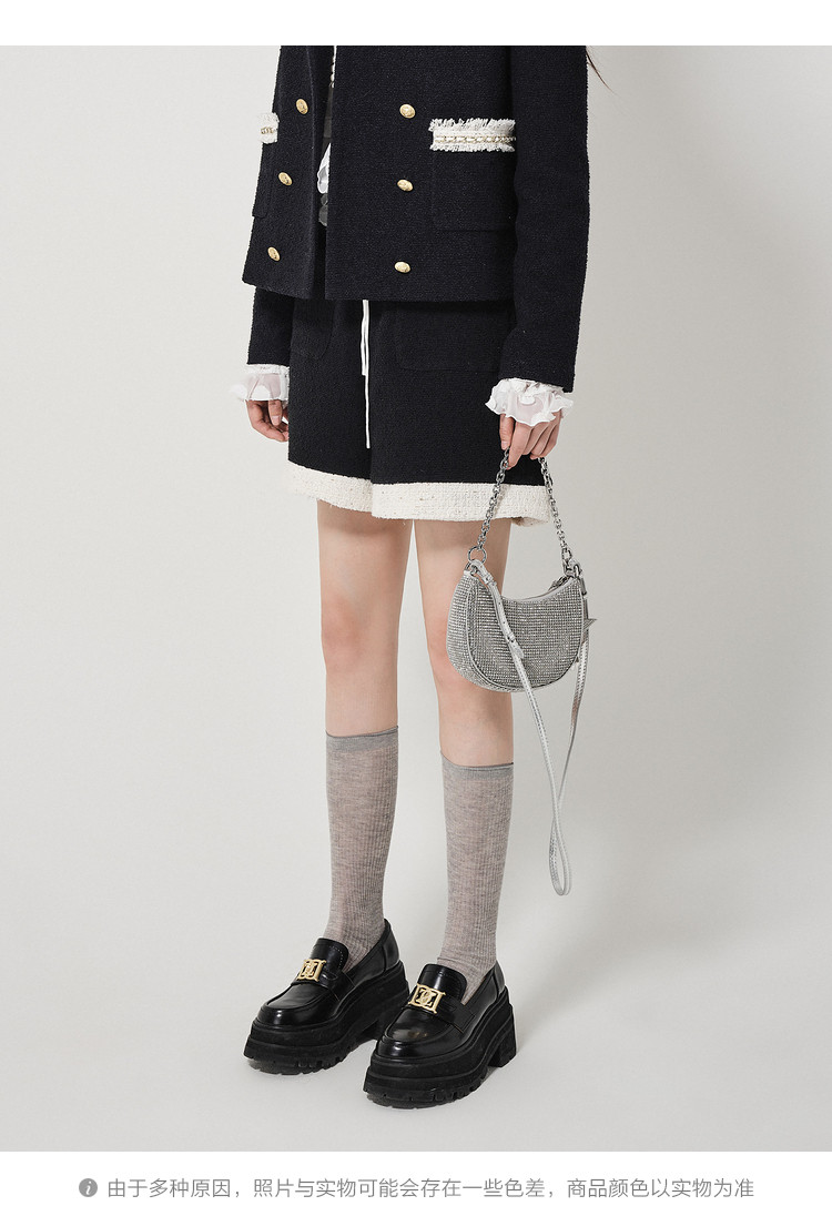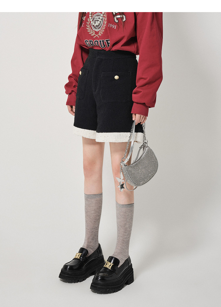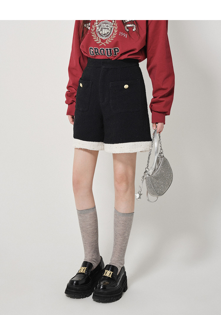 地素粗花呢短裤秋小香风拼色设计宽松休闲裤女 558667
