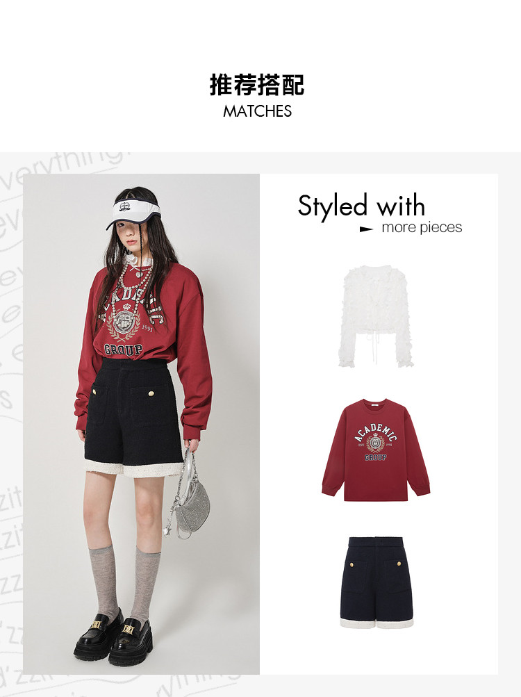 商品名称:地素粗花呢短裤秋小香风拼色设计宽松休闲裤女 558667